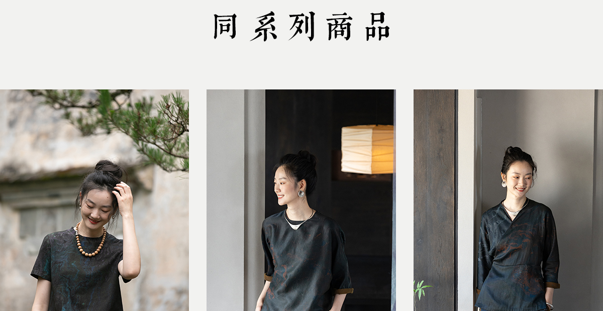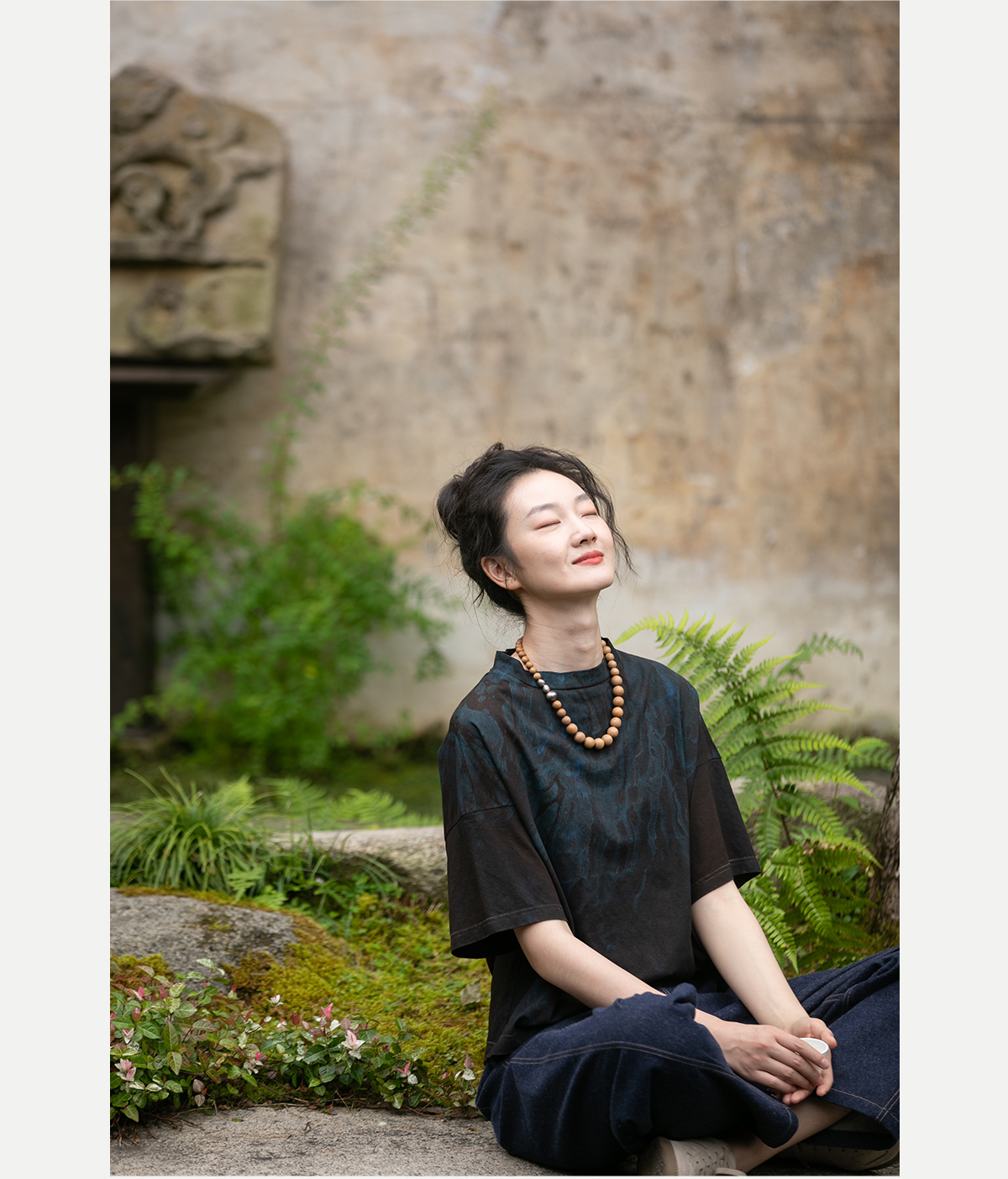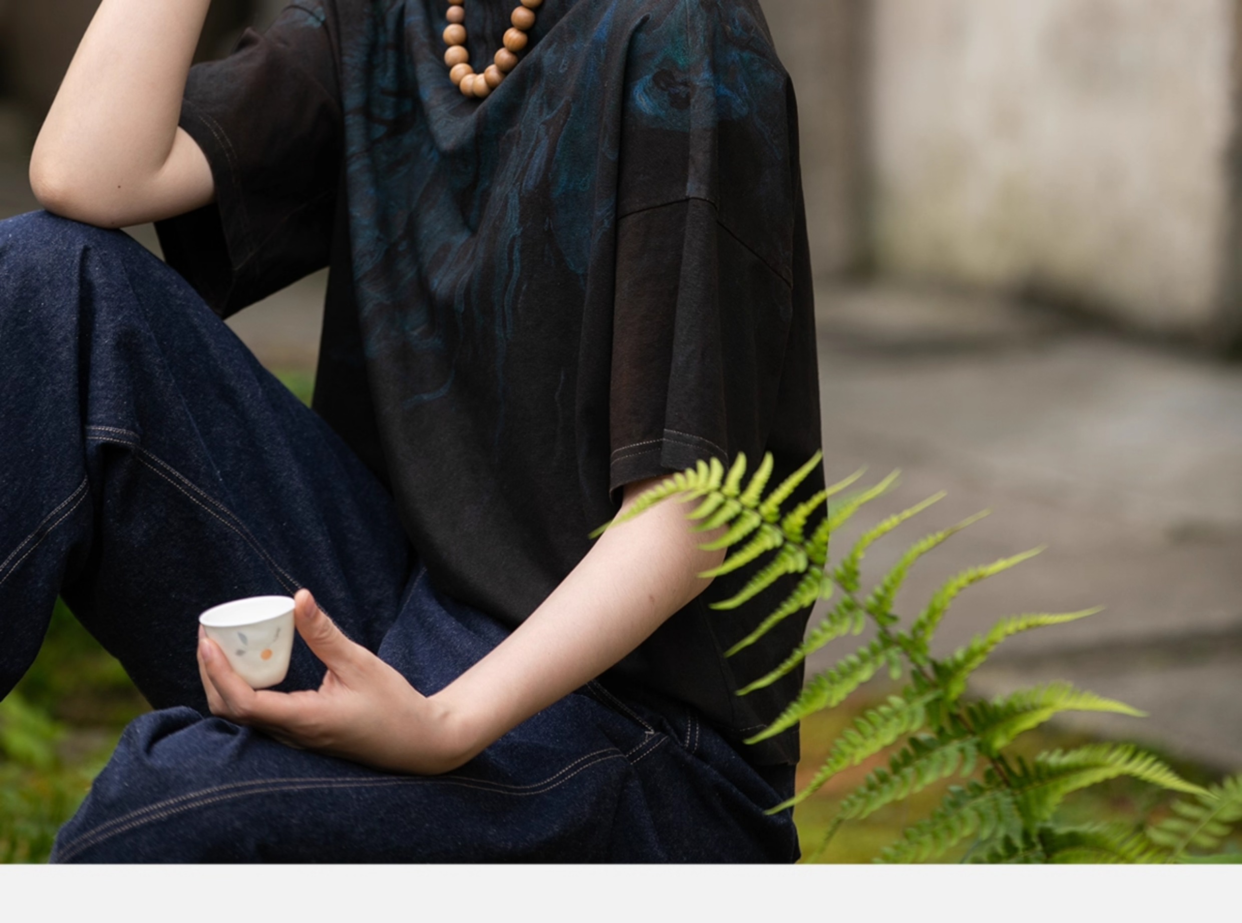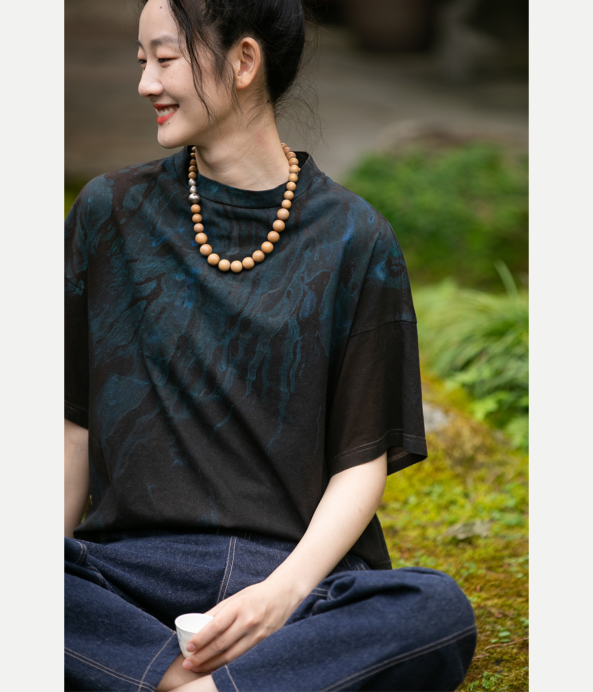 牧衣游原创 涌云工艺香云纱T恤新款黑色简约百搭短袖上衣 云澜