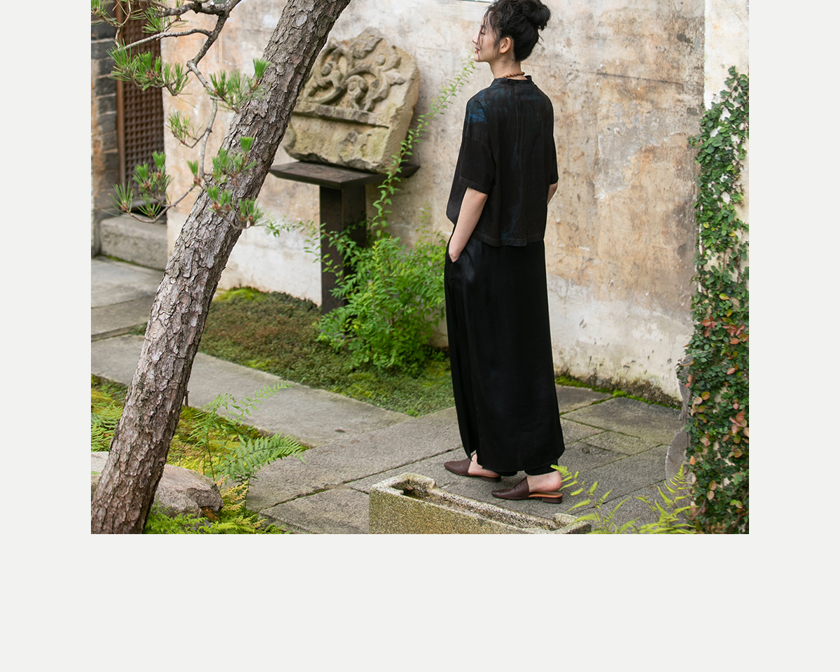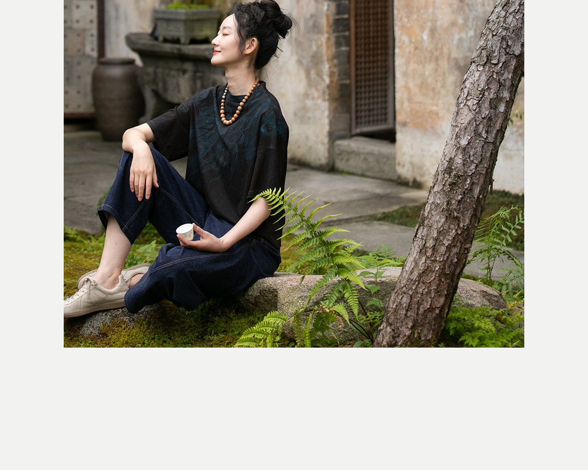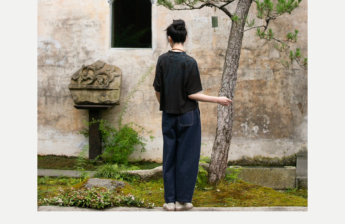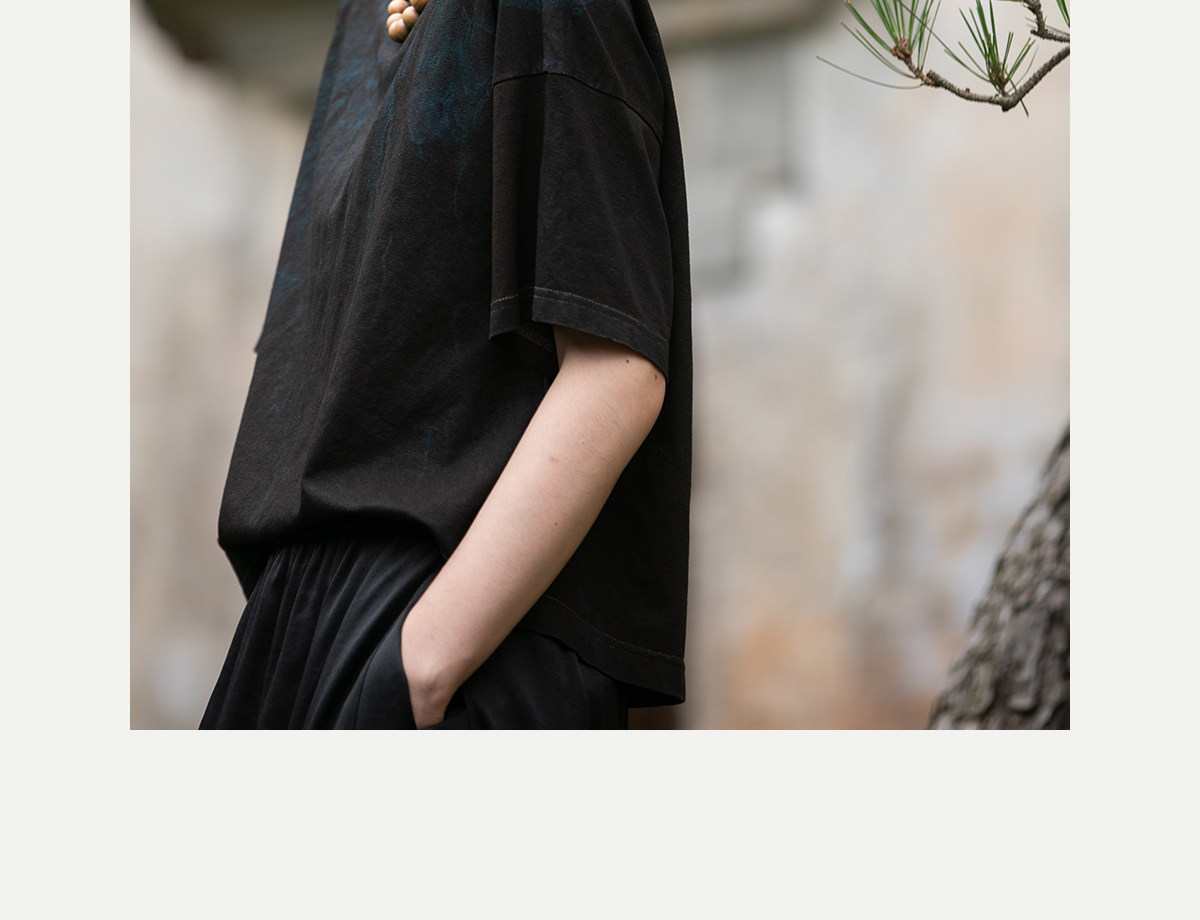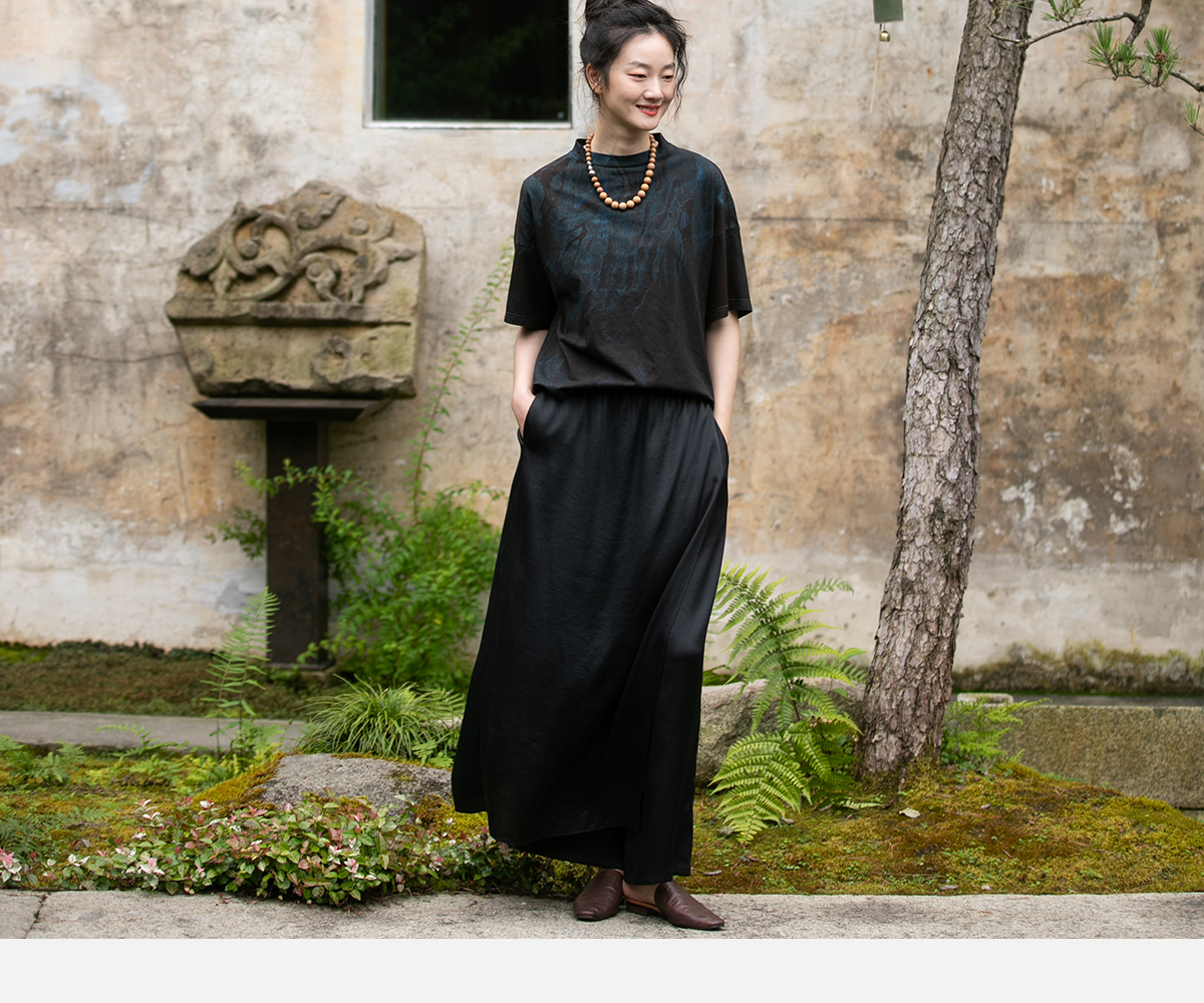 牧衣游原创 涌云工艺香云纱T恤新款黑色简约百搭短袖上衣 云澜