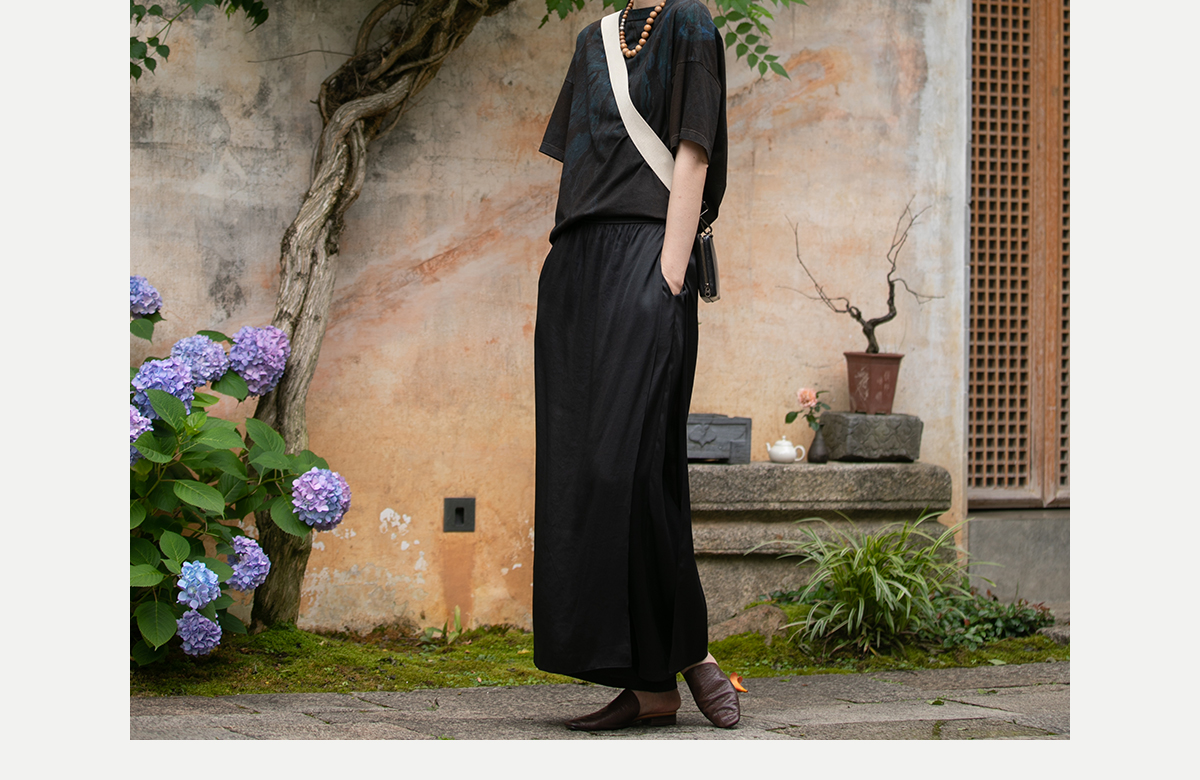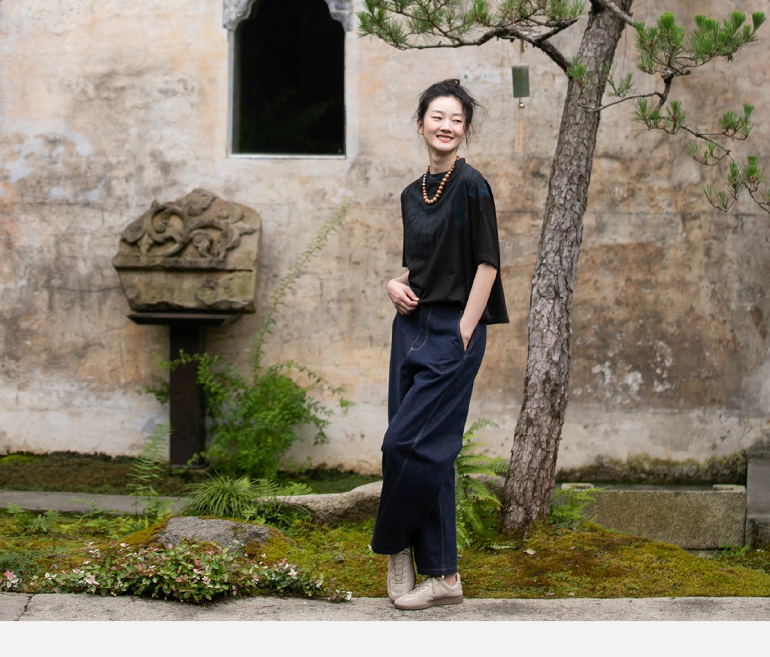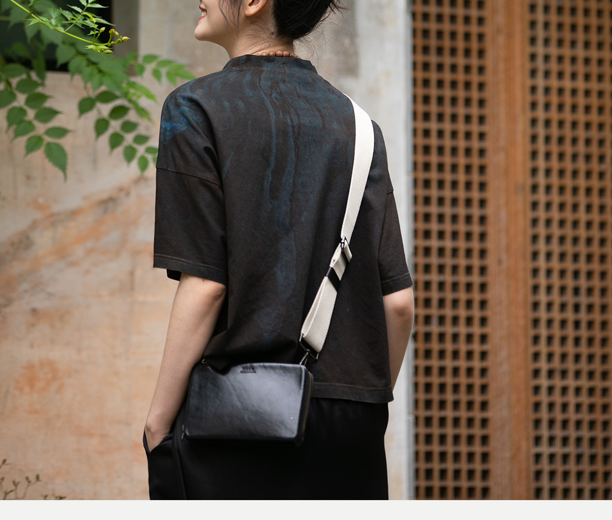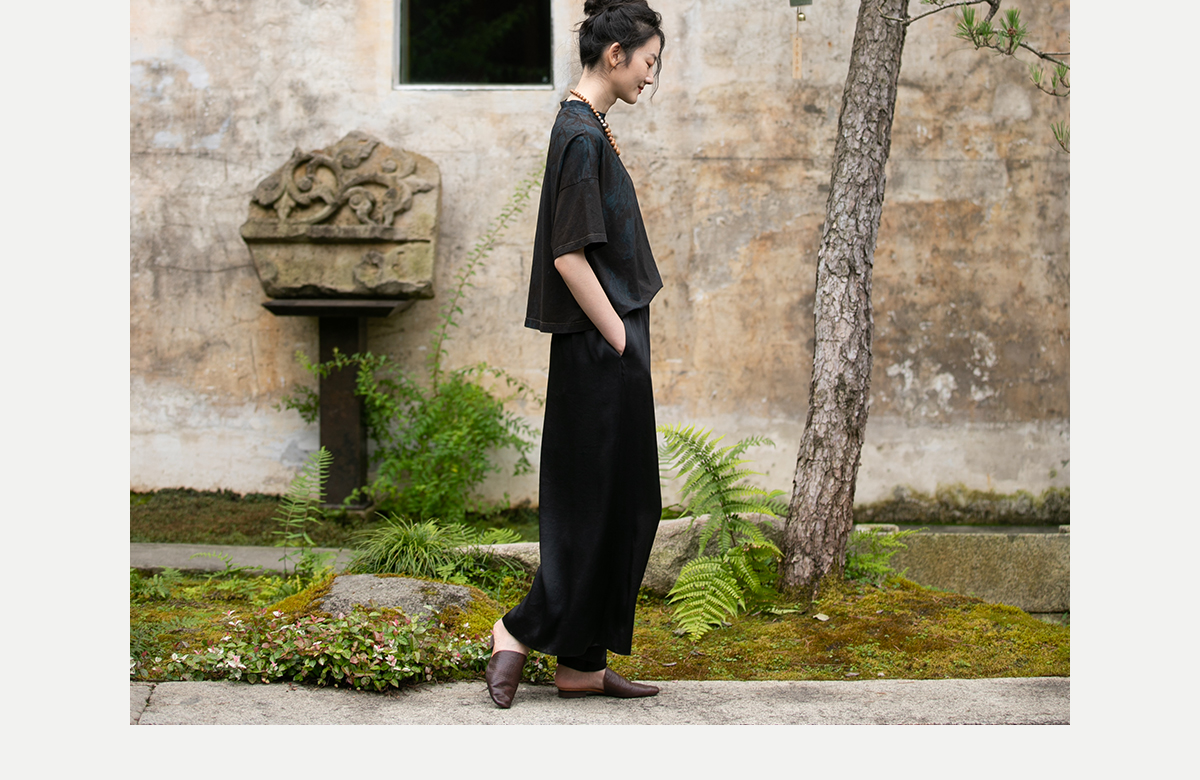 牧衣游原创 涌云工艺香云纱T恤新款黑色简约百搭短袖上衣 云澜