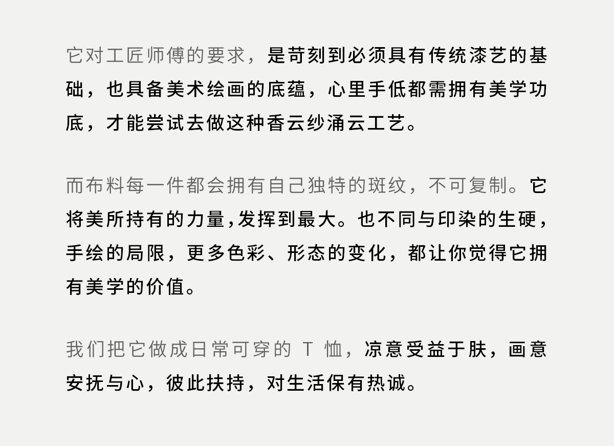 - 让内心温暖,让情感自由。坚持传统的手工作物,坚持匠心的制作精神。
