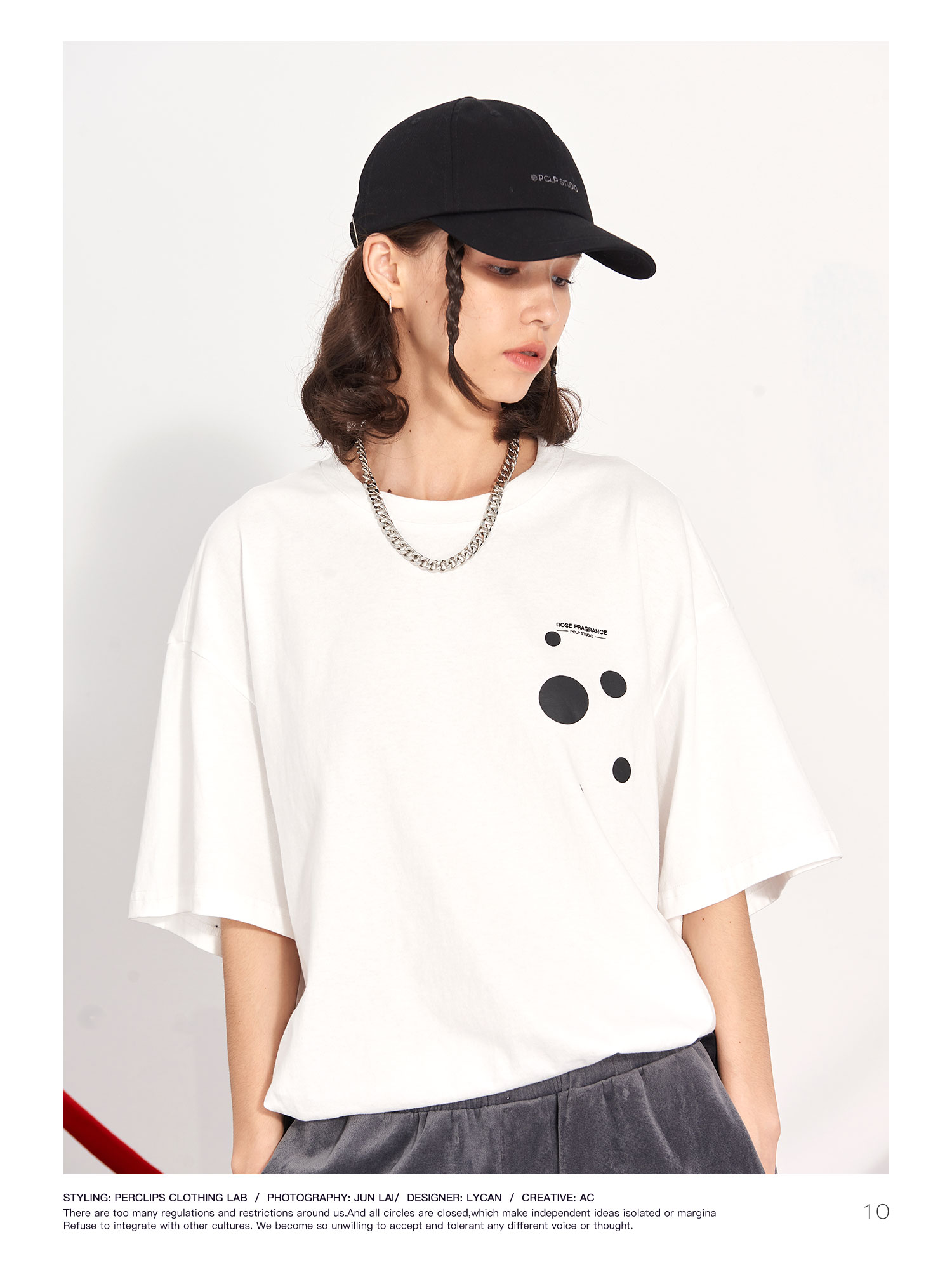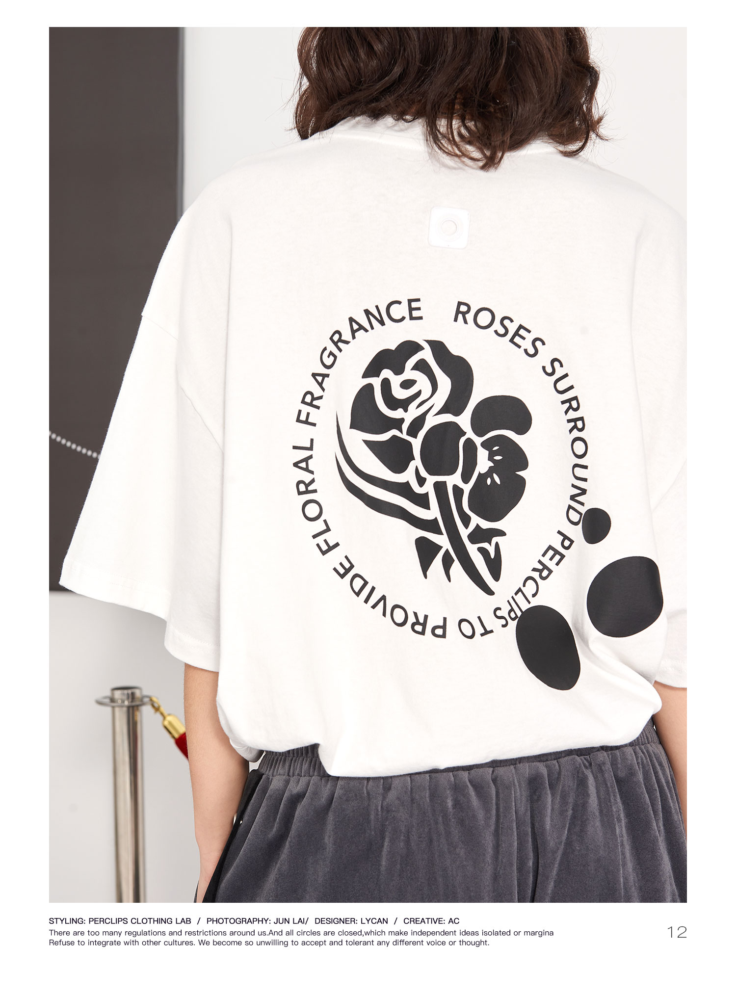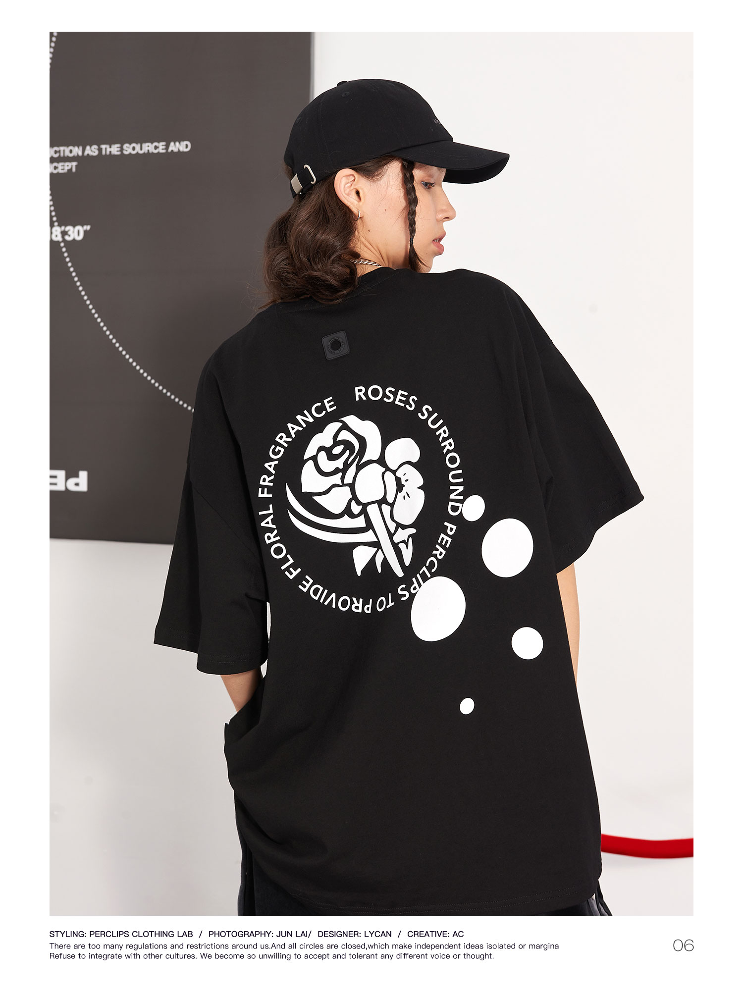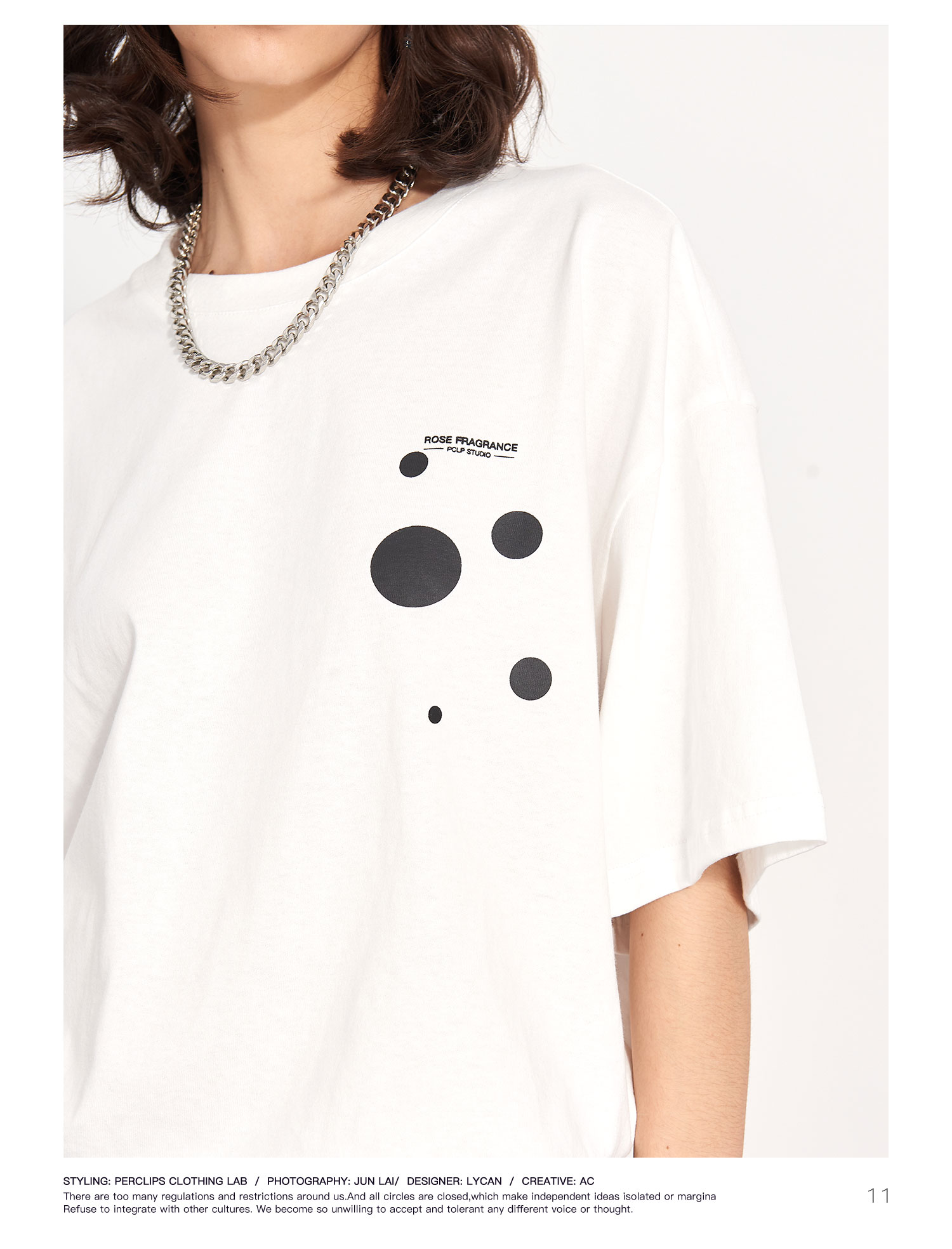 PCLP(PERCLIPS) 玫瑰点墨圆圈短袖
