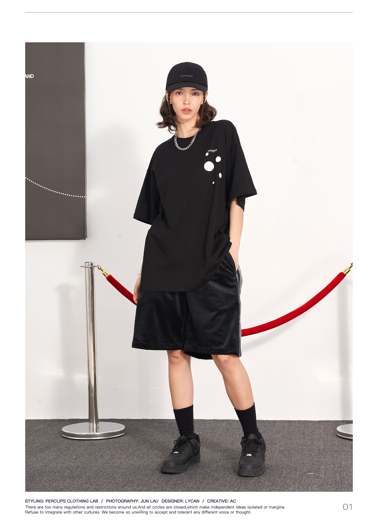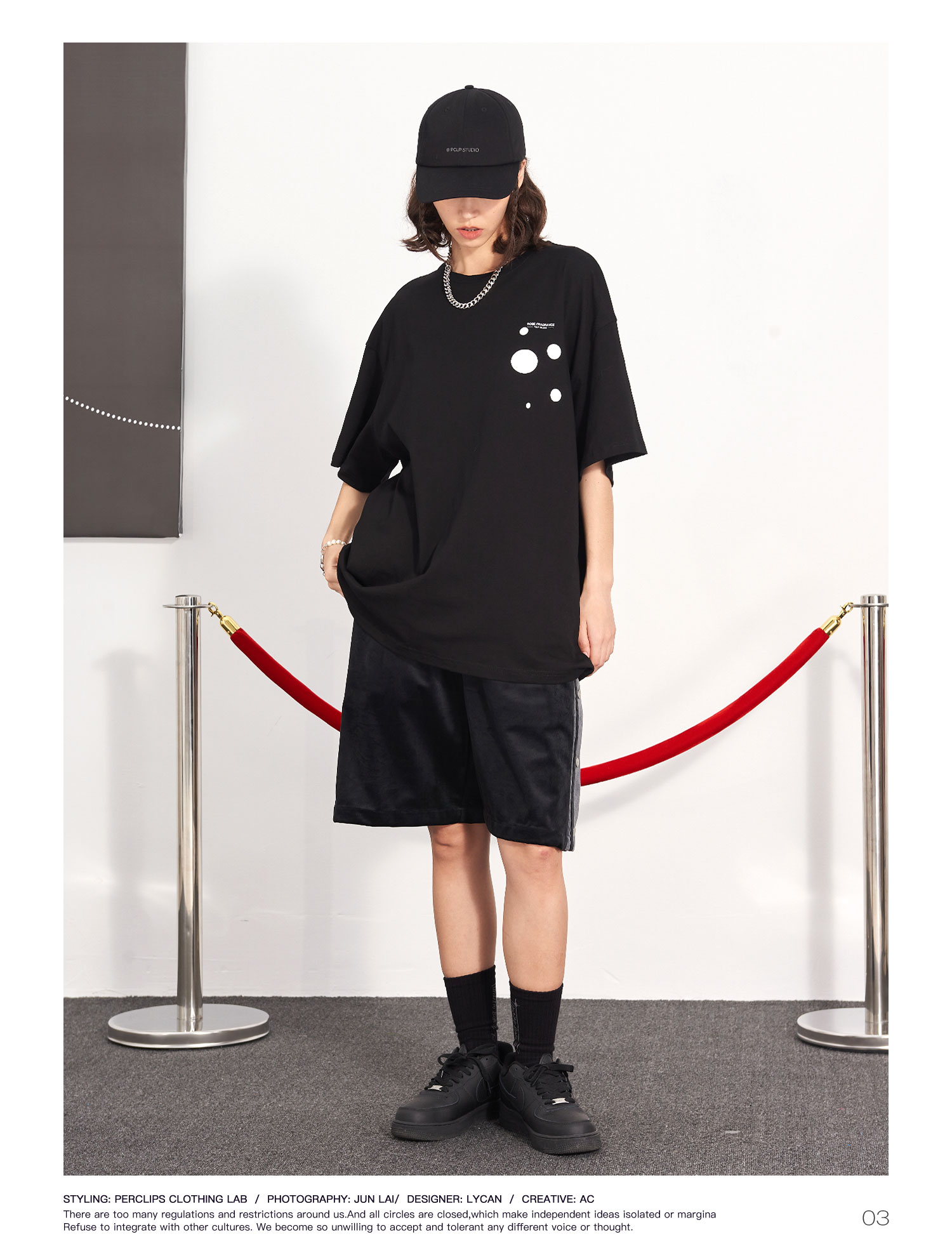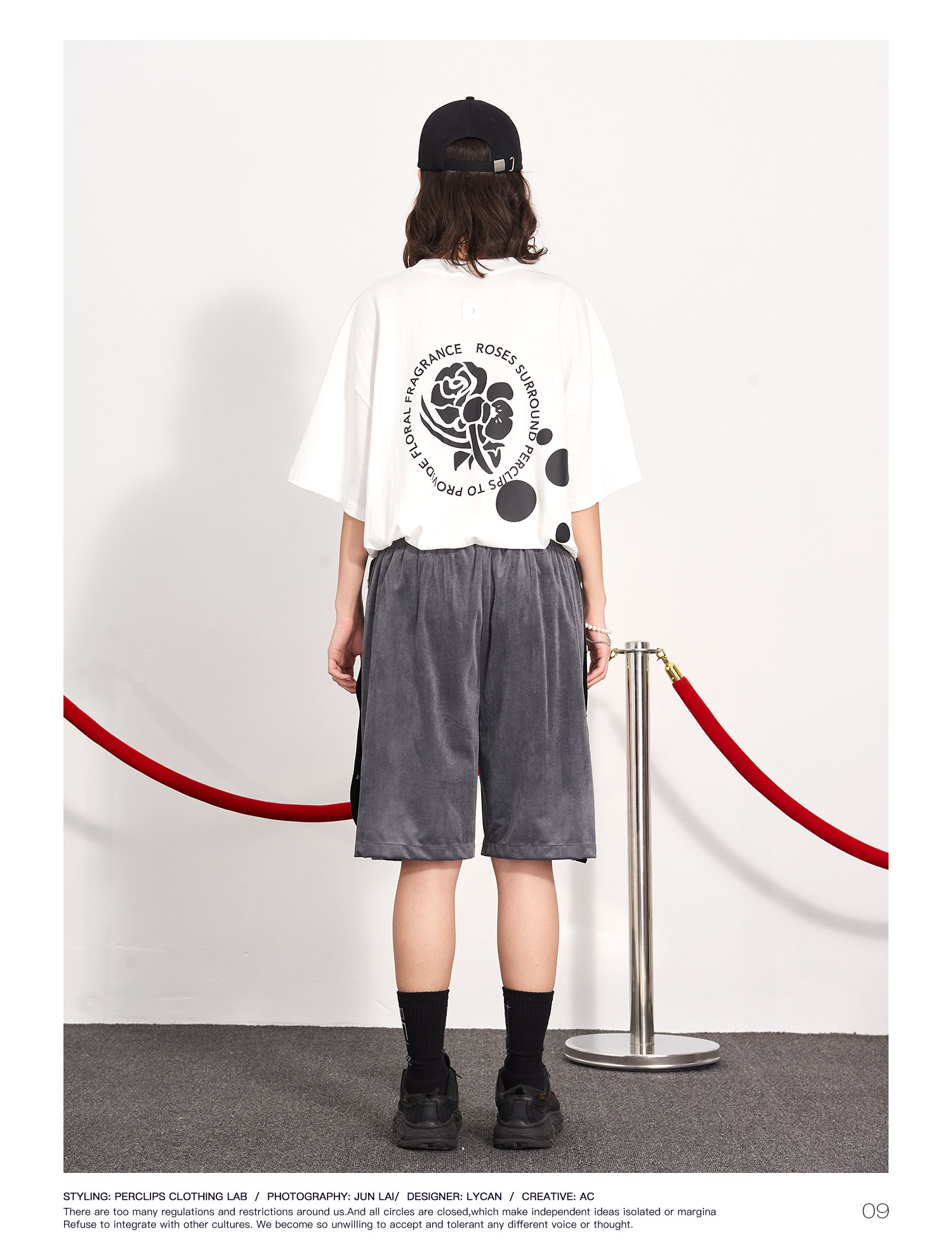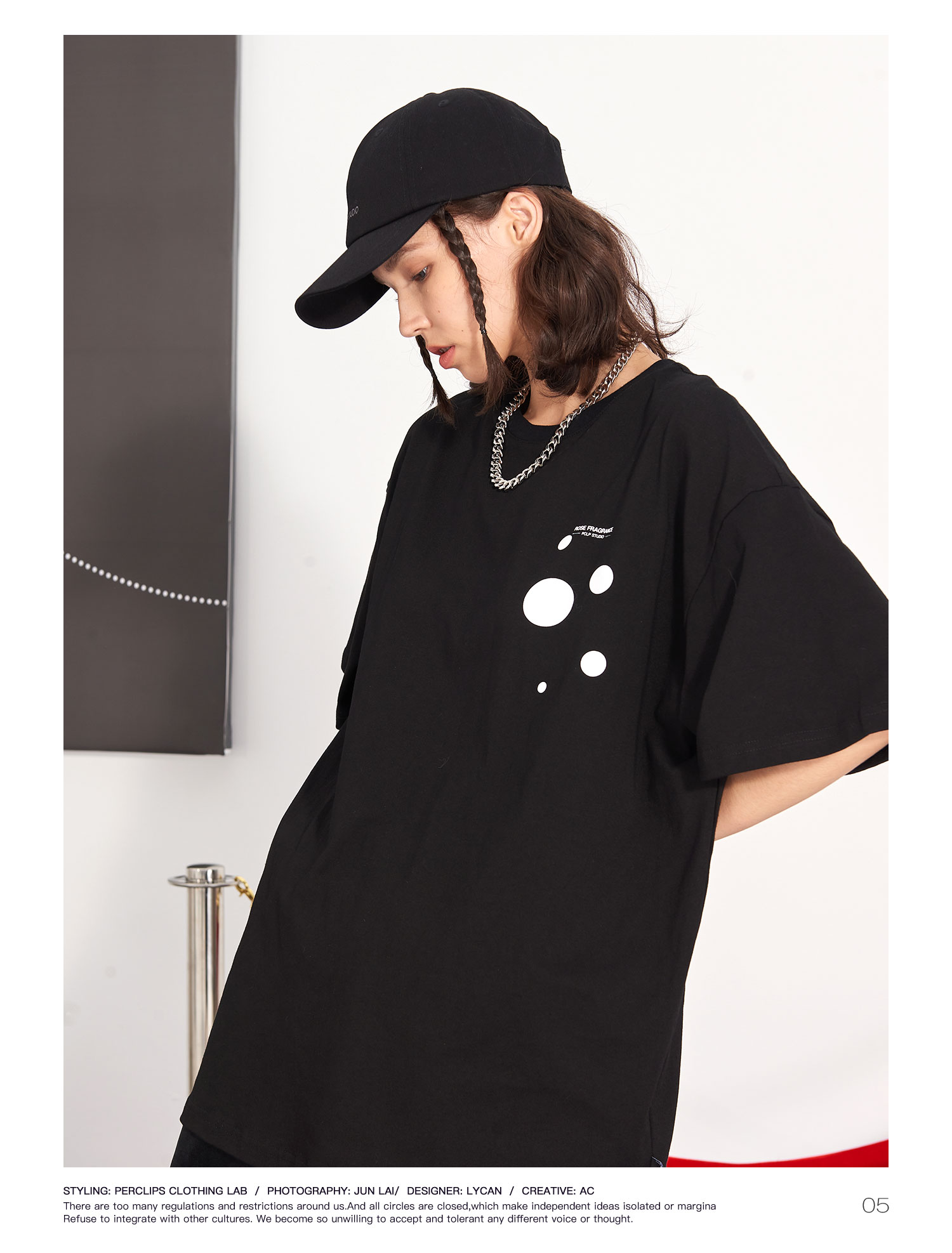 PCLP(PERCLIPS) 玫瑰点墨圆圈短袖