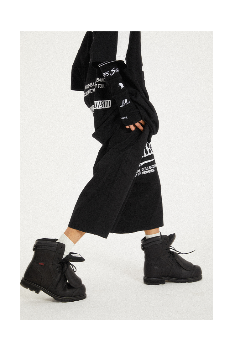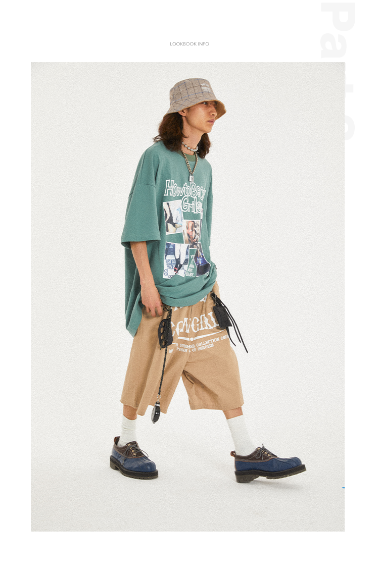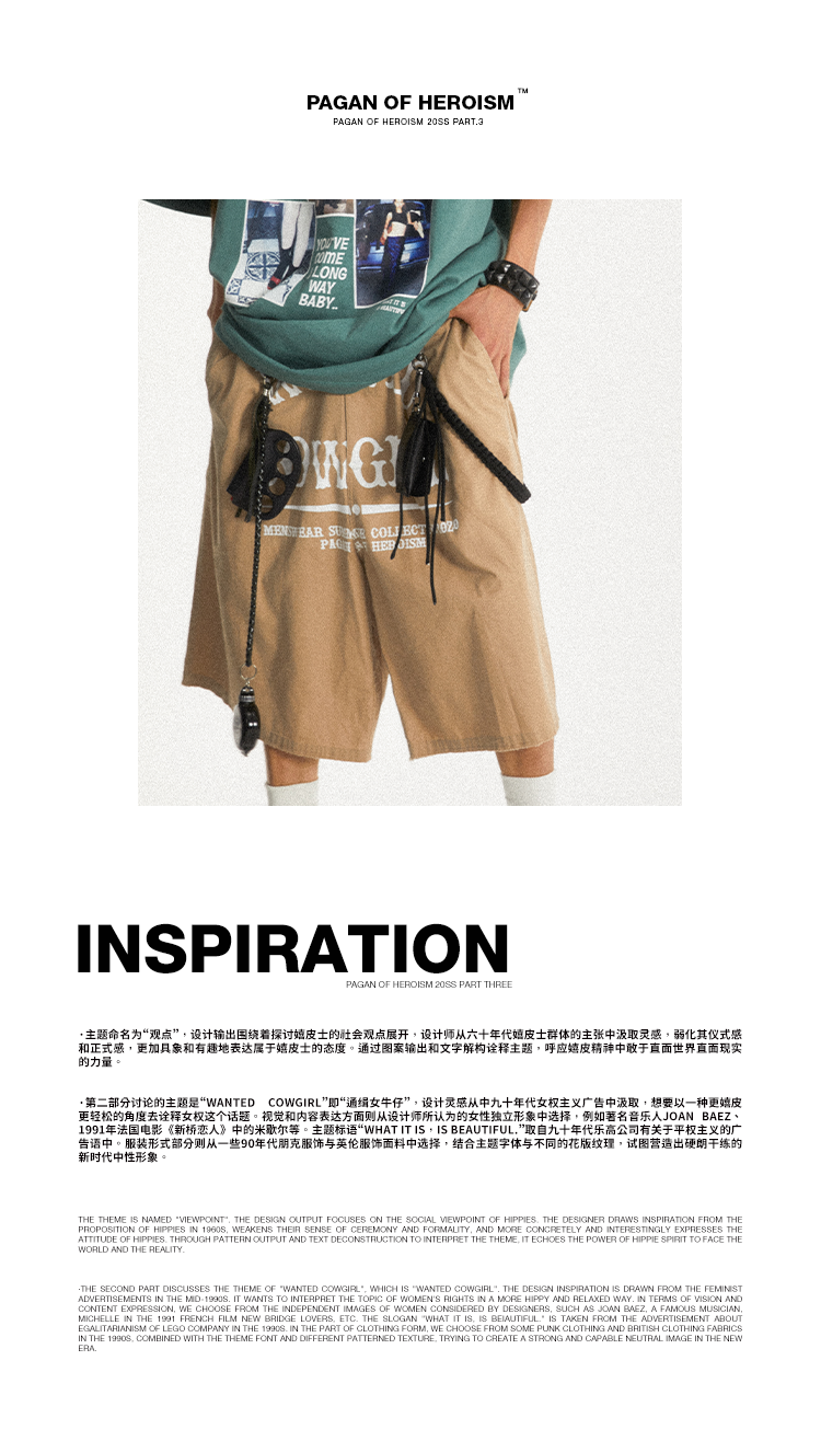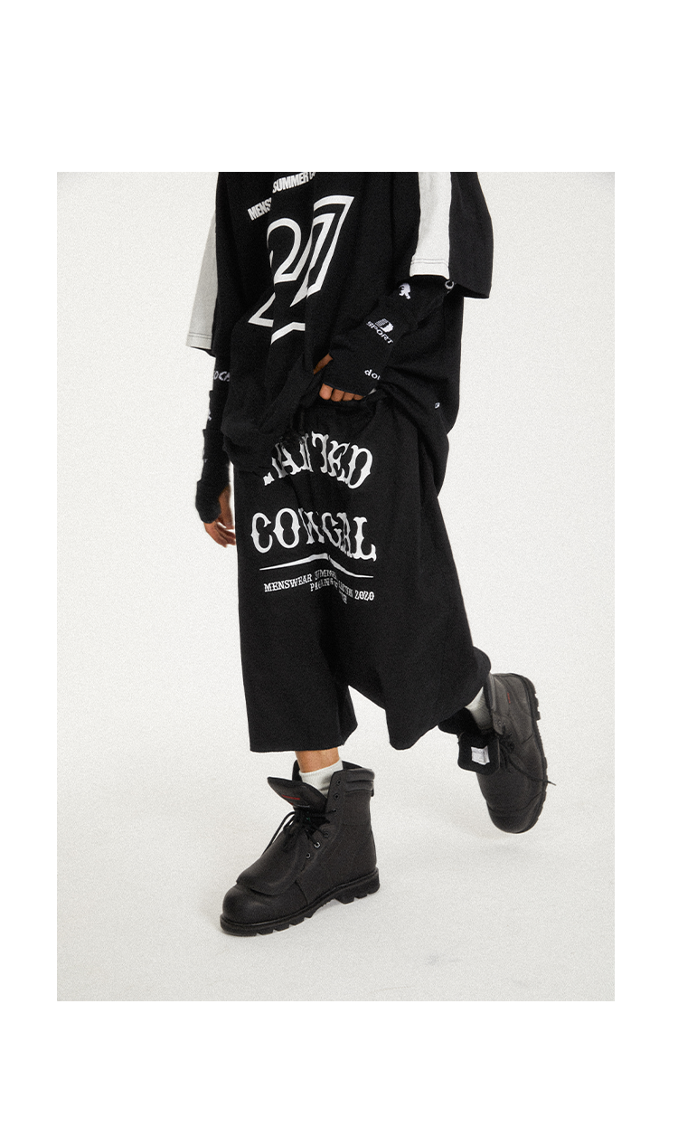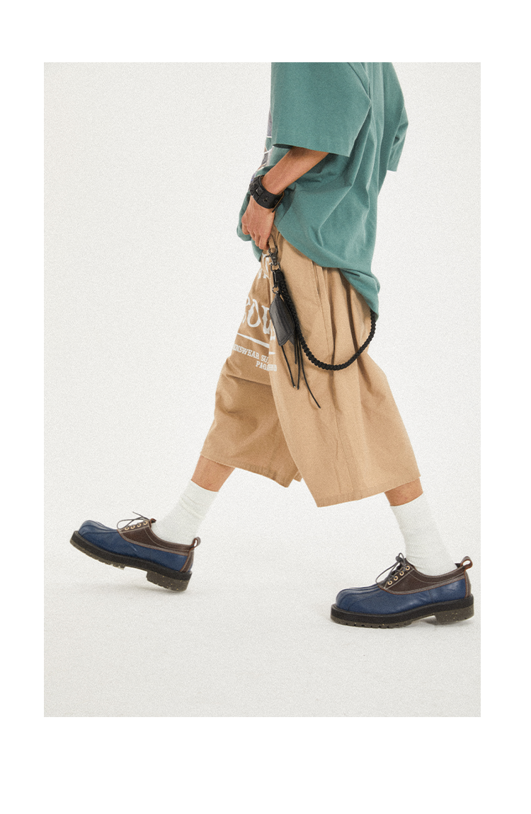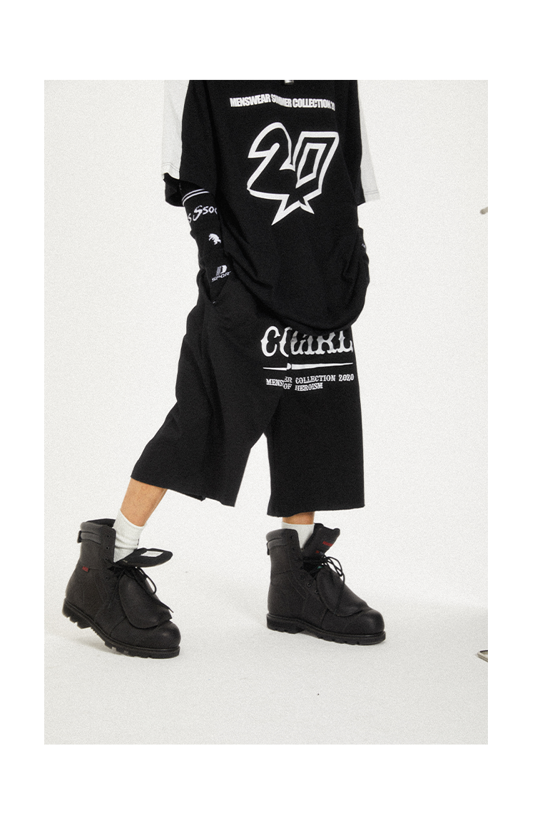 POH Cowgirl主题大印花宽松五分直筒中裤子朋克黑色卡其色短裤男