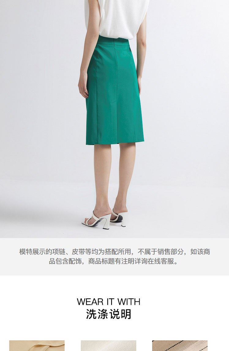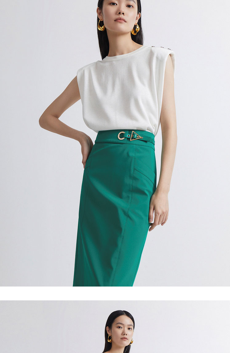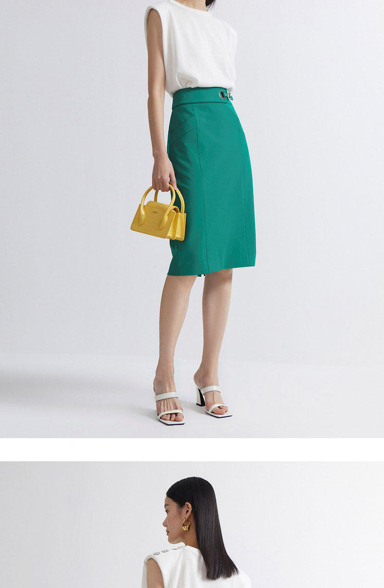 INSUN恩裳2022夏季新品精巧时尚腰部设计摩登现代感直筒半身裙9C32250046