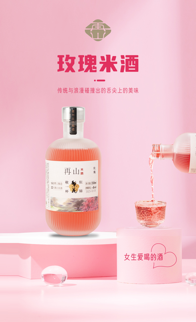 再山|玫瑰米酒单瓶350ml(购两瓶赠送1礼品袋)