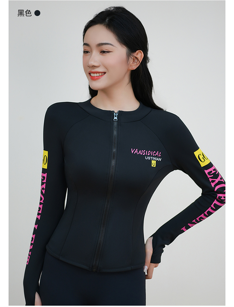 【爆款】秋冬新款时尚印花运动外套女加绒保暖修身显瘦户外跑步服