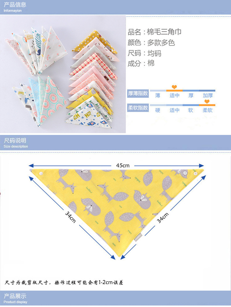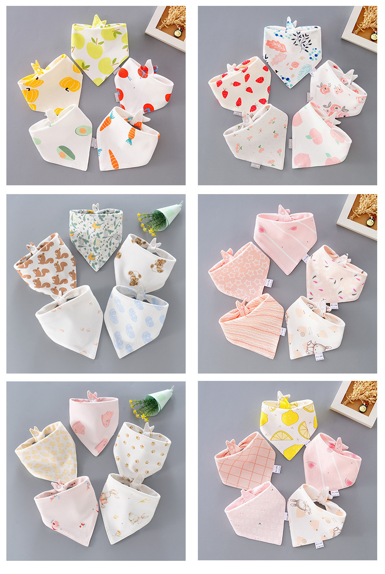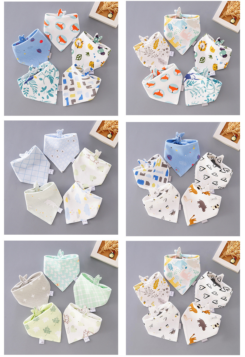 「5条装!数款组合」婴幼儿三角口水巾棉印花宝宝围嘴吃饭防漏围兜可爱卡通组合寝居用品