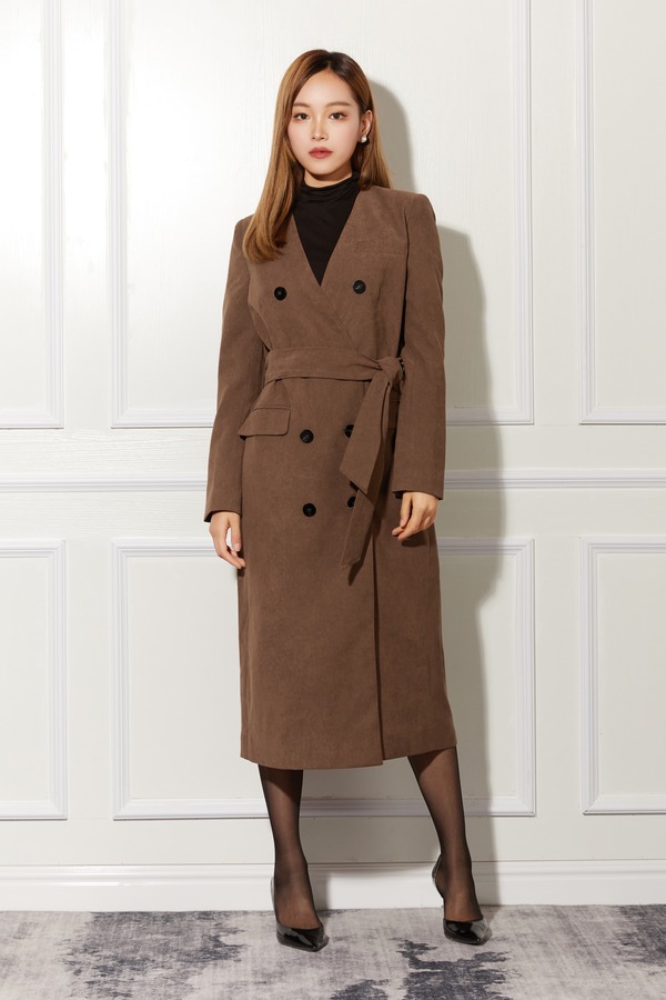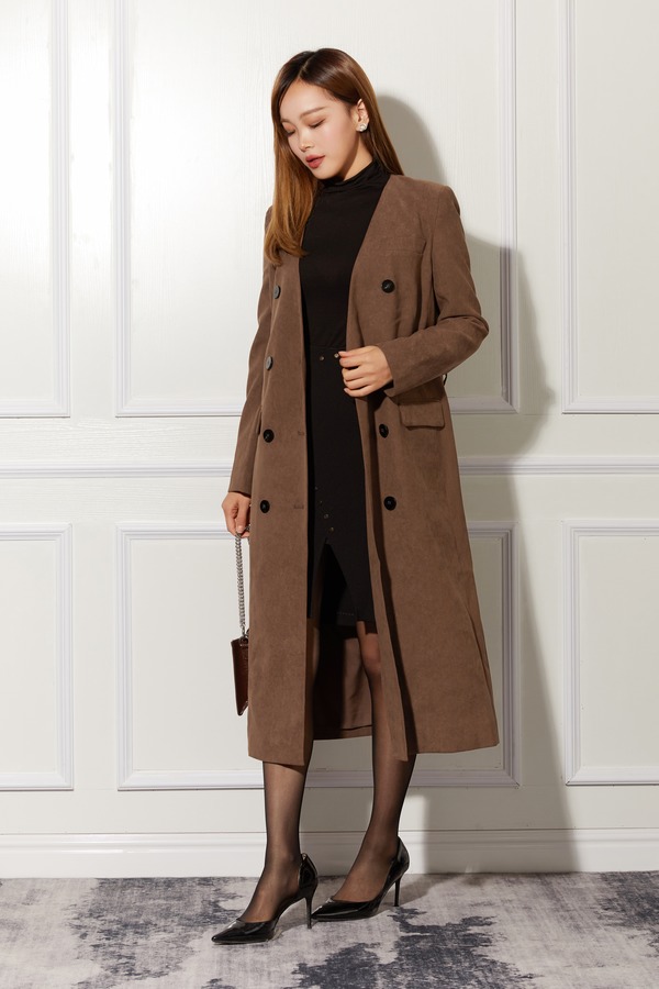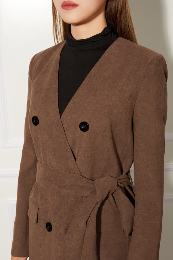 ESTELLICA 卡其色V领长外套 10785
