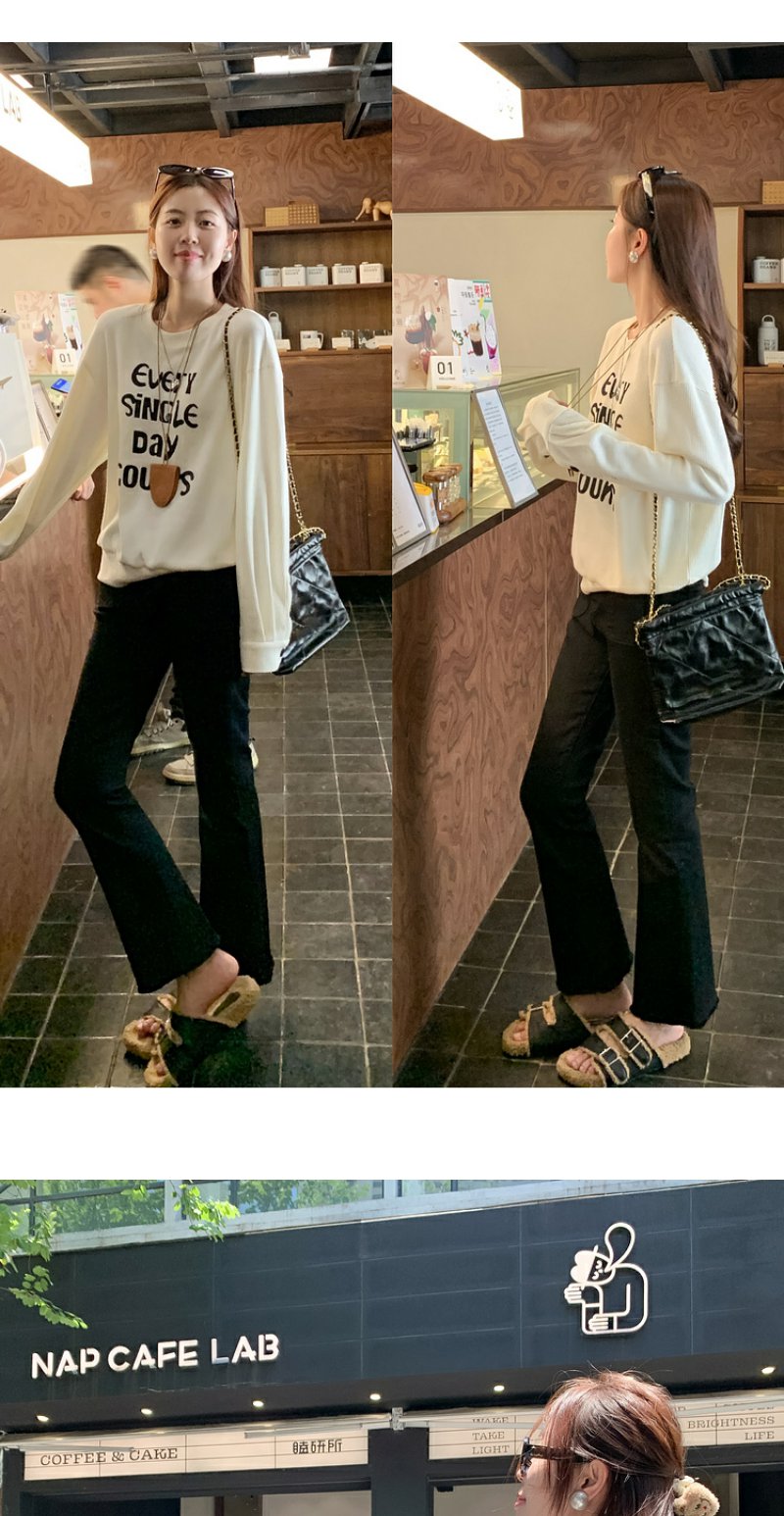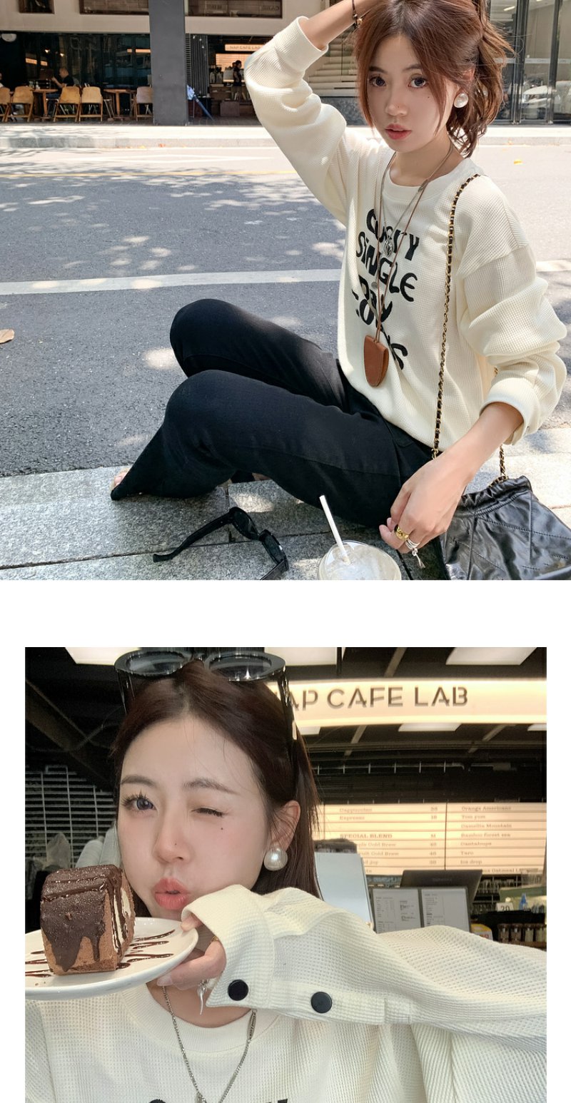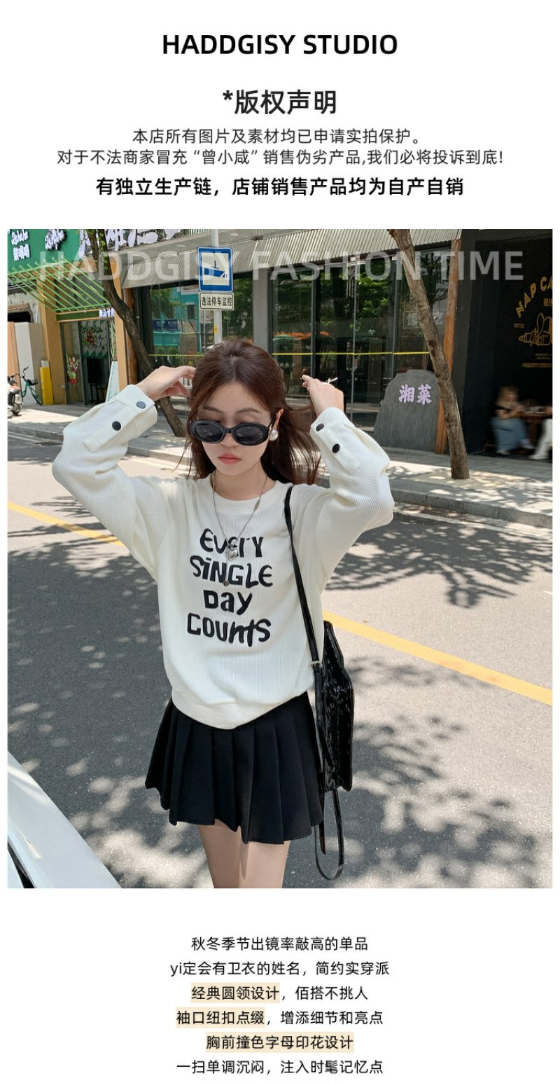 <曾小咸推荐>【好穿不单调】杏色黑色字母卫衣
