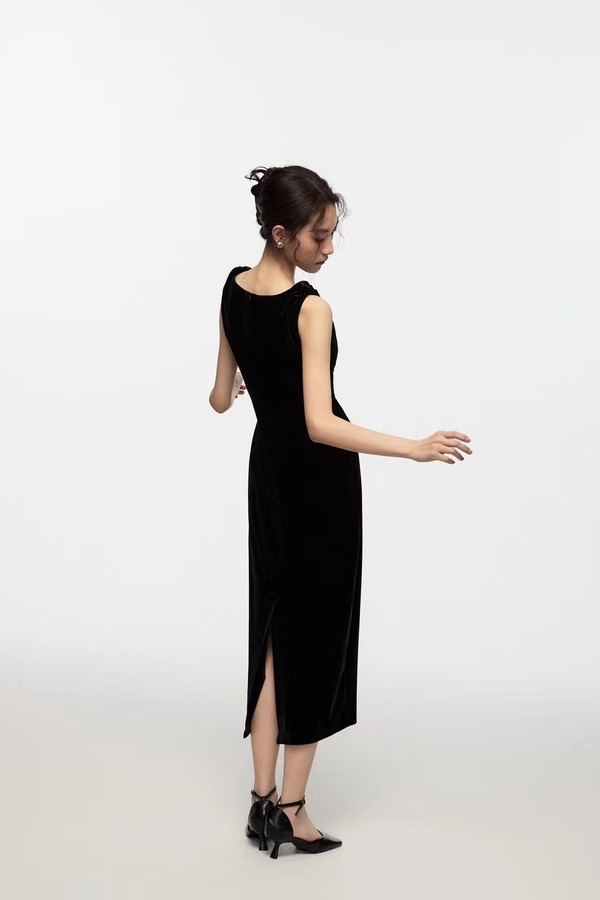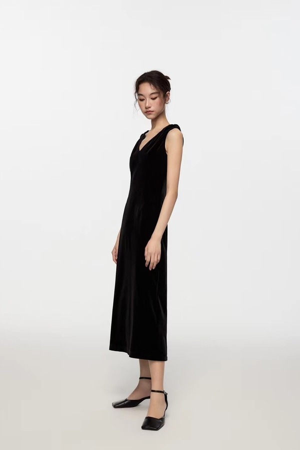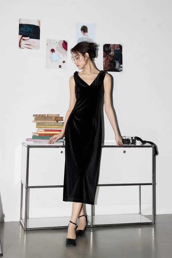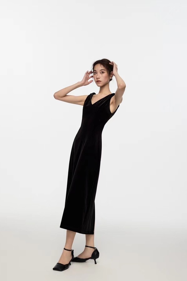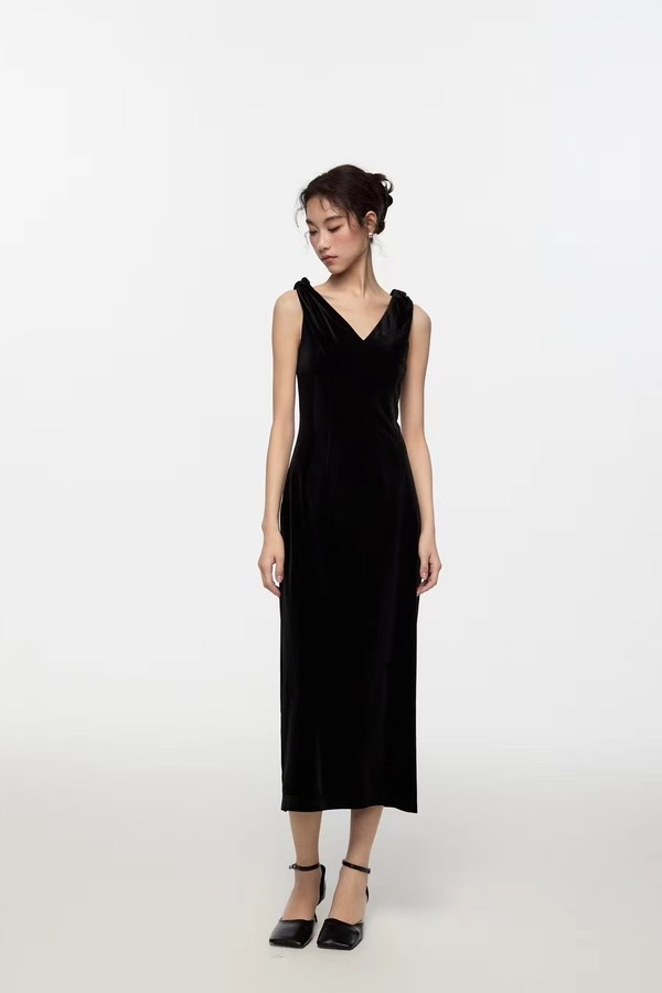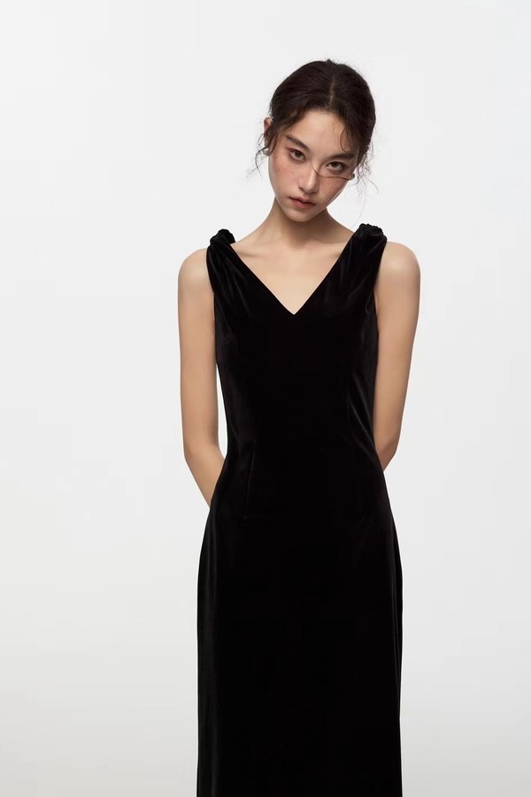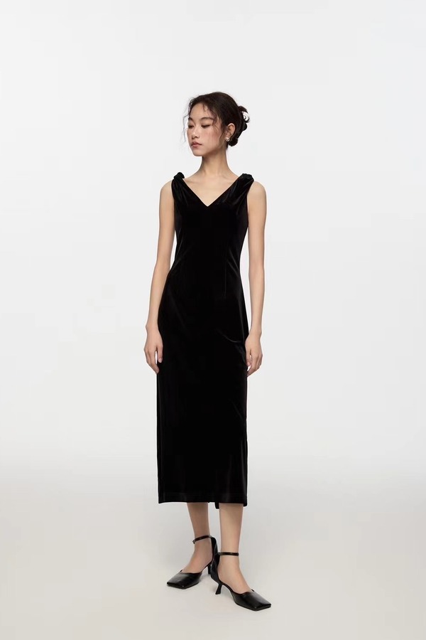 Kai & Kiera 黑色丝绒V领礼服连衣裙 20115