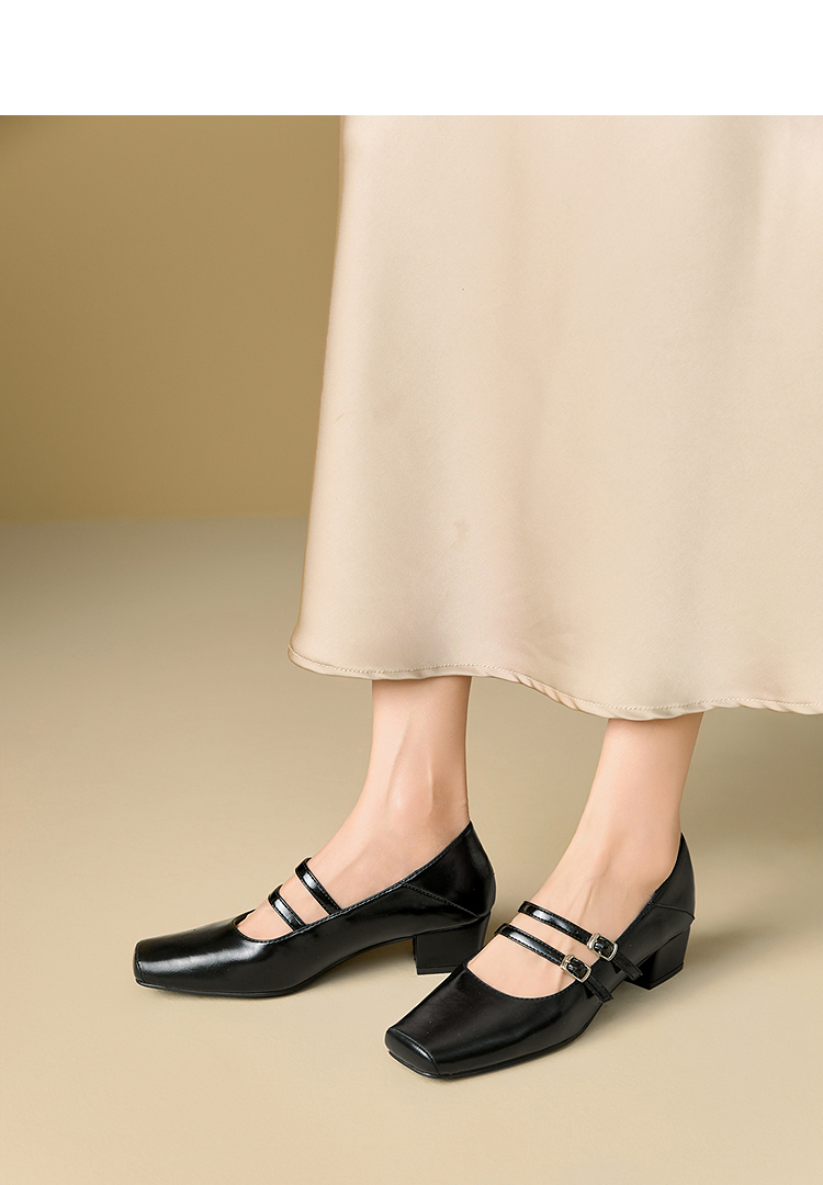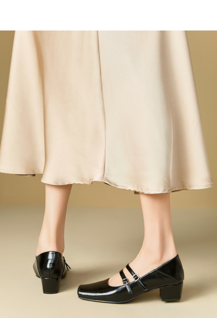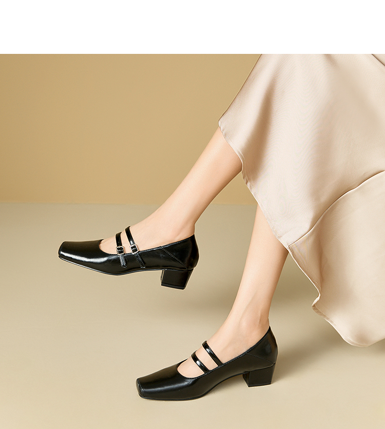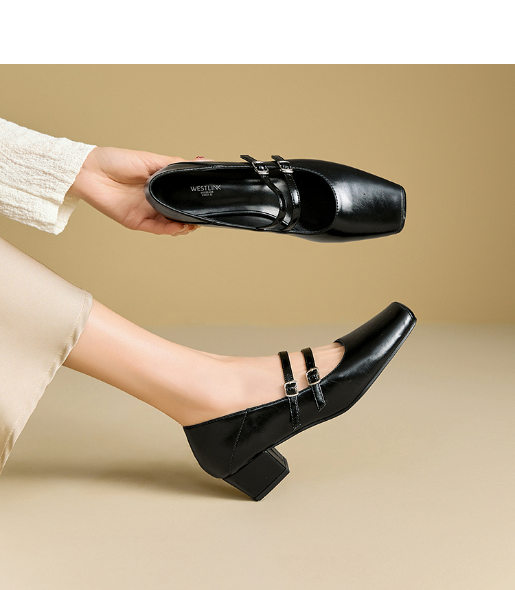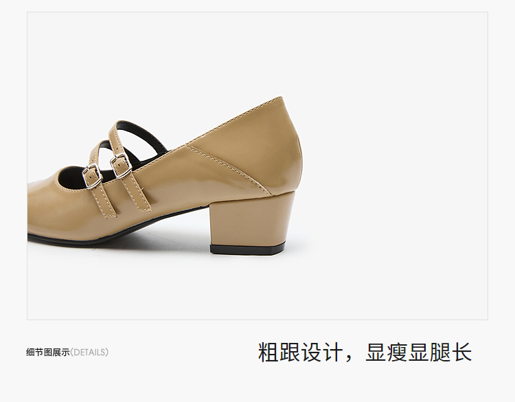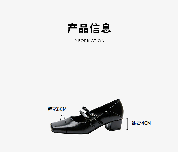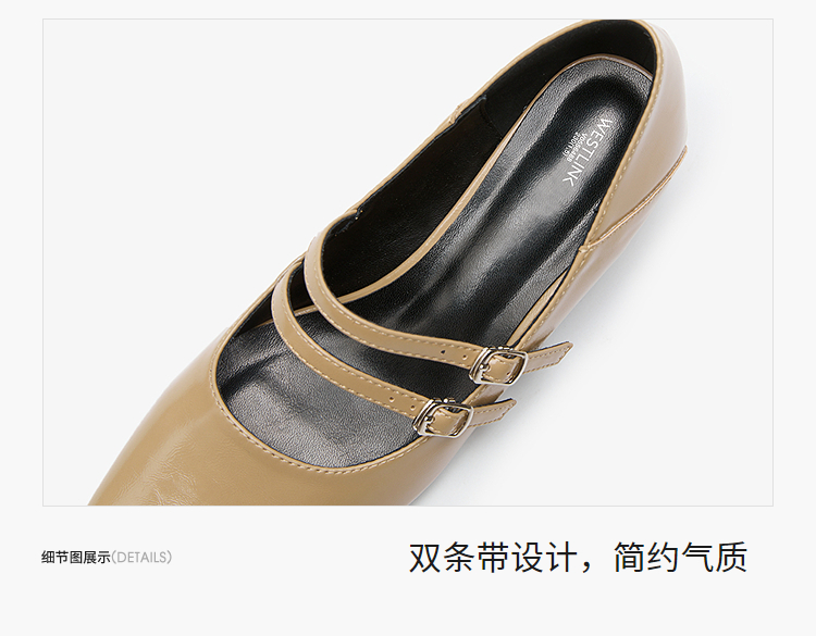 西遇粗跟玛丽珍鞋女新款春夏芭蕾法式小皮鞋方头黑色中跟单鞋V0556488