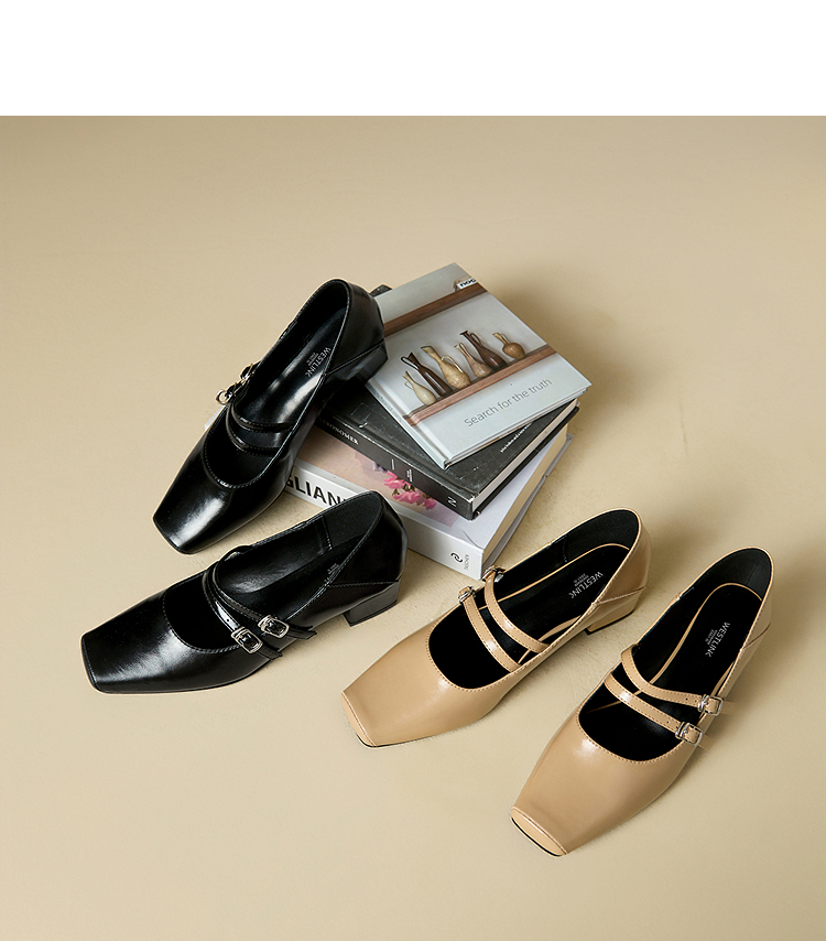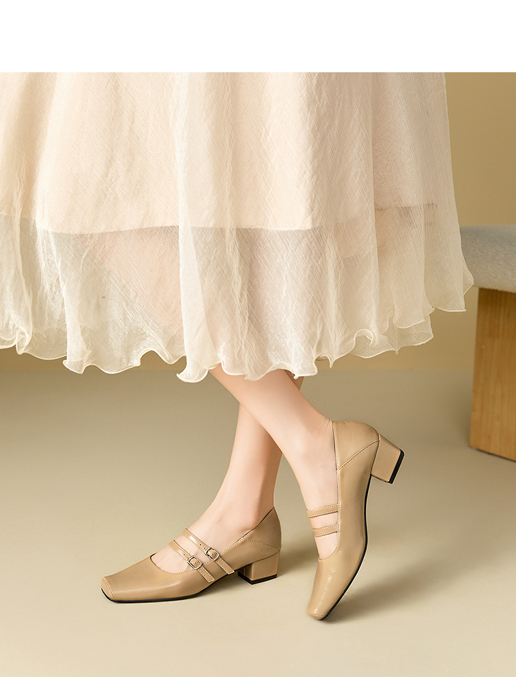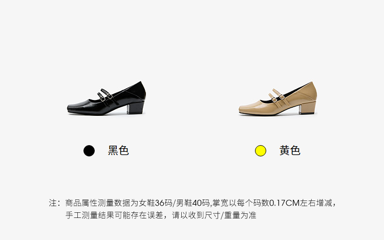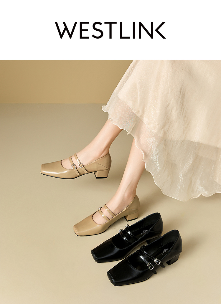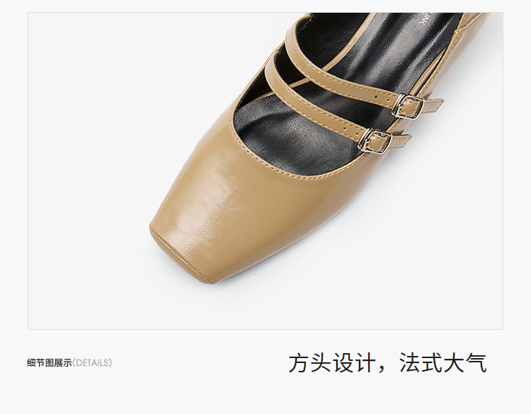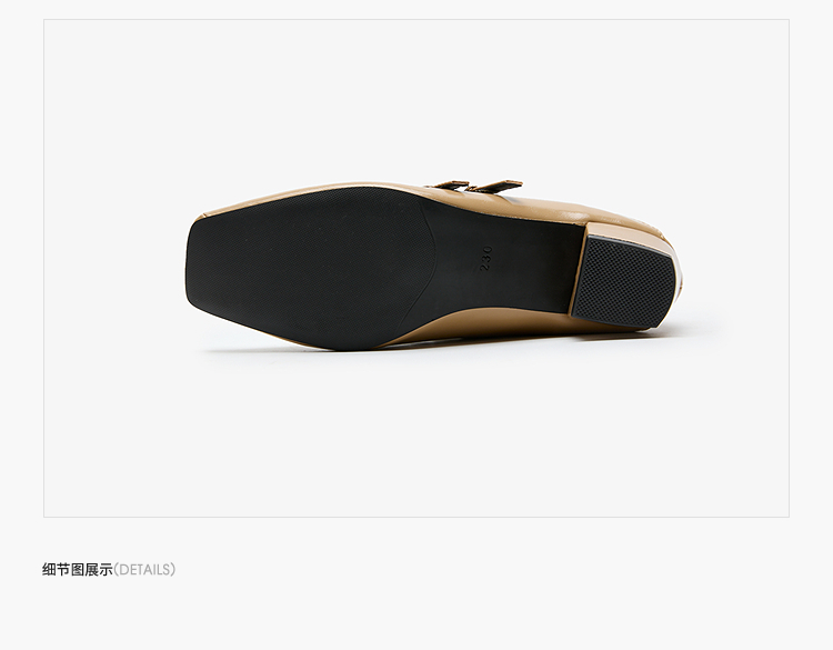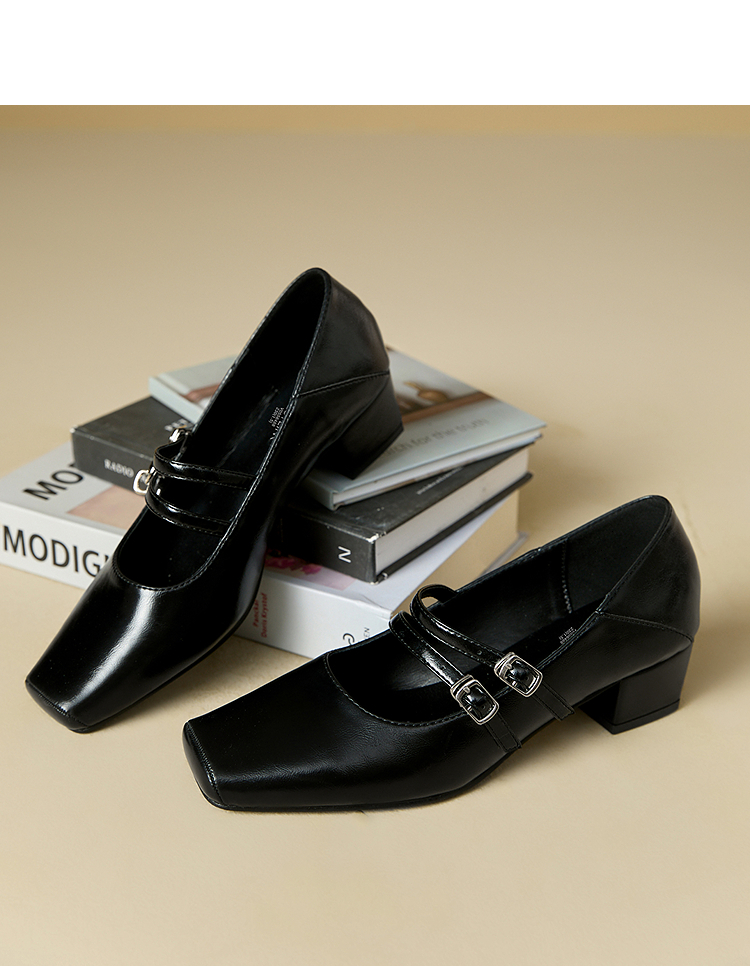 西遇粗跟玛丽珍鞋女新款春夏芭蕾法式小皮鞋方头黑色中跟单鞋V0556488