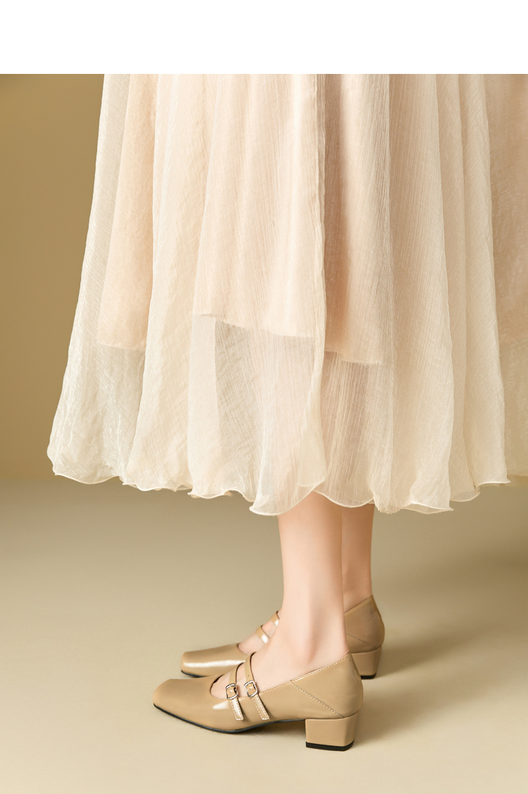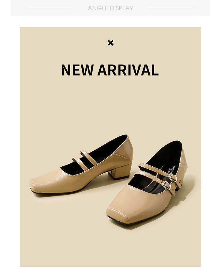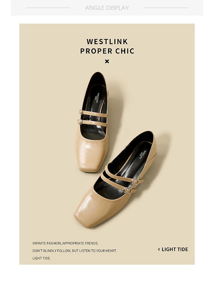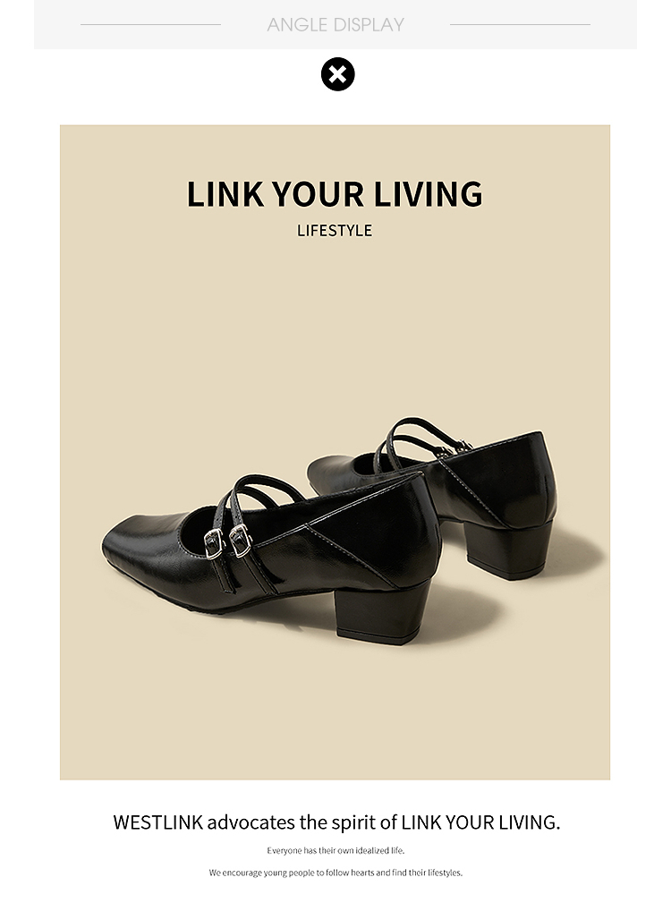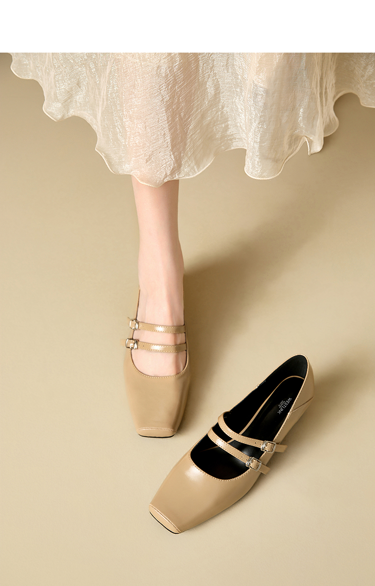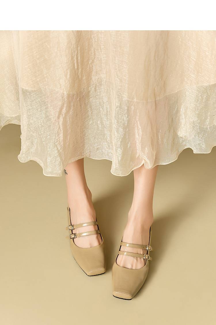 西遇粗跟玛丽珍鞋女新款春夏芭蕾法式小皮鞋方头黑色中跟单鞋V0556488