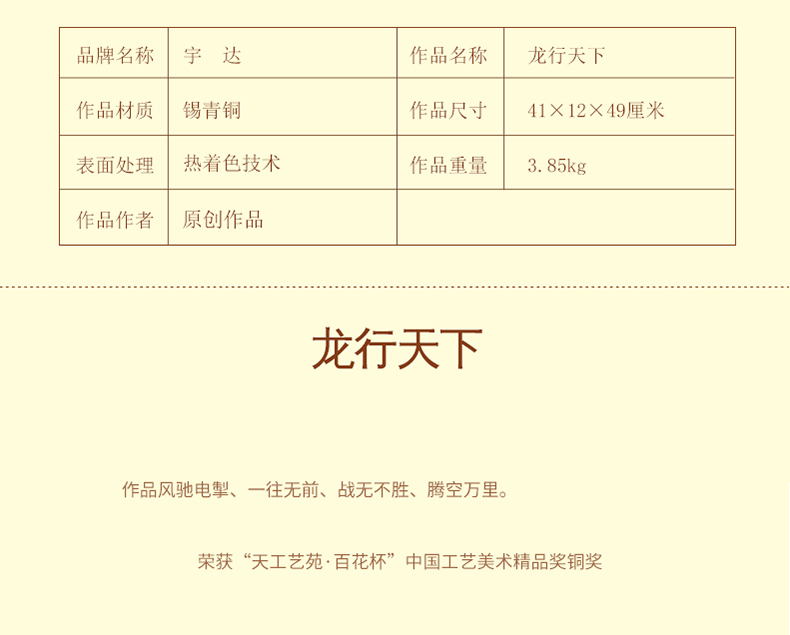 宇达青铜摆件 十二生肖龙《龙行天下》工艺品 装饰 家居摆件 高49cm