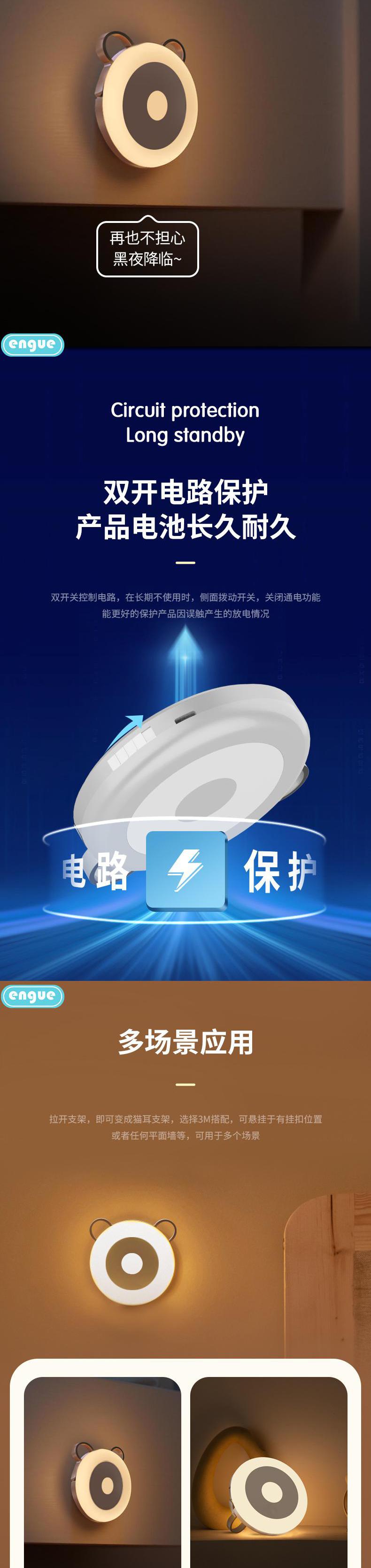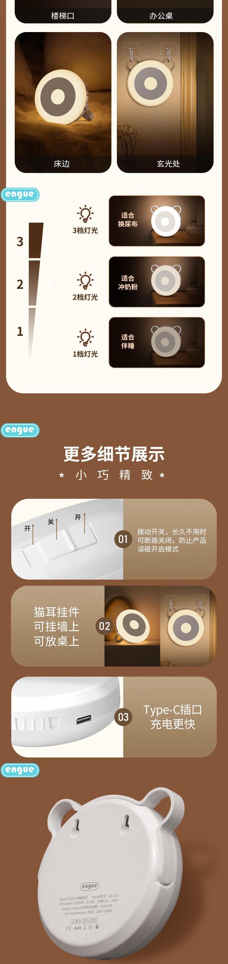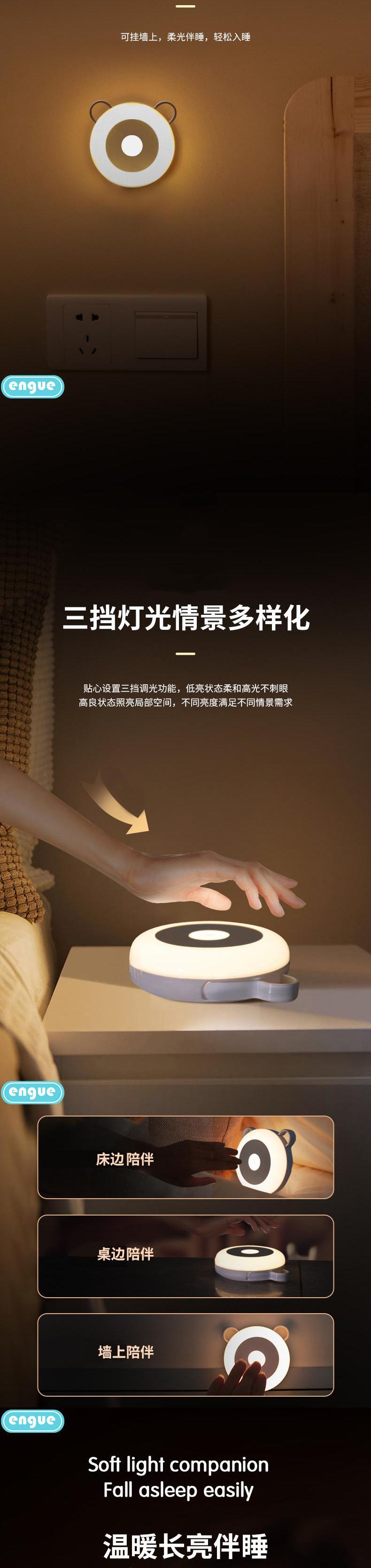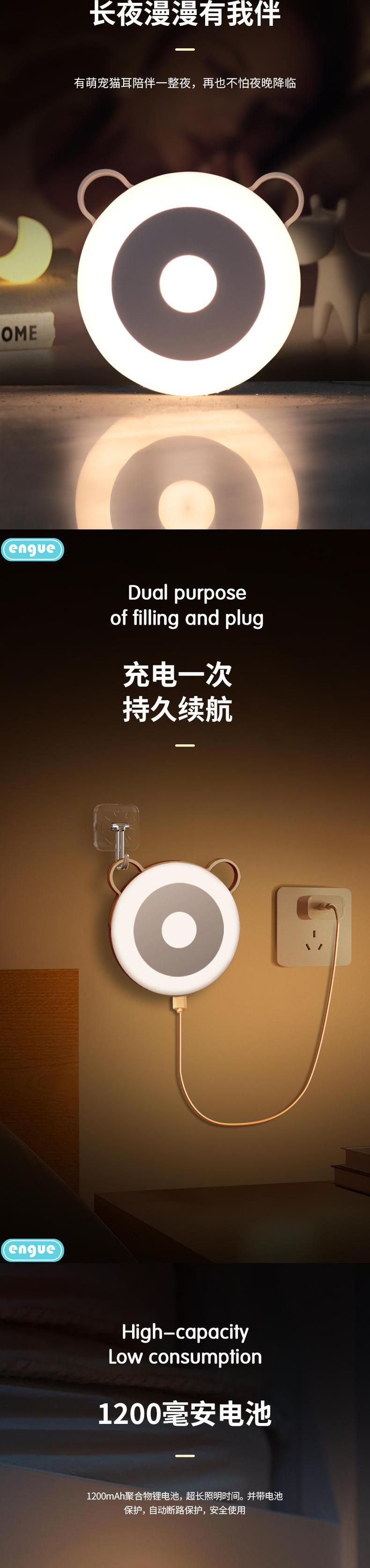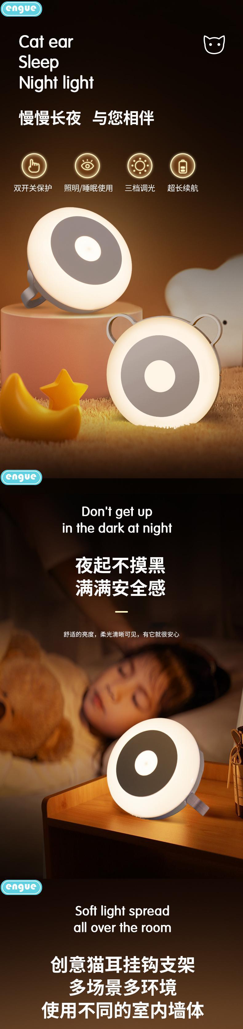 engue恩谷猫耳触控睡眠小夜灯EG-613三档调温硅胶拍打可爱送礼
