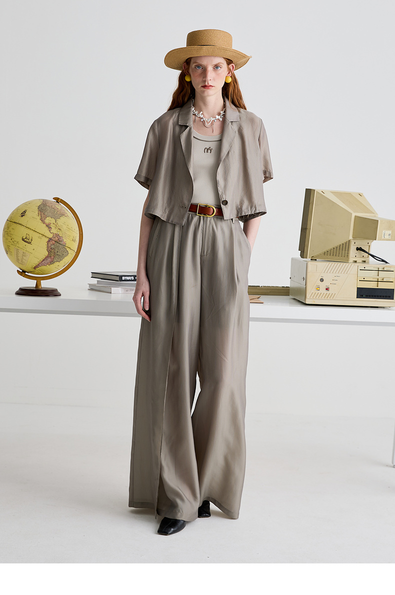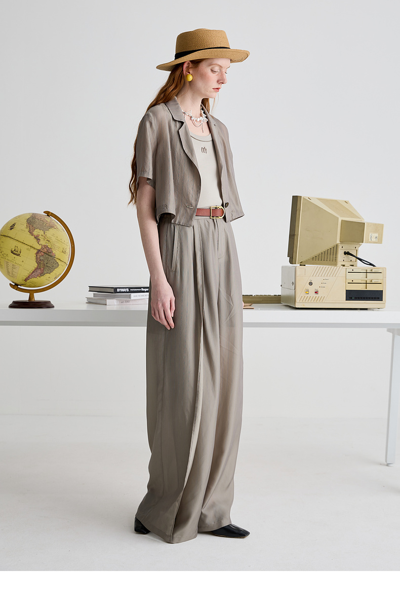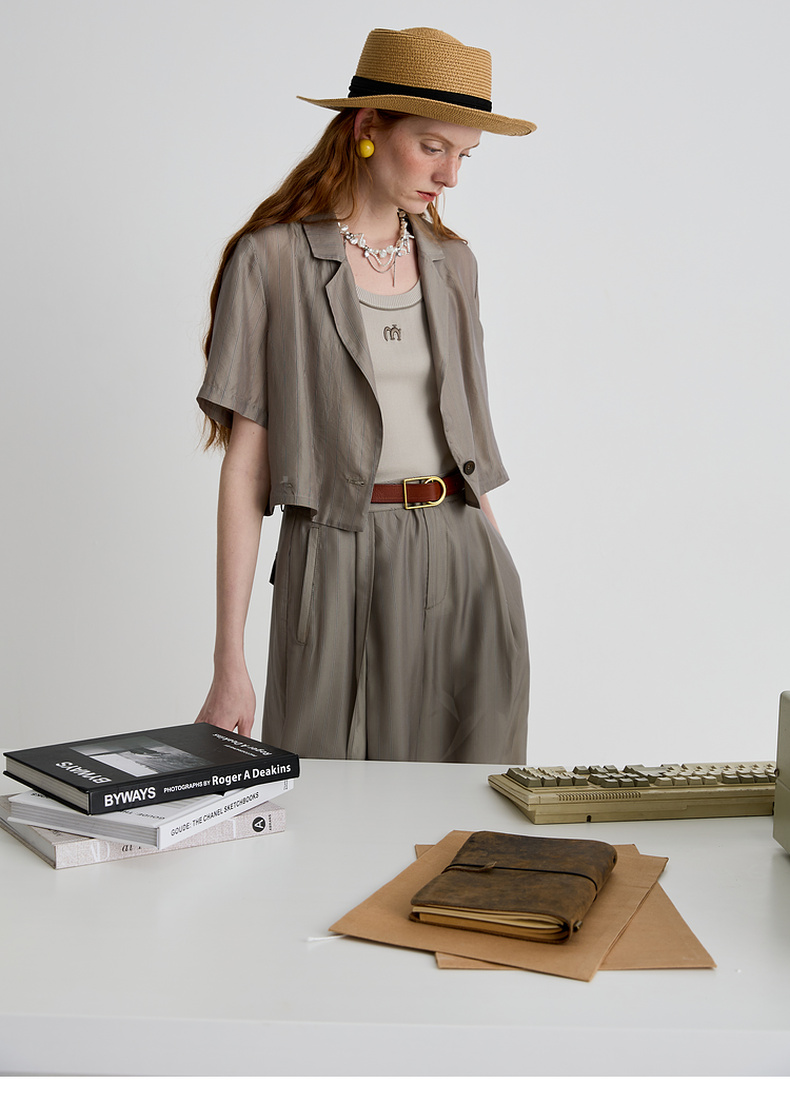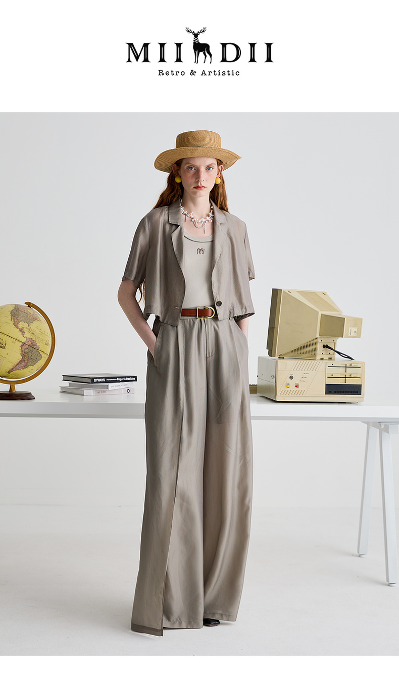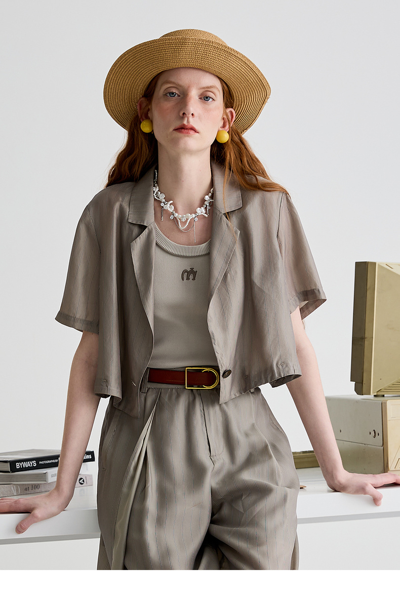 谜底外套短袖女2025夏季新品复古风通勤宽松H型短外套252MW0588