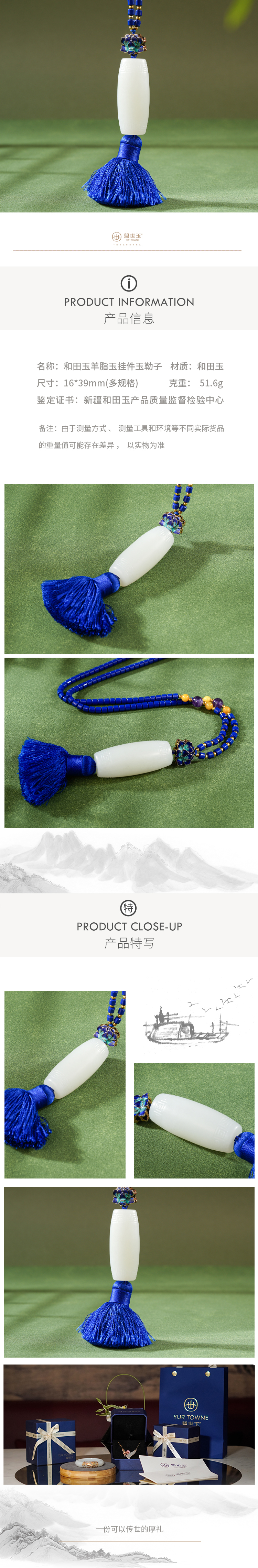 「一口价」新疆国玉盟世玉【瑞韵锦纹】和田玉羊脂玉挂件玉勒子【带证书·顺丰物流】