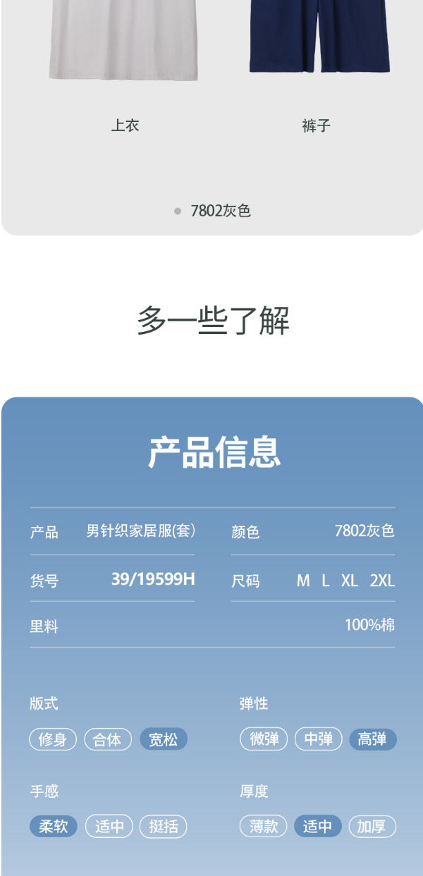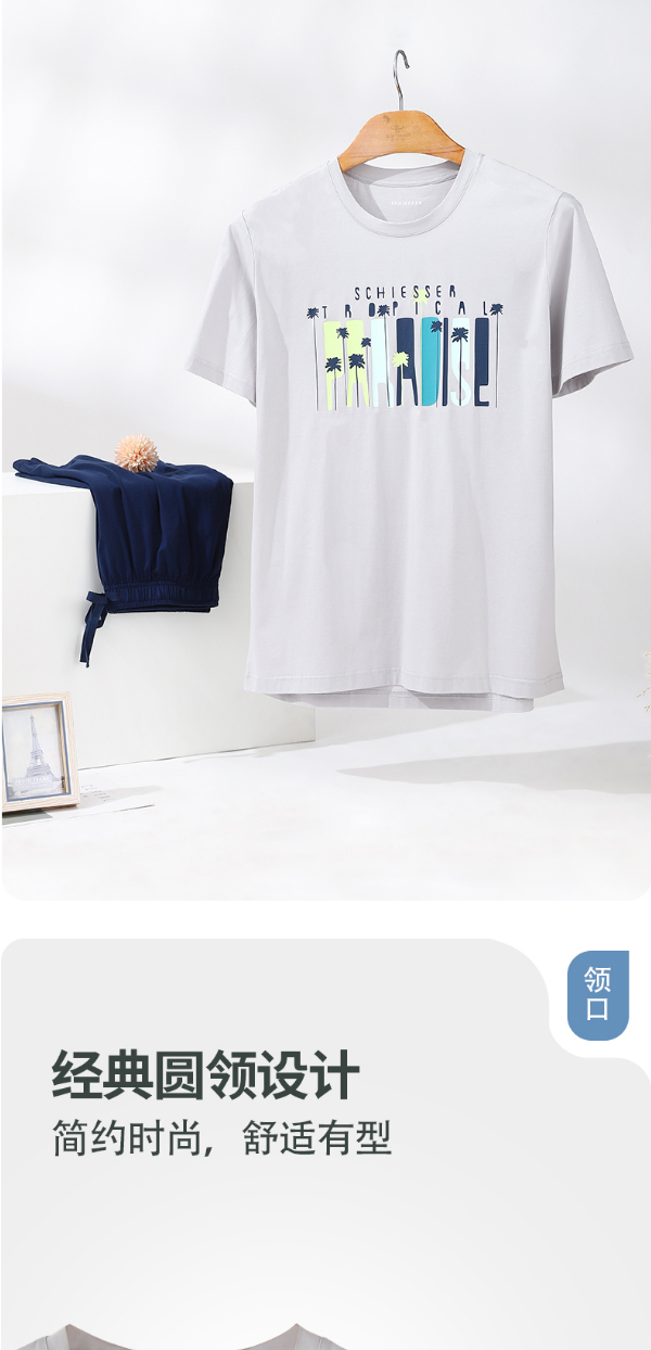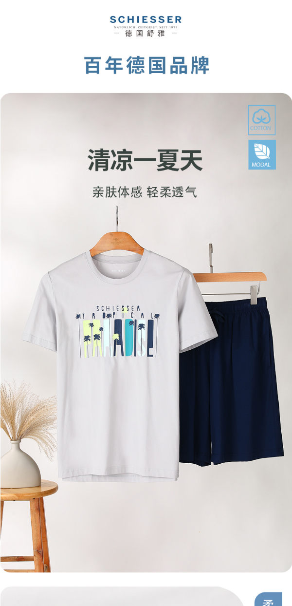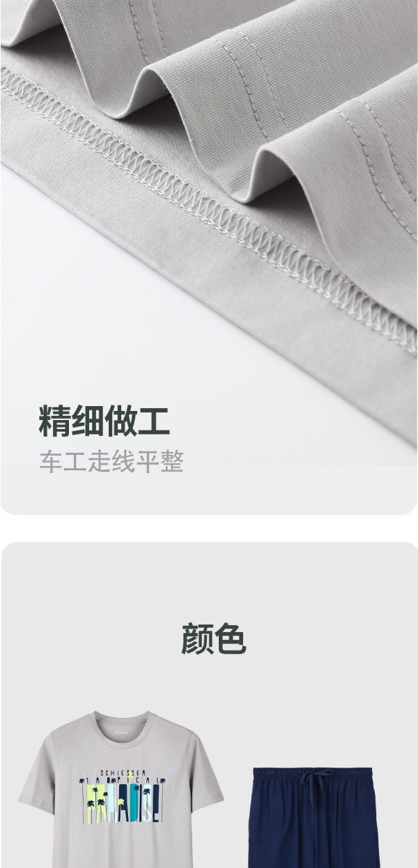 舒雅男士睡衣22春夏新款纯棉薄款套头短袖短裤休闲家居服套装39/19599H