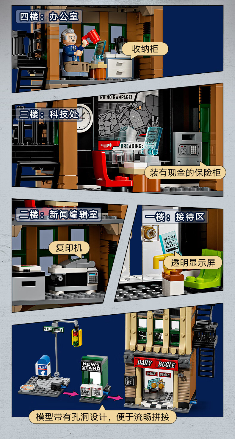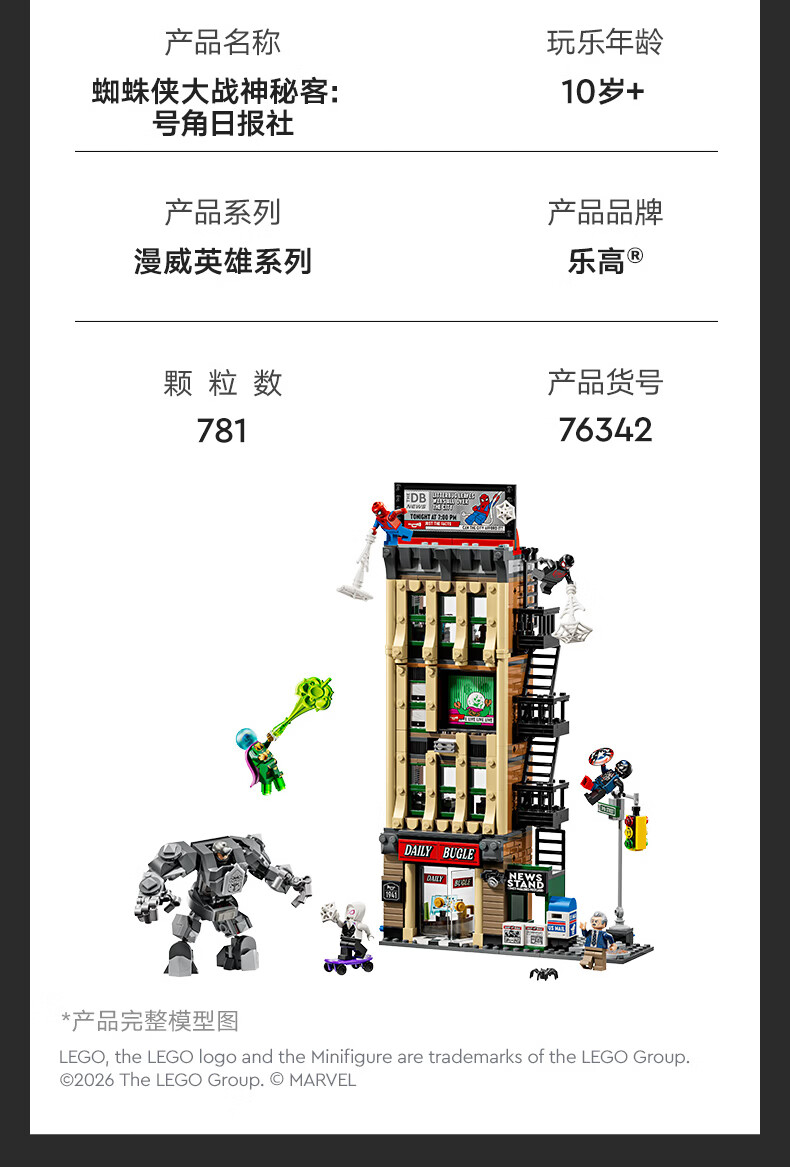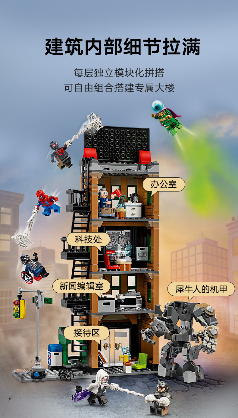 乐高积木 L76342 蜘蛛侠大战神秘客:号角日报社