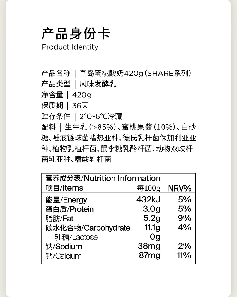 吾岛蜜桃风味酸奶420g