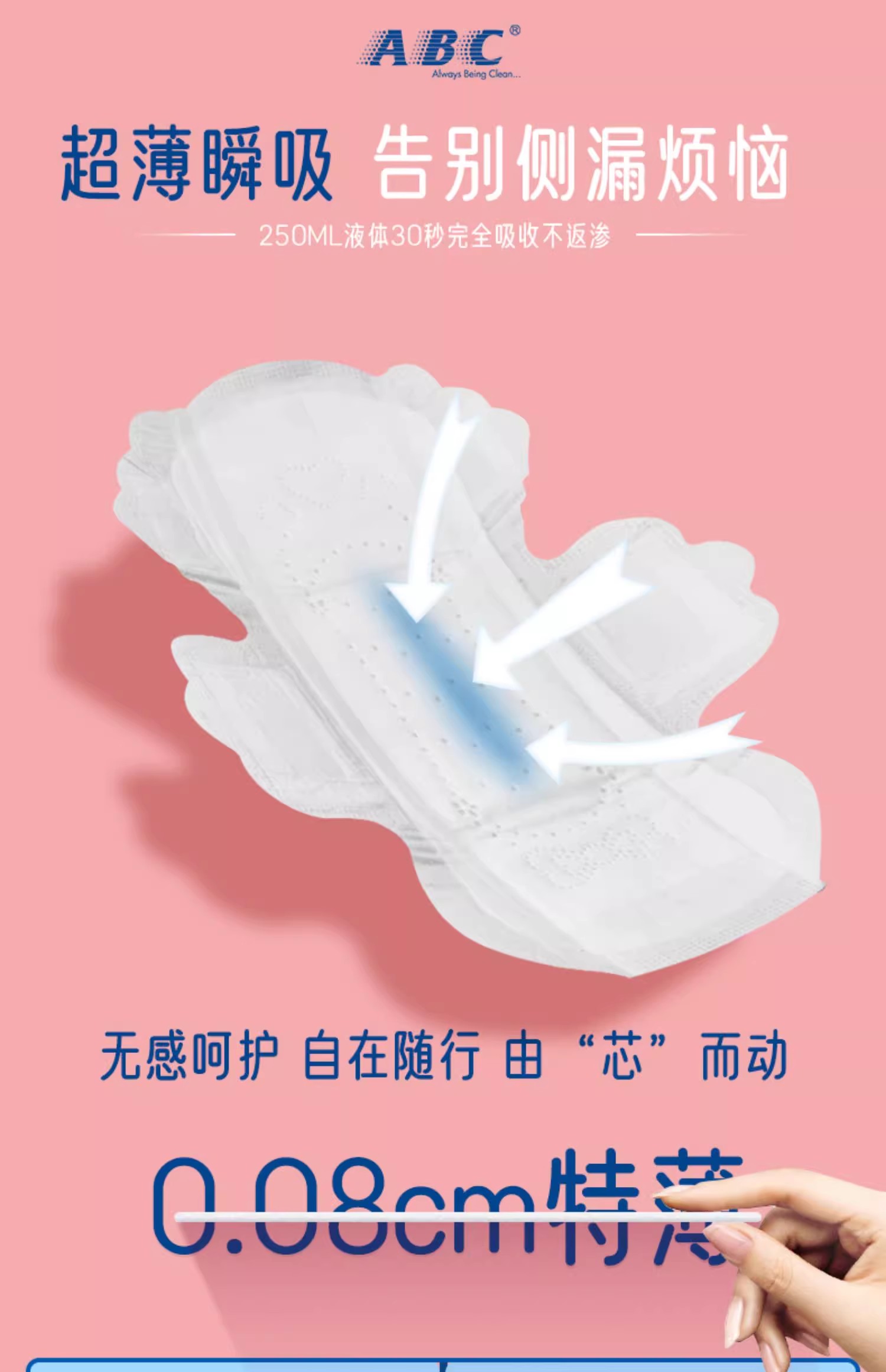 这真的是我D一次遇到这么薄的卫生巾,感觉就比护垫稍微厚一点,