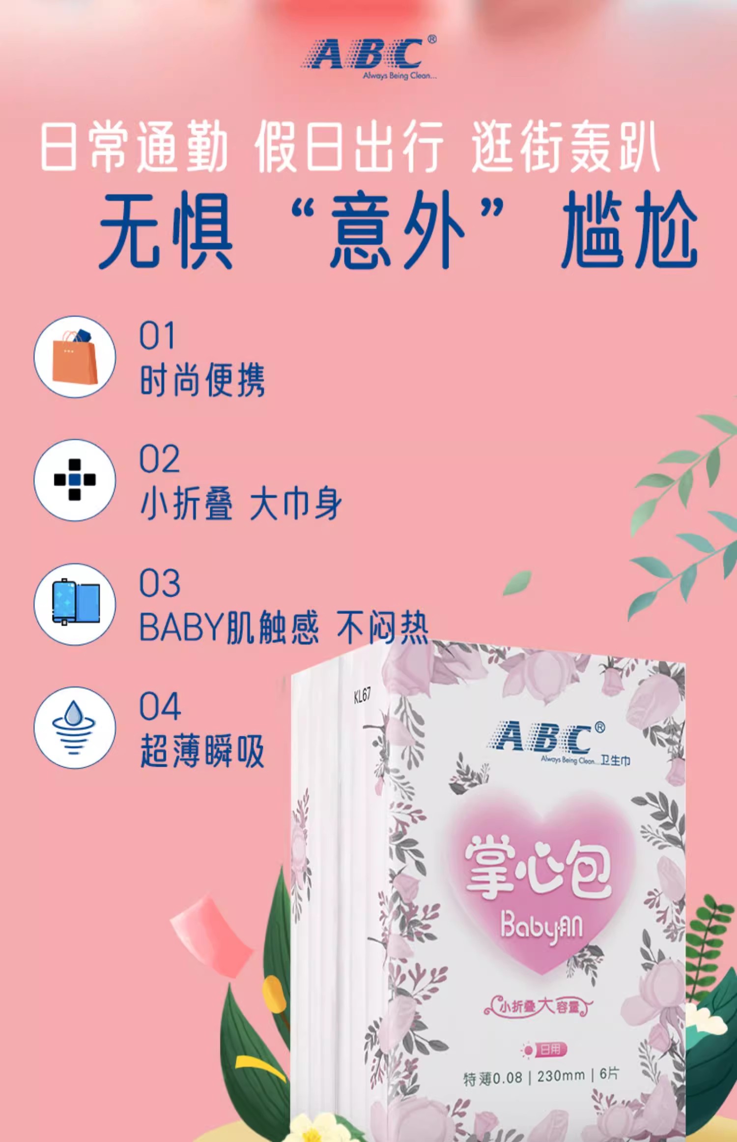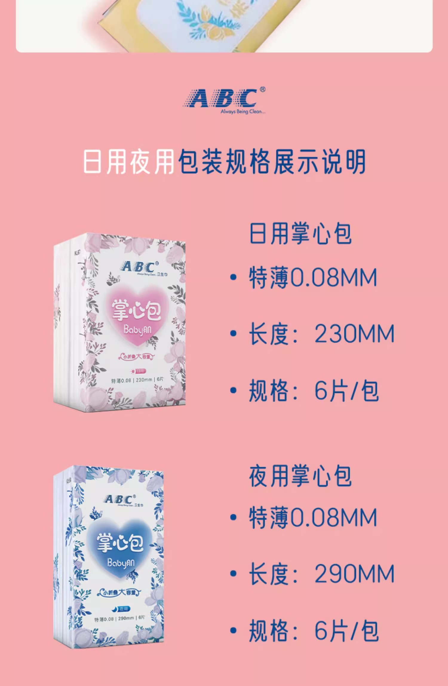 【商品名称】ABC 超薄掌心包日用230mm 六片/包