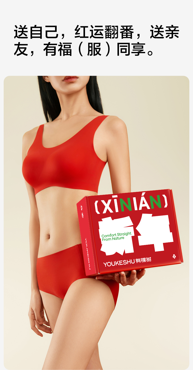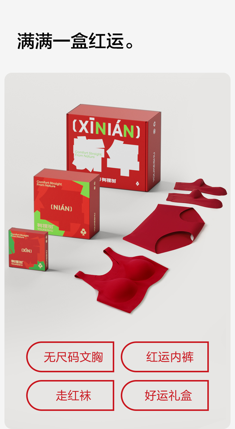 有棵树红色新年本命年无尺码内衣套装礼盒-0002