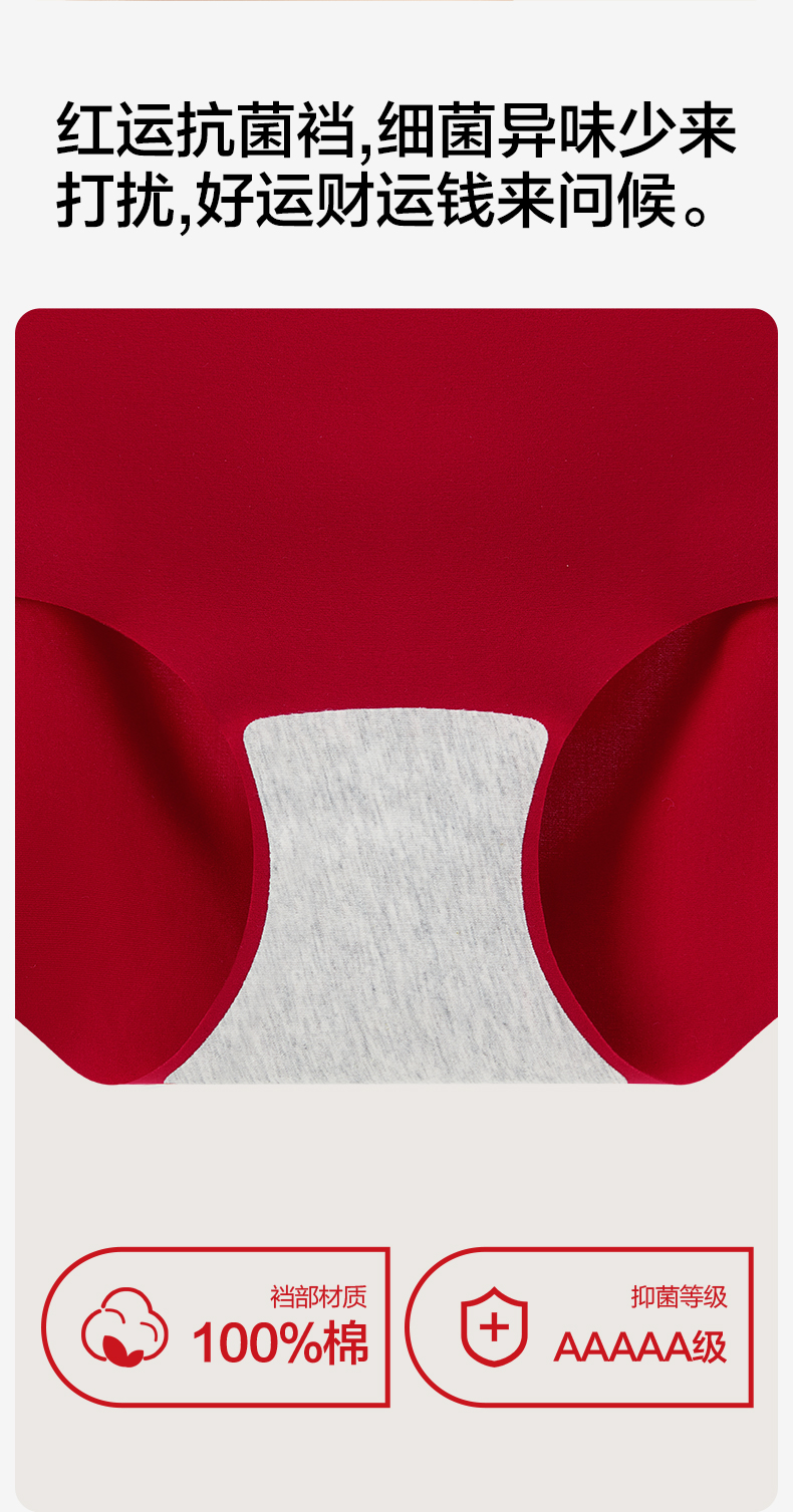 【新品上新】 有棵树10A抗菌纯棉全棉裆中腰女士三角裤3条装-U3261