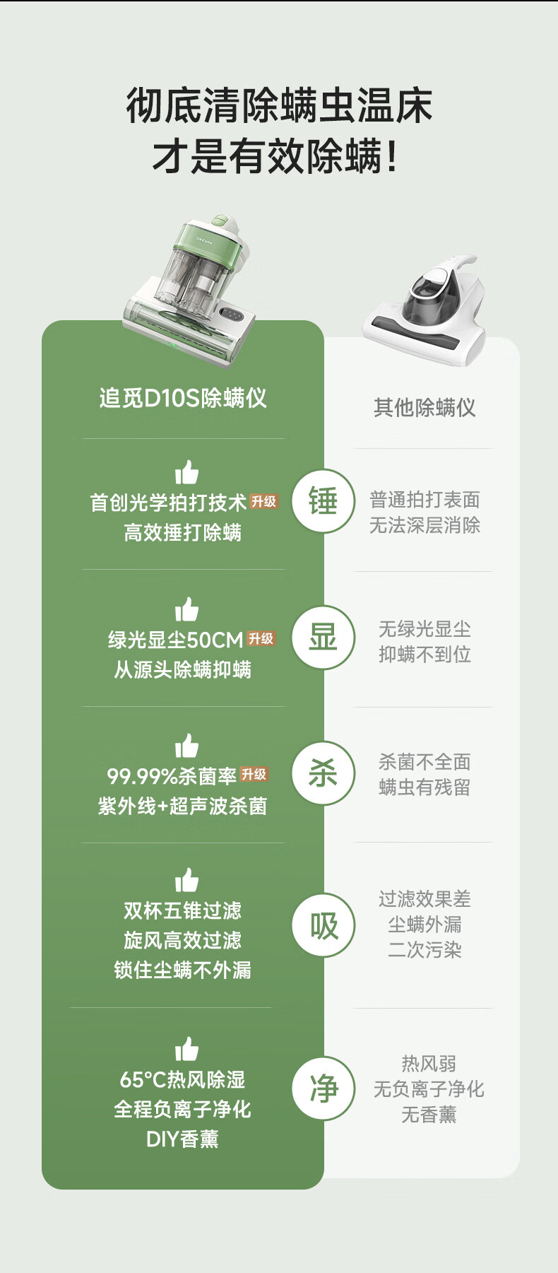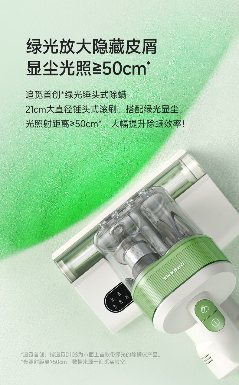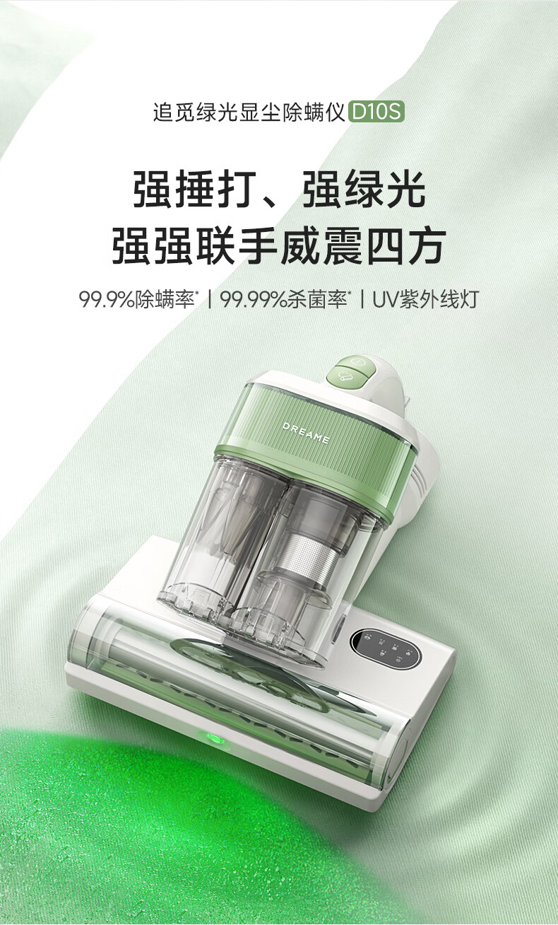 【非质量问题不退换】【限时特惠】追觅除螨仪D10S 家用吸尘除螨 小型手持床上吸尘器 超声波紫外线杀菌 绿光显尘 强力拍打 去螨虫神器