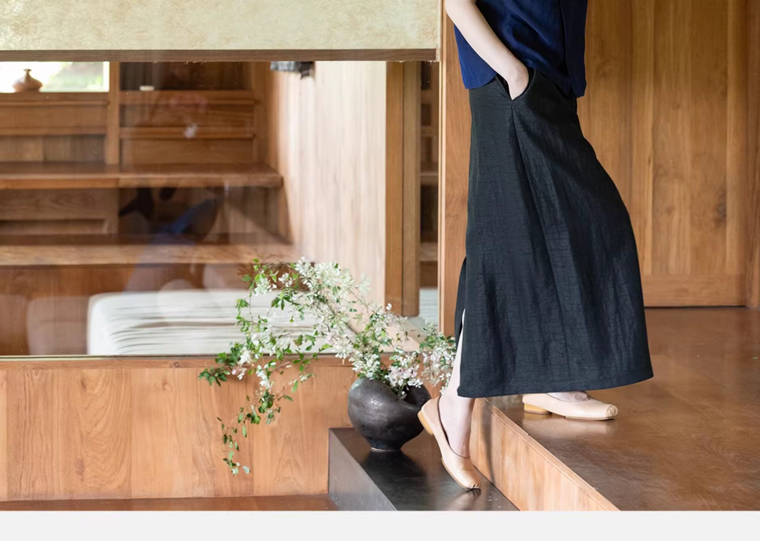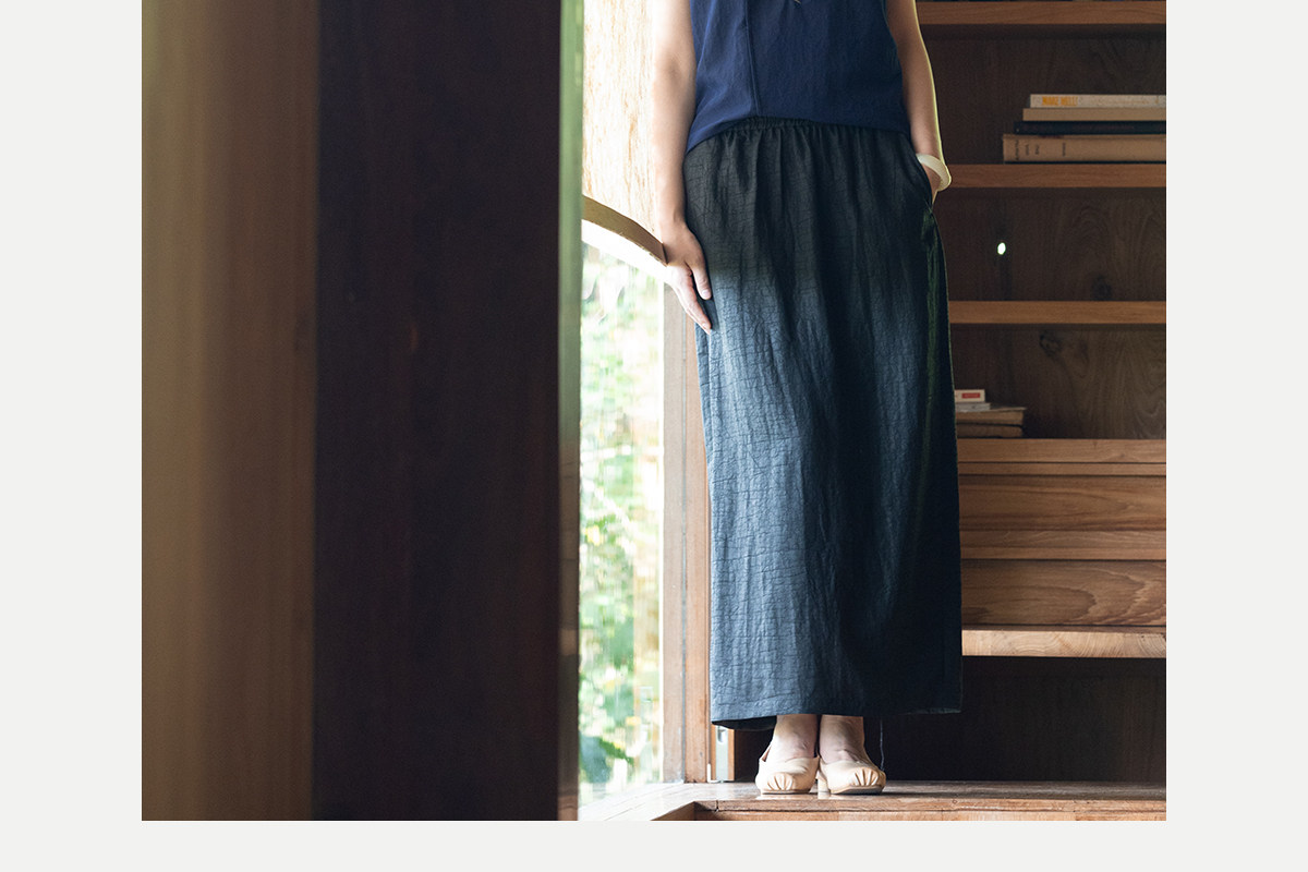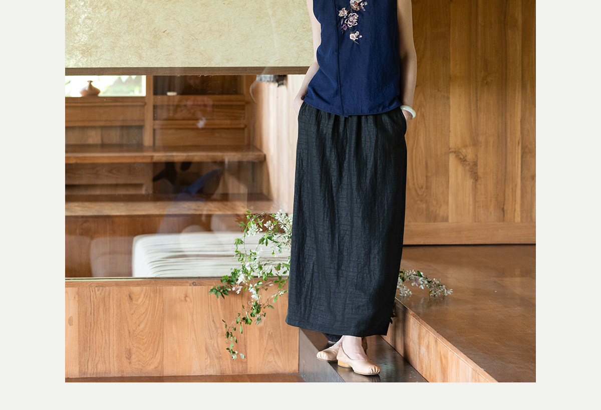 牧衣游原创 重磅香云纱龟裂纹半身裙紫色垂感百搭宽松半裙 好望山