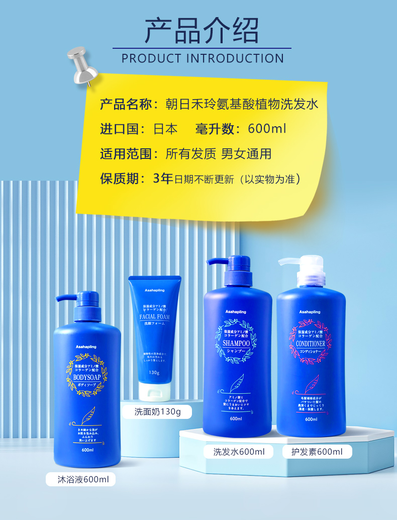 朝日禾玲 氨基酸植物洗发香波/护发素/沐浴露 600ml