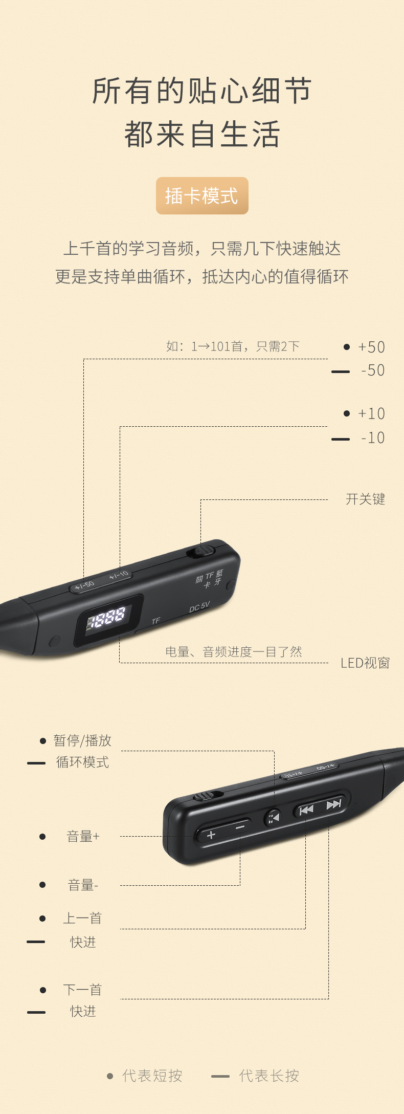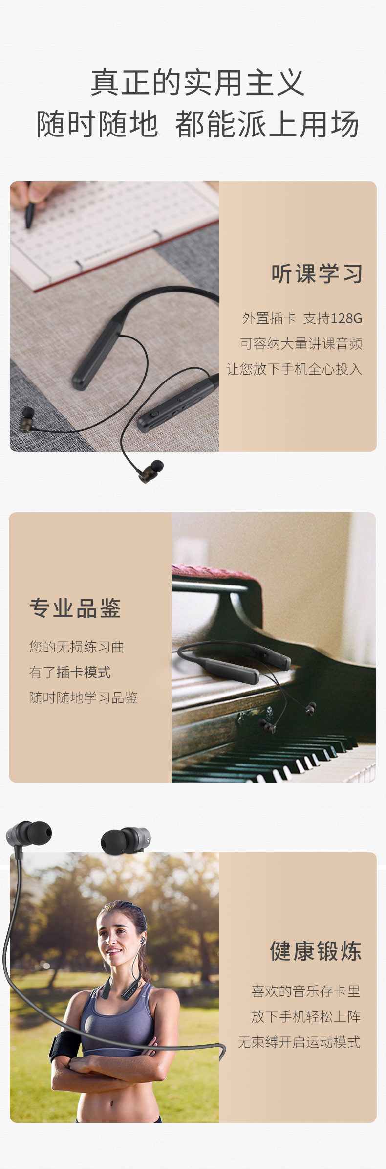 前海子清 TF可插卡播放器无线蓝牙耳机颈挂式运动超长续航屏显降噪