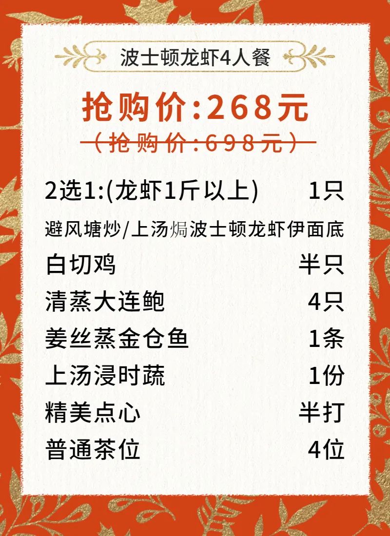 (波士顿龙虾 4 人餐)