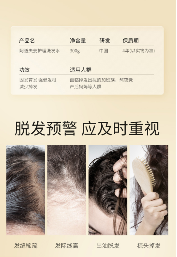 阿道夫姜护理专研洗发水(防脱固发)300ml【XPTX】