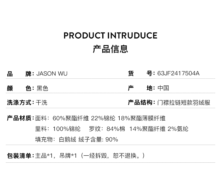 (90白鹅绒)【JASON WU】秋冬新款保暖大翻领廓形短款上衣羽绒服女