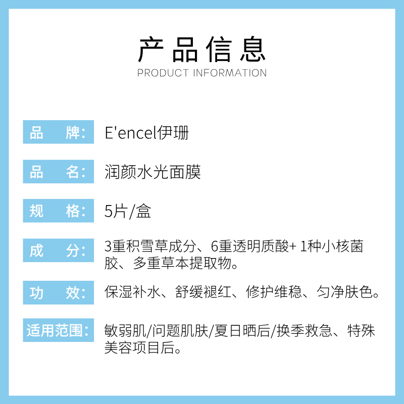 新品 伊珊润颜水光面膜盒装5片,无盒5片