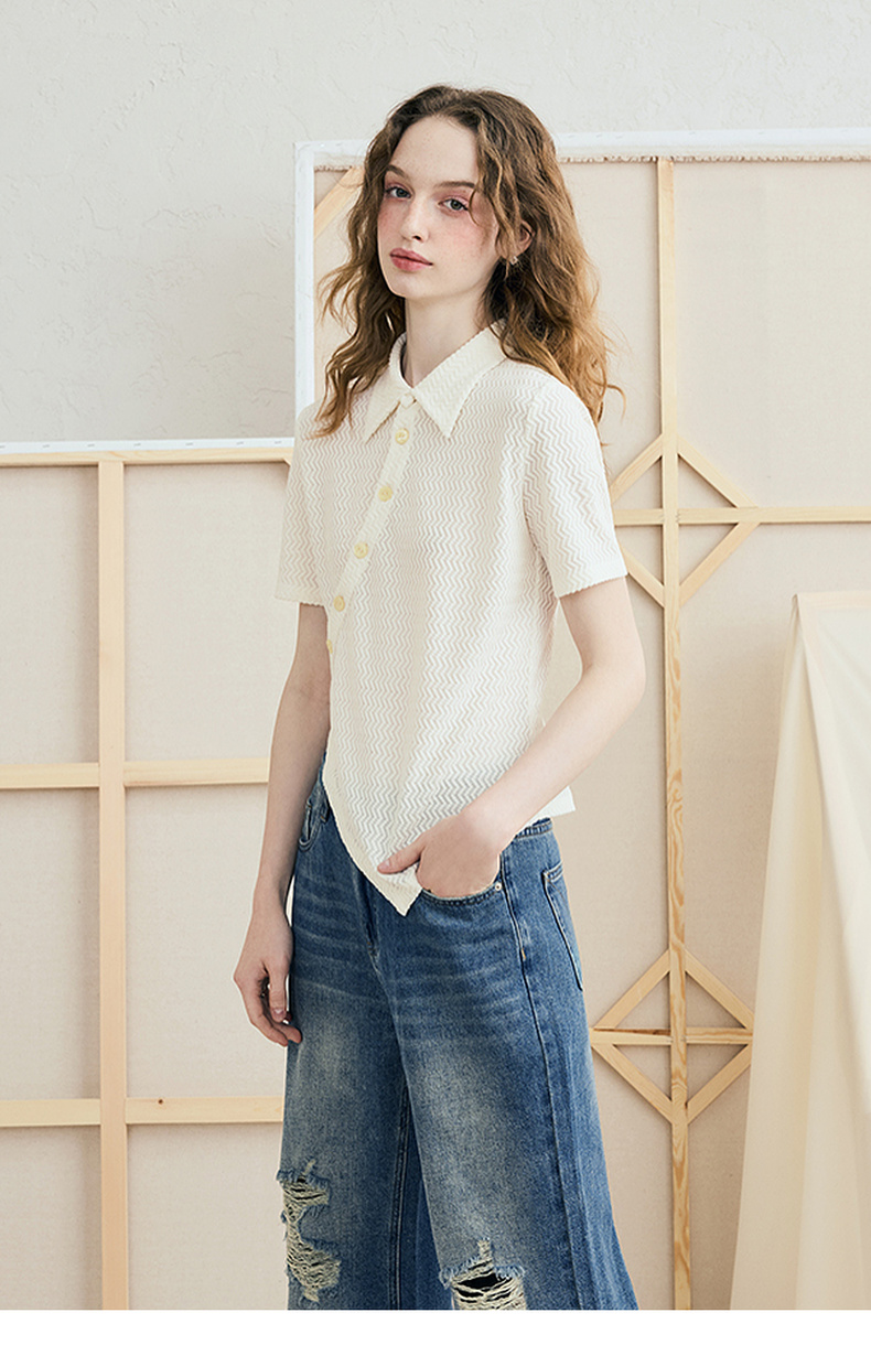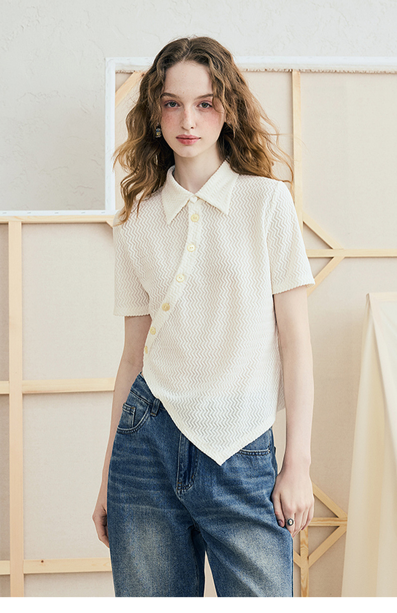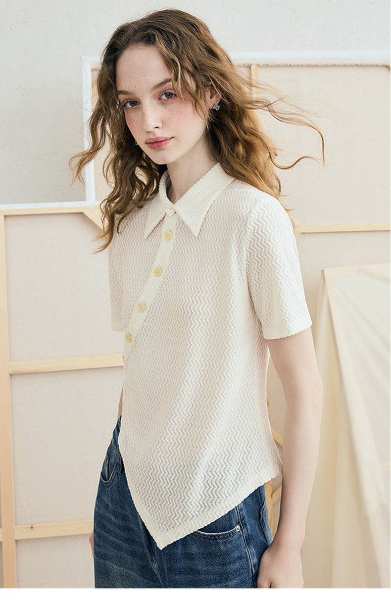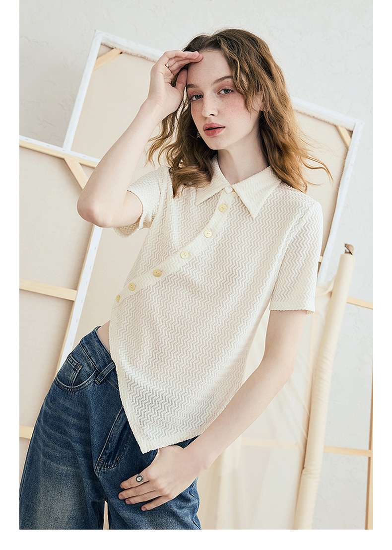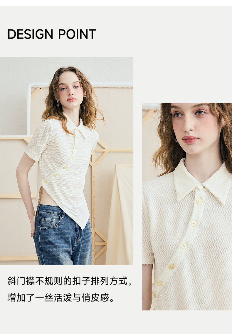 两三事雨纹手札2025夏季新款时尚斜边单排扣不对称下摆针织开衫女