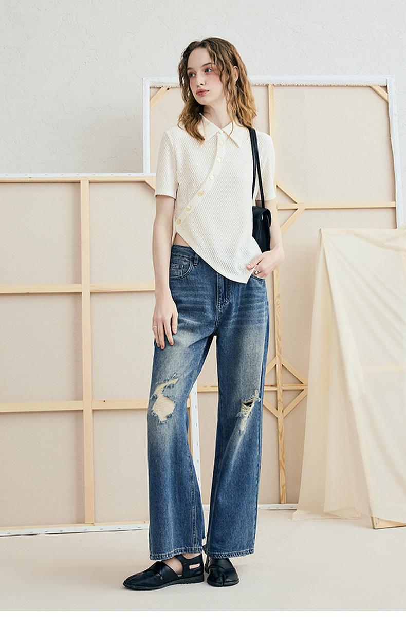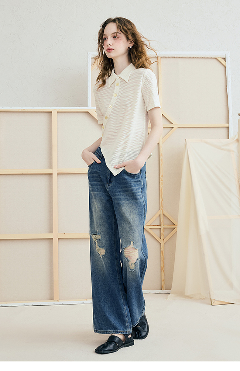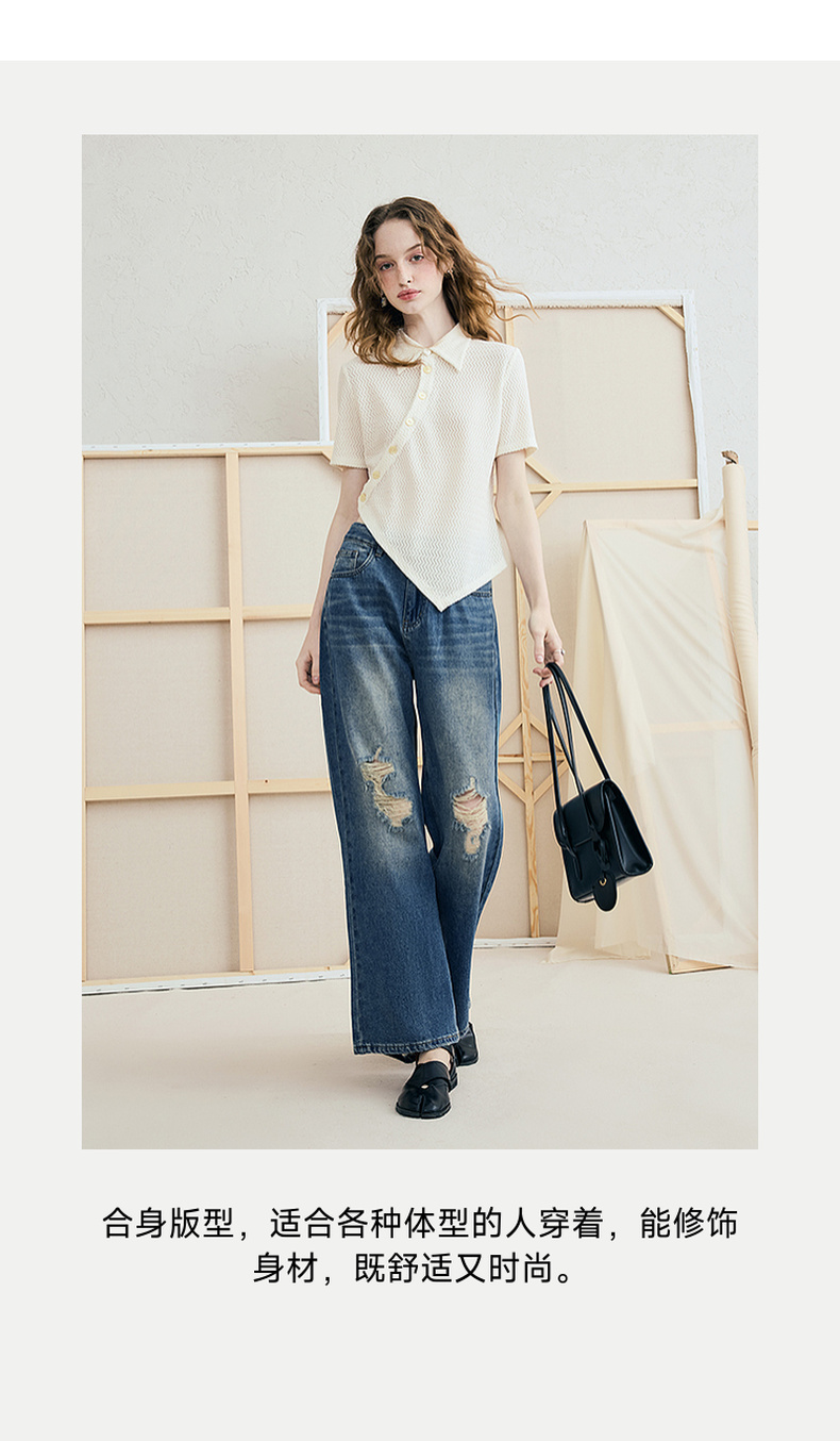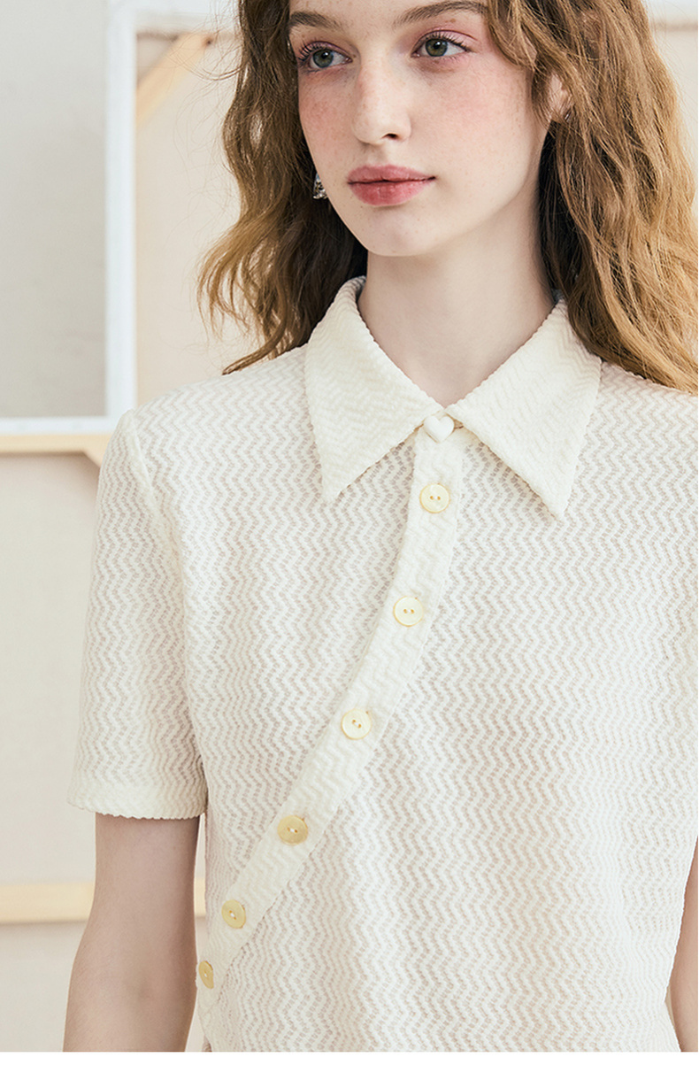 两三事雨纹手札2025夏季新款时尚斜边单排扣不对称下摆针织开衫女