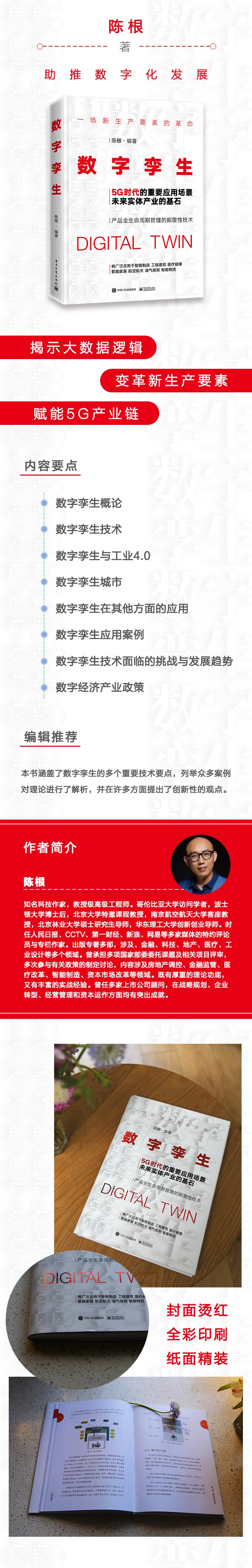 本书内容包括数字孪生概论、数字孪生技术、数字孪生与工业4.0、数字孪生城市、数字孪生在其他方面的应用、数字孪生应用案例、数字孪生技术面临的挑战与发展趋势、数字经济产业政策。本书涵盖了数字孪生的多个重要技术要点,列举众多案例对理论进行了解析,并在许多方面提出了创新性的观点。通过阅读本书,读者可以深刻地理解数字孪生这门新兴学科。