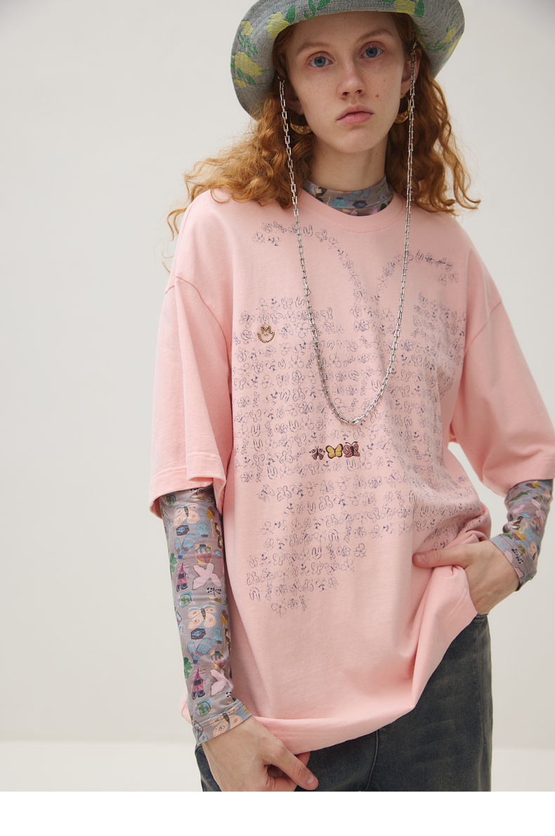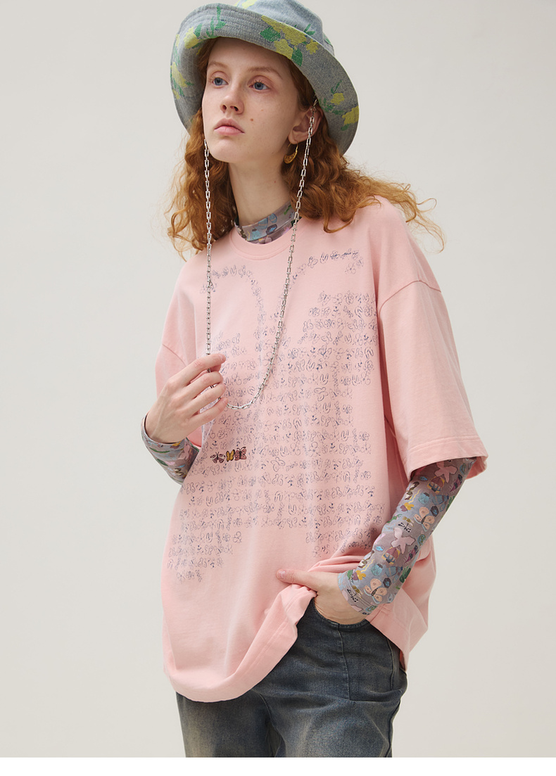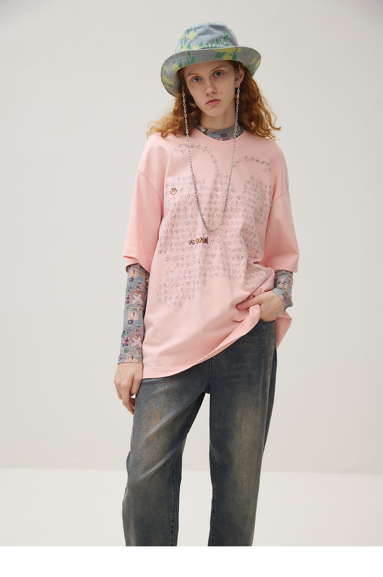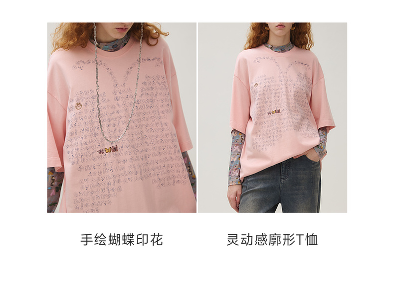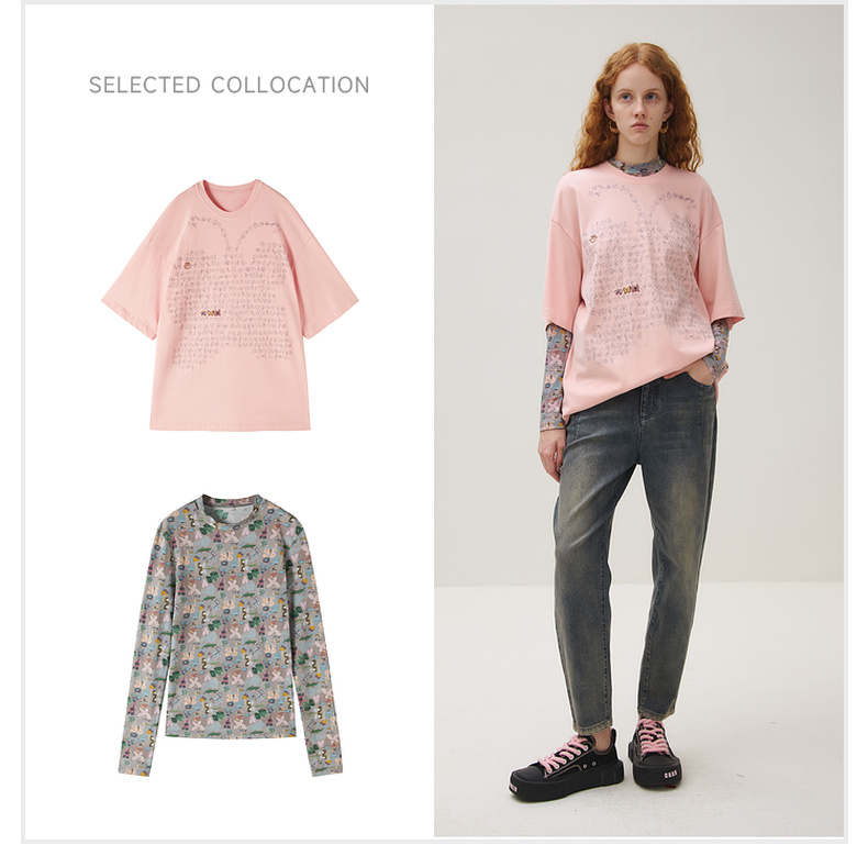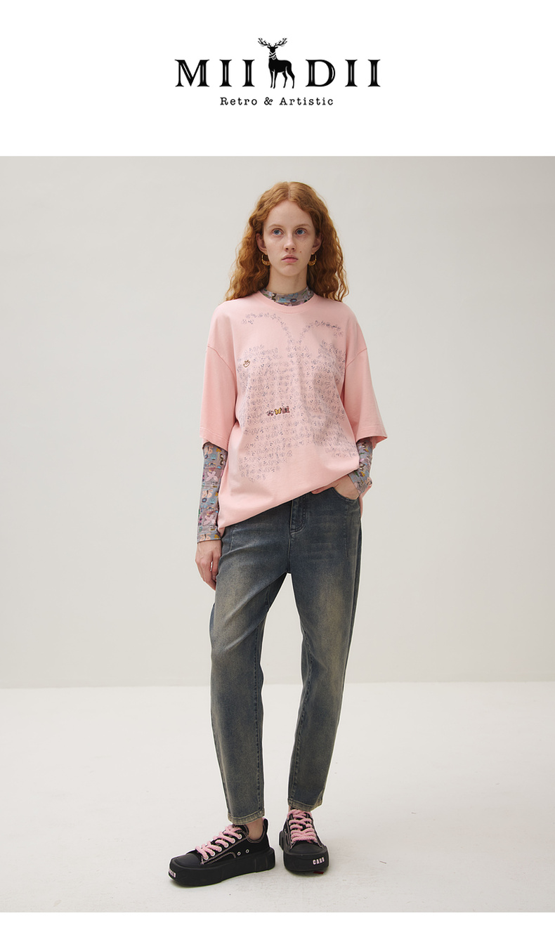 谜底T恤短袖女2025秋季新品休闲百搭印花纯棉磨毛大廓形253MT1038