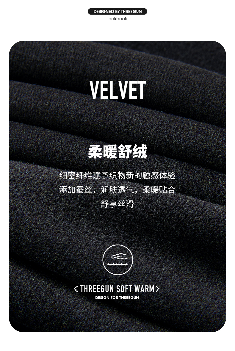 Threegun三枪 【金舒绒】圆领男士长袖上衣打底衫-24343A011