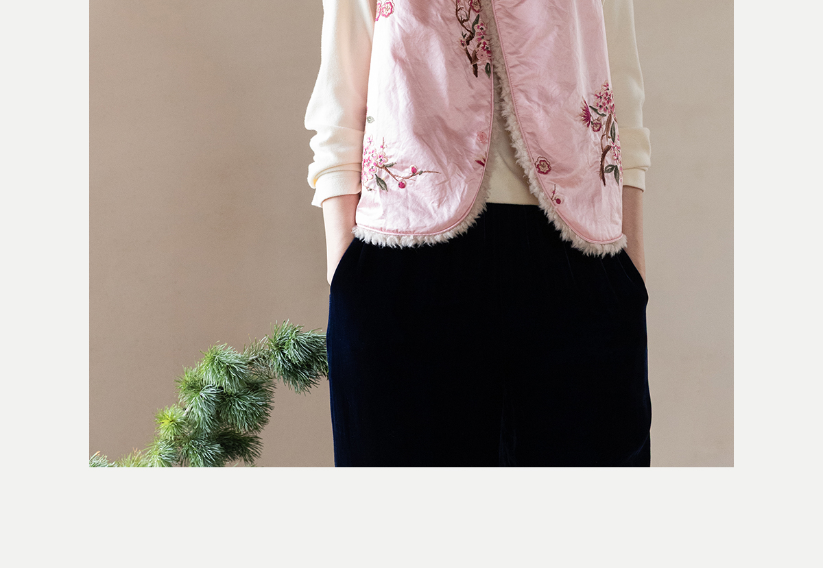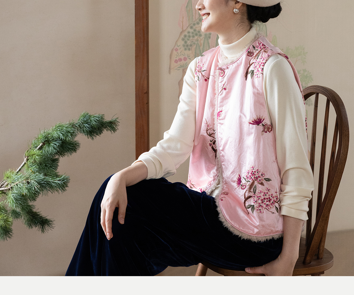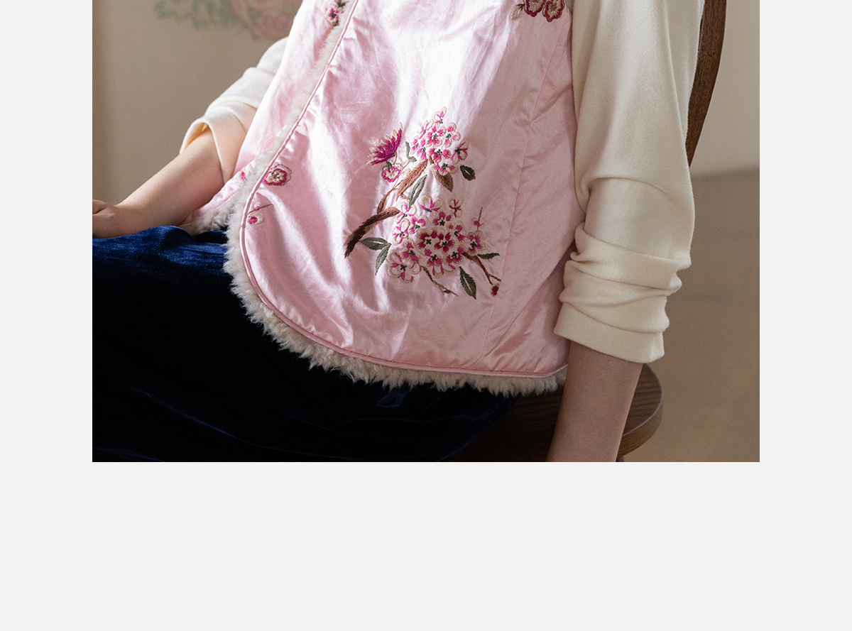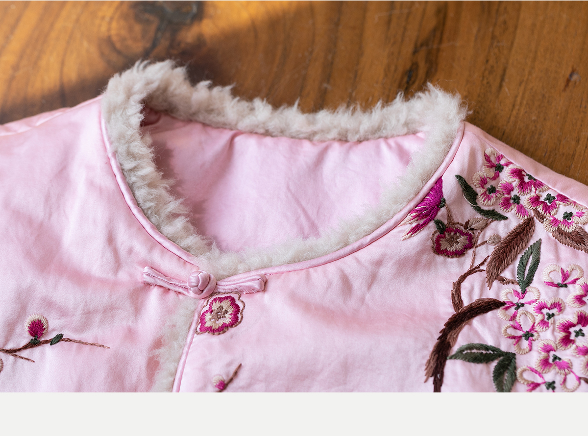 牧衣游原创 35姆米重磅丝棉匹绣夹棉马夹保暖粉色复古中式 山志