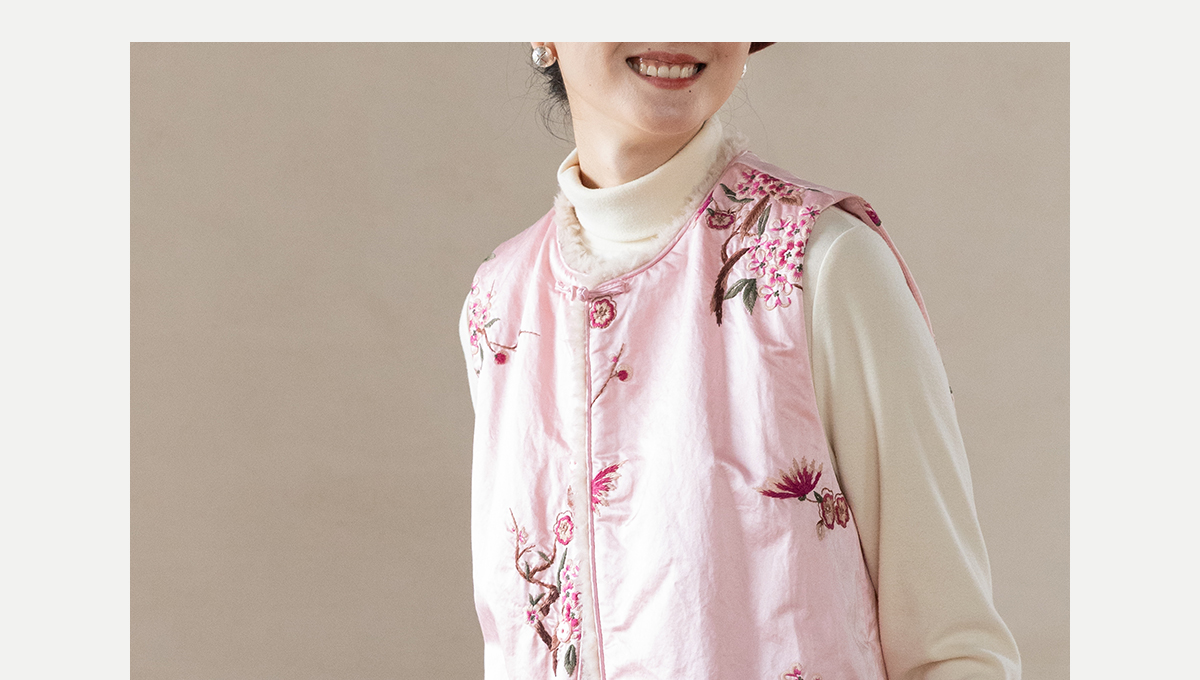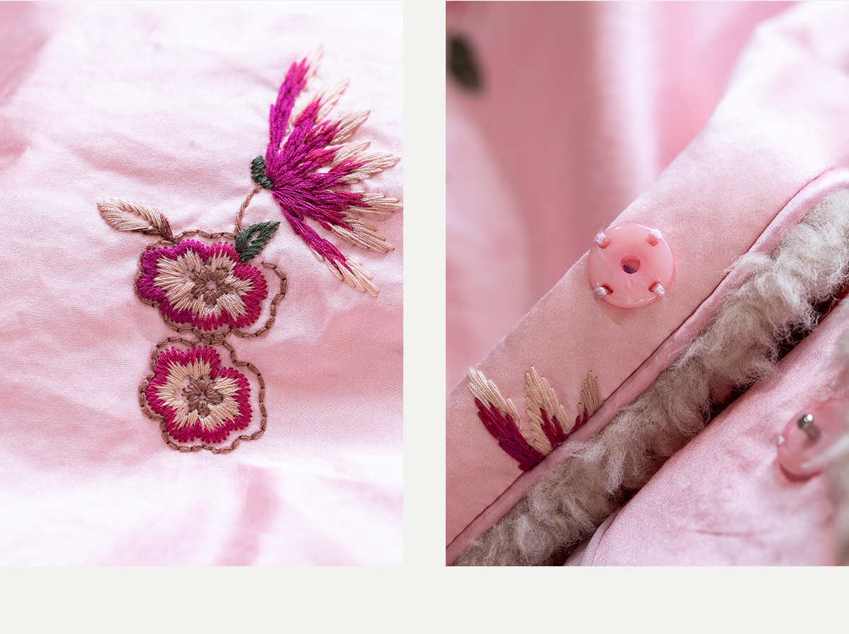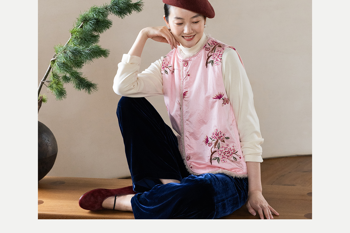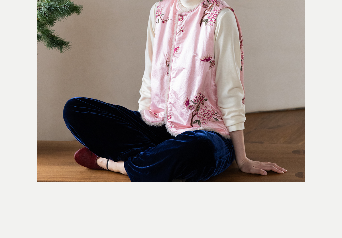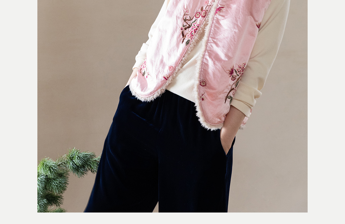 牧衣游原创 35姆米重磅丝棉匹绣夹棉马夹保暖粉色复古中式 山志