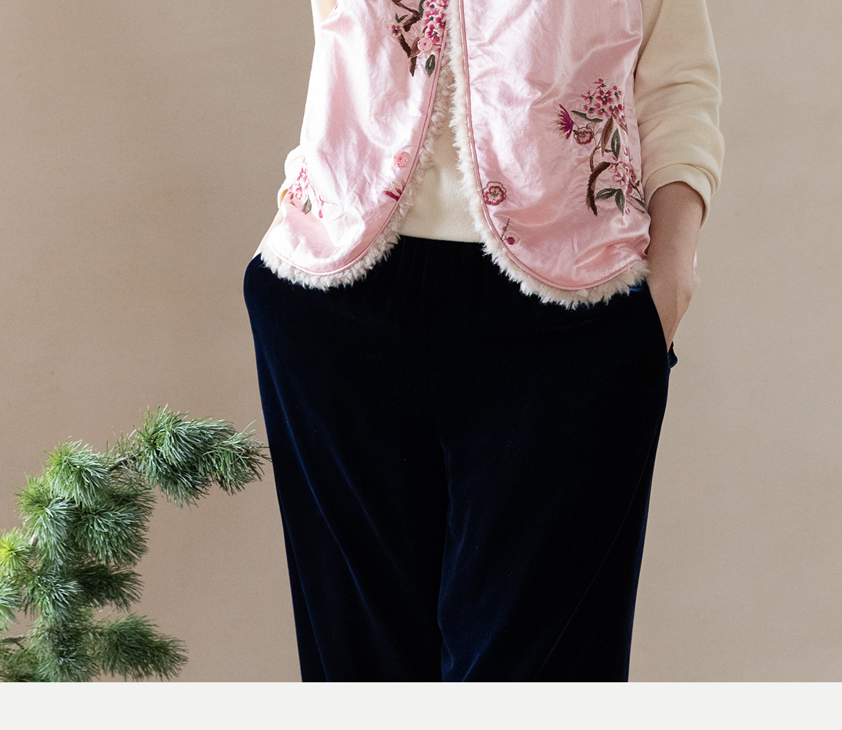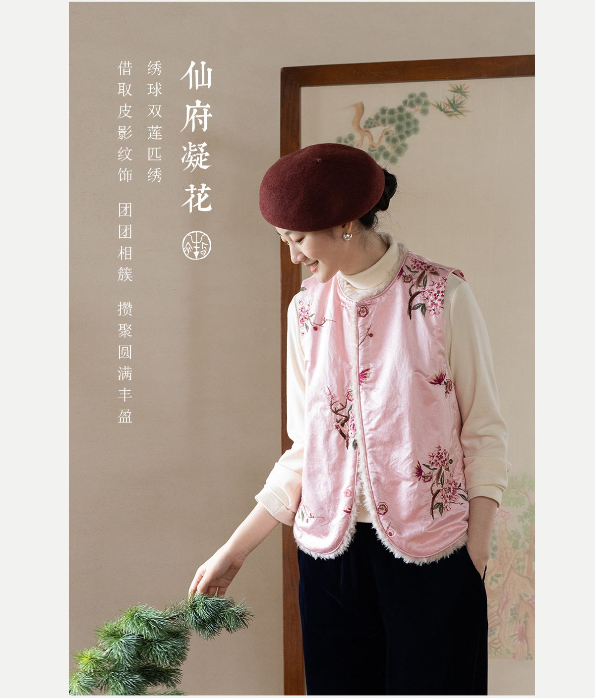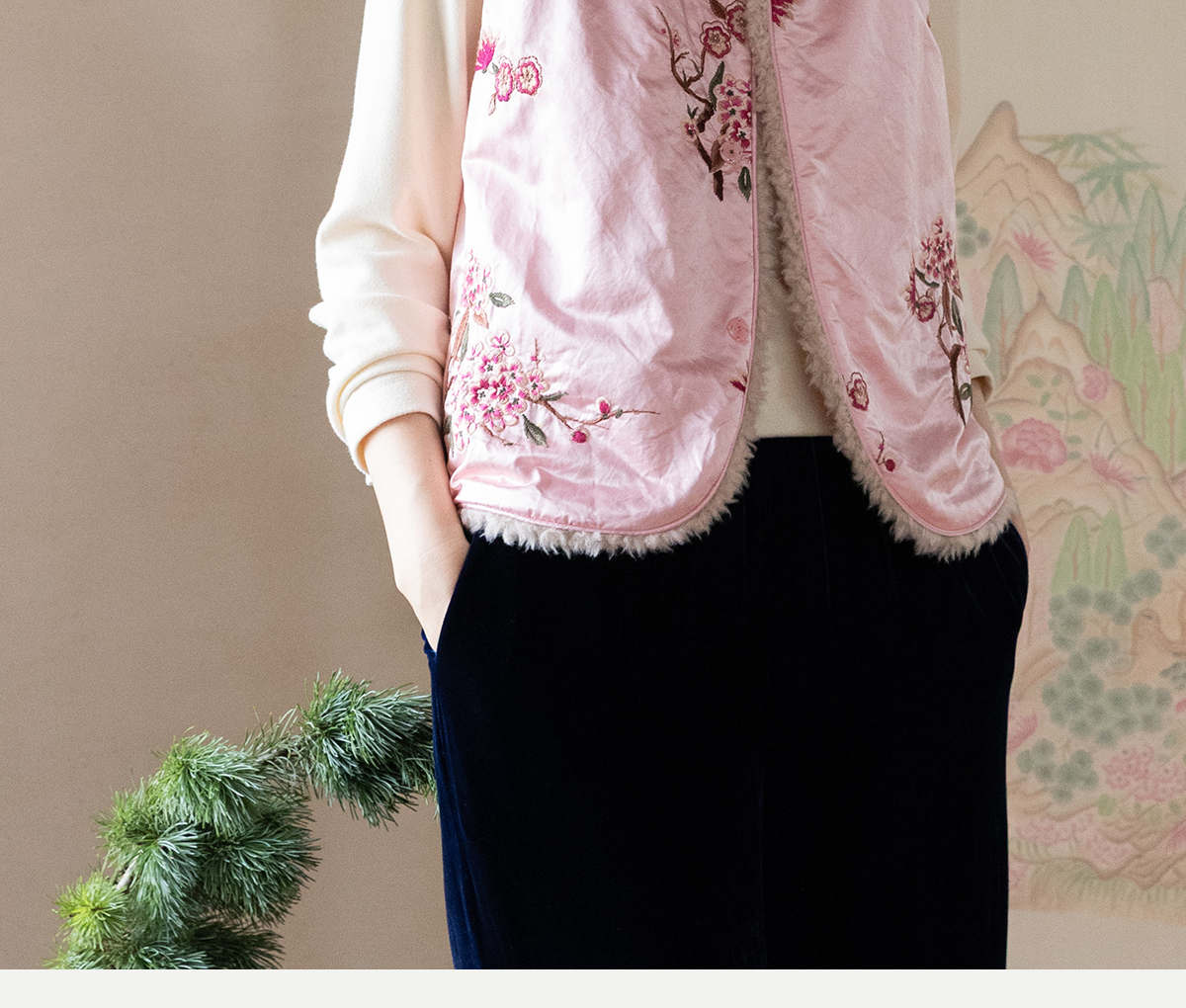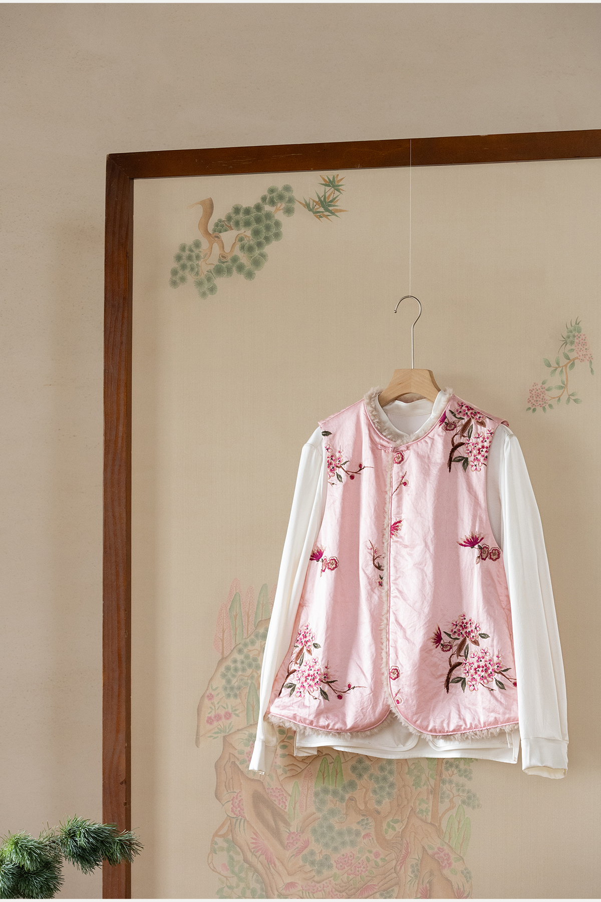 牧衣游原创 35姆米重磅丝棉匹绣夹棉马夹保暖粉色复古中式 山志