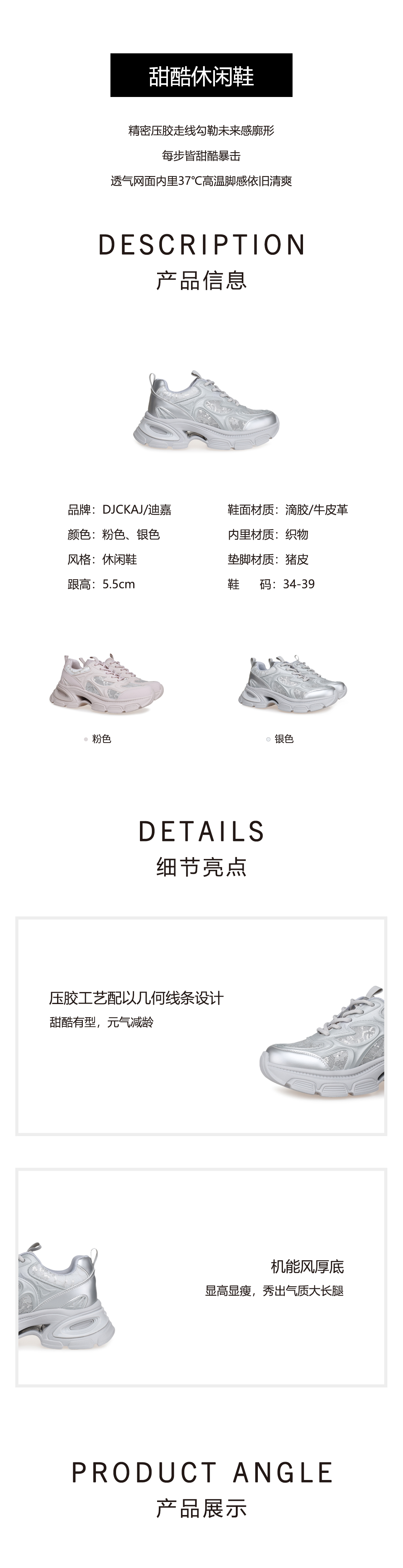 豪麟名鞋奥莱迪嘉女鞋时尚老爹鞋滴胶/牛皮革DJXXO51WX215银色 原价1660元