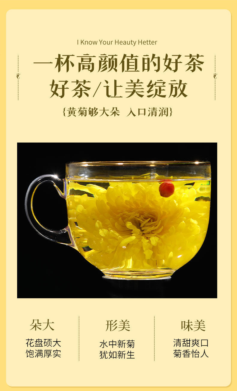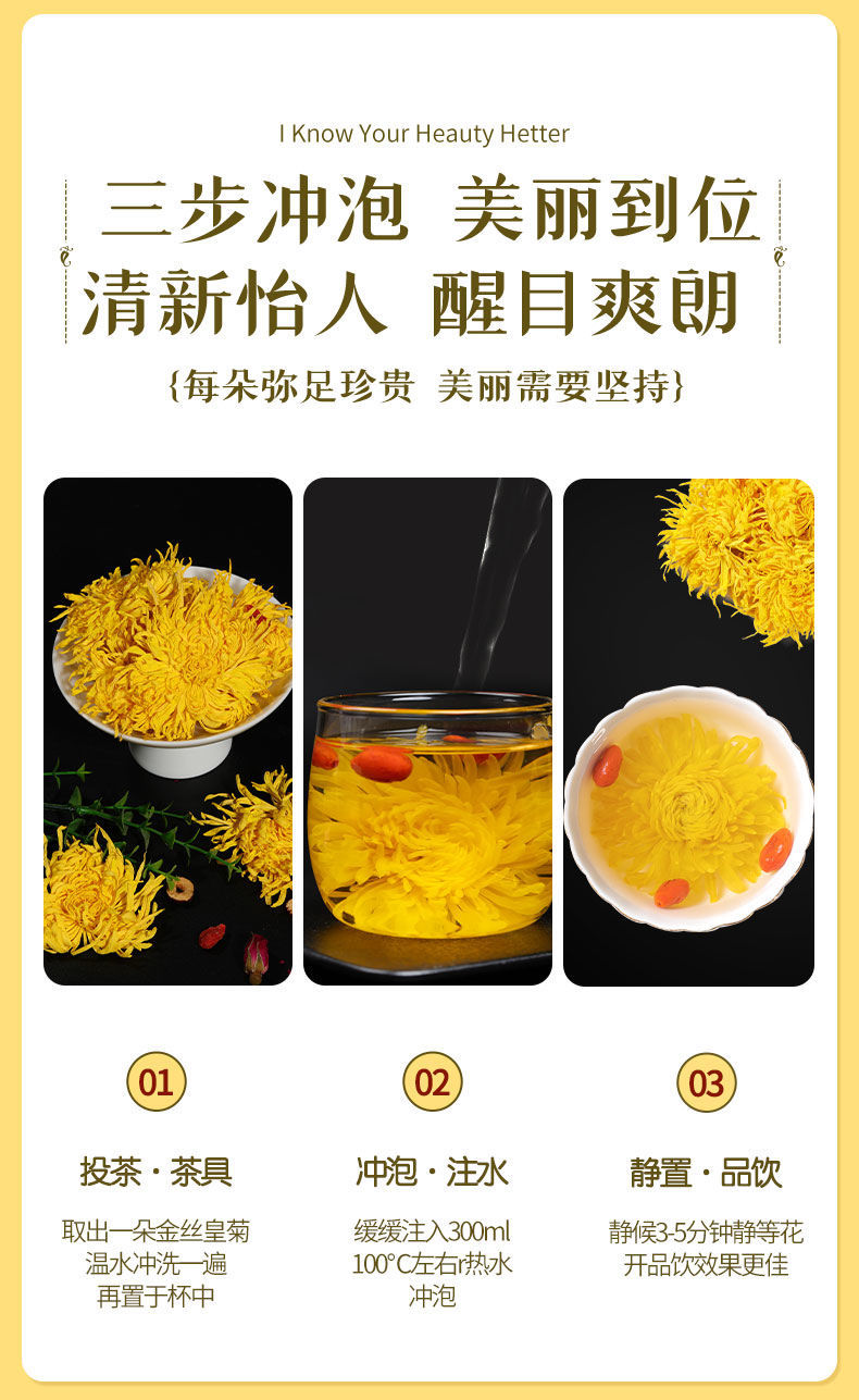 金丝皇菊花茶特级一朵一杯大菊花茶正品大朵黄菊24朵贡菊清热清火
