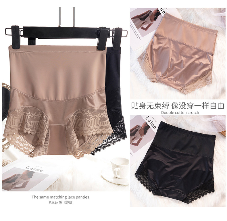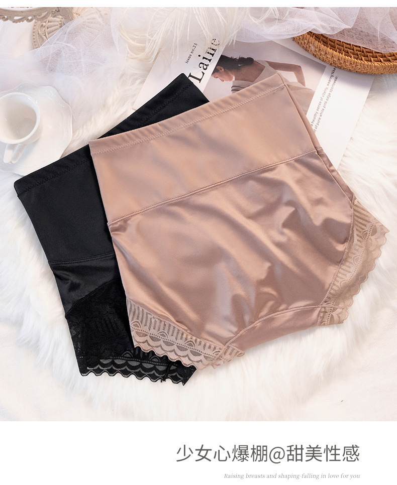 高腰提臀内裤女产后塑形收小肚子胖MM大码蕾丝强力收腹裤夏季薄款