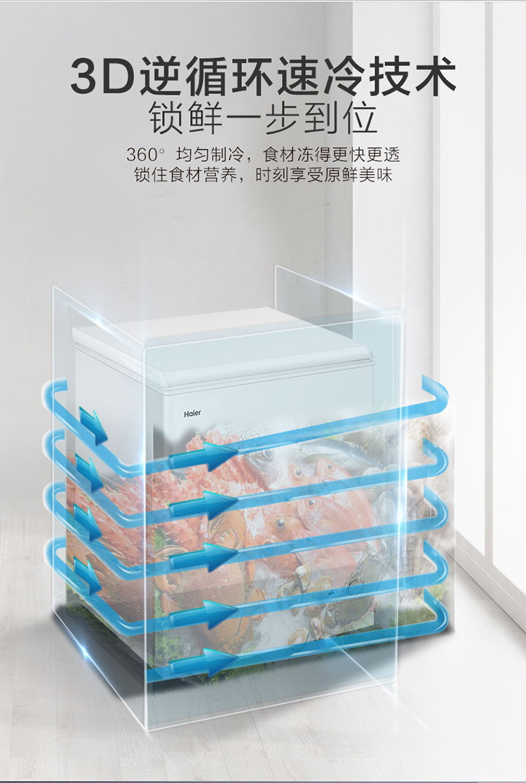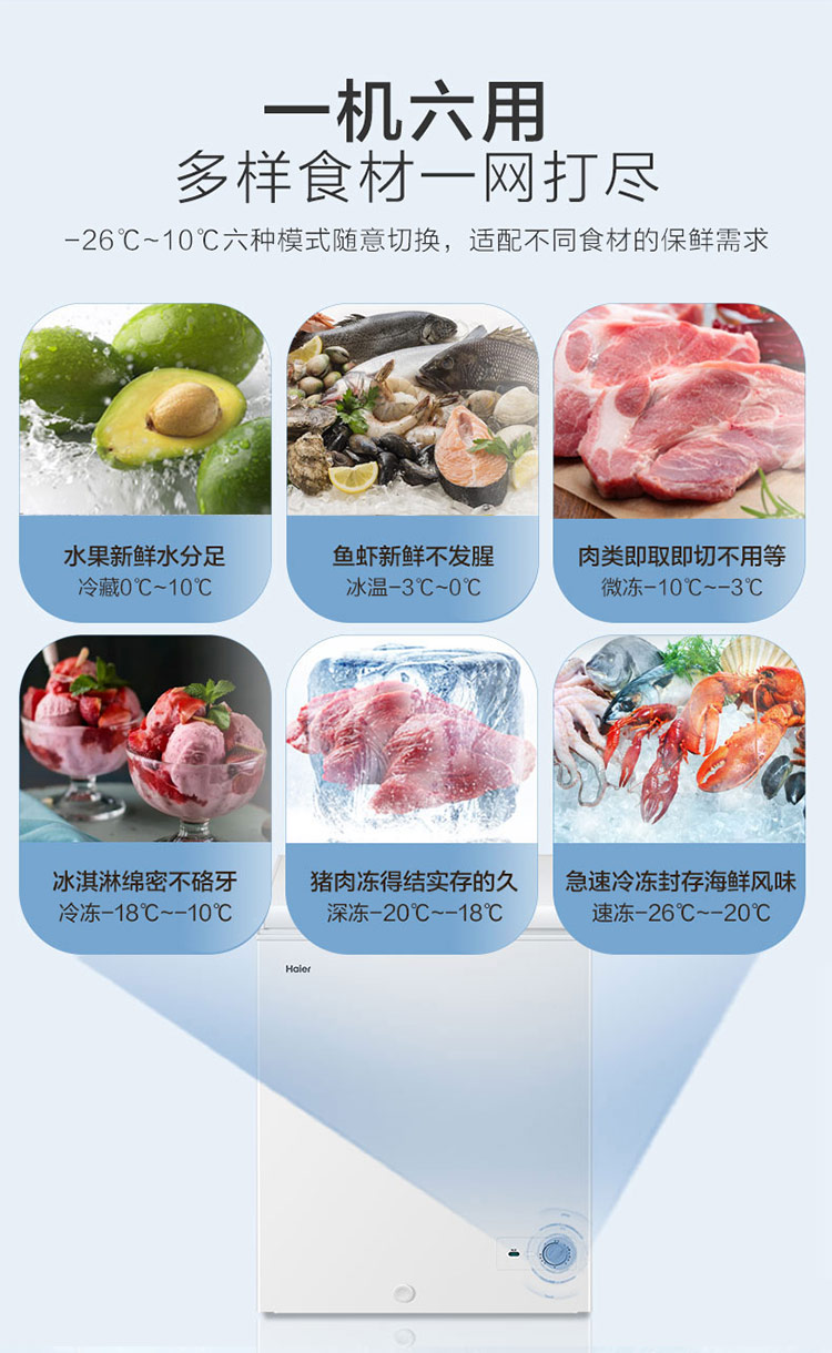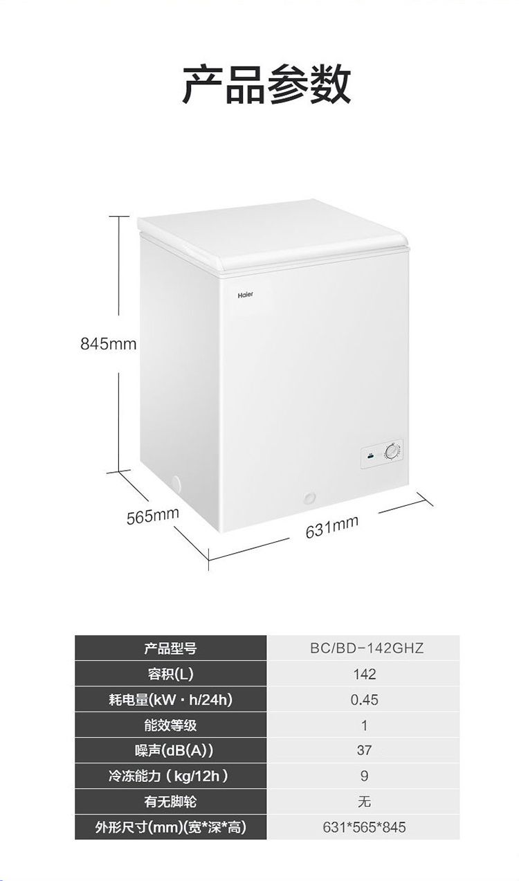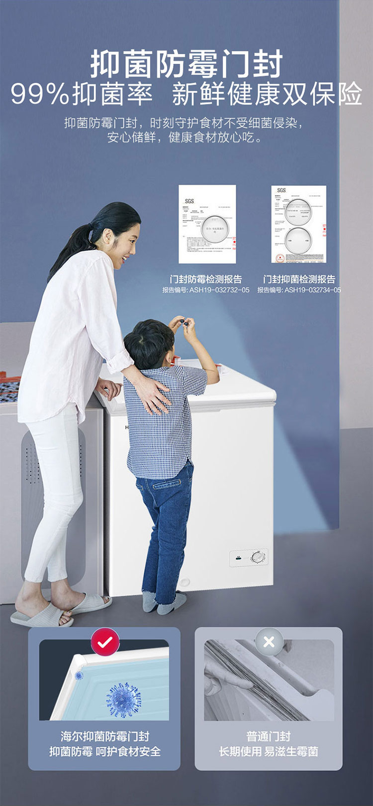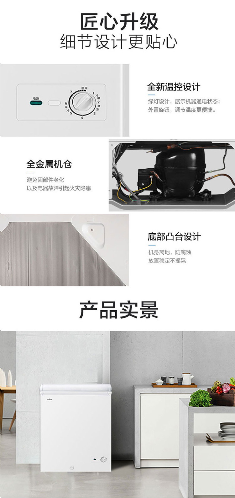 海尔冷柜 家用小型冰柜142升 冷柜一机六用宽幅调温3D逆循环速冷技术抑菌防霉门封BC/BD-142GHZ