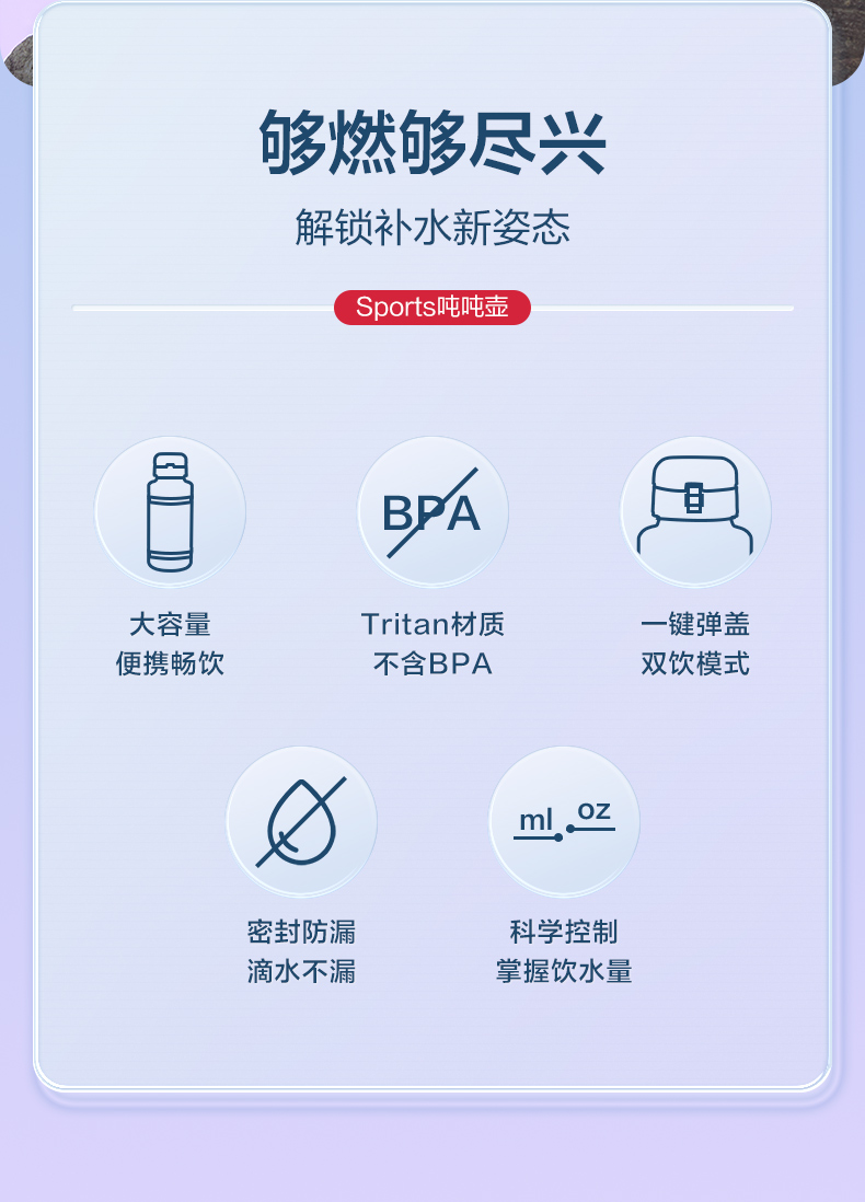 【清凉购特价69】吨吨桶运动健身大水杯耐高温太空杯顿顿杯1L