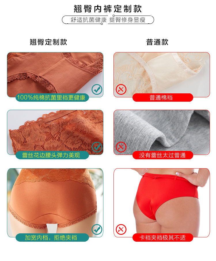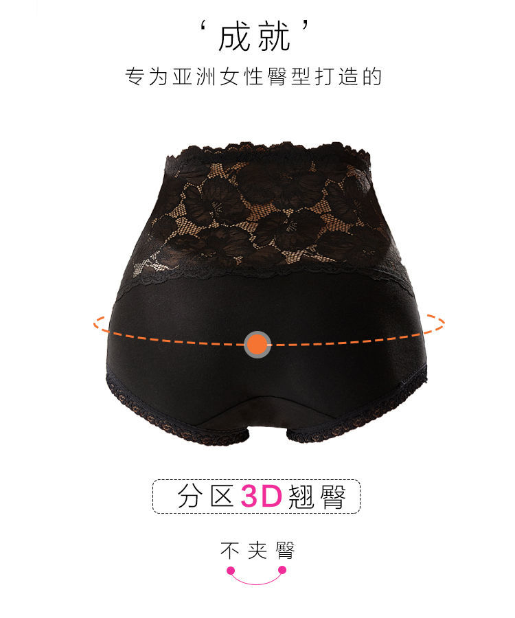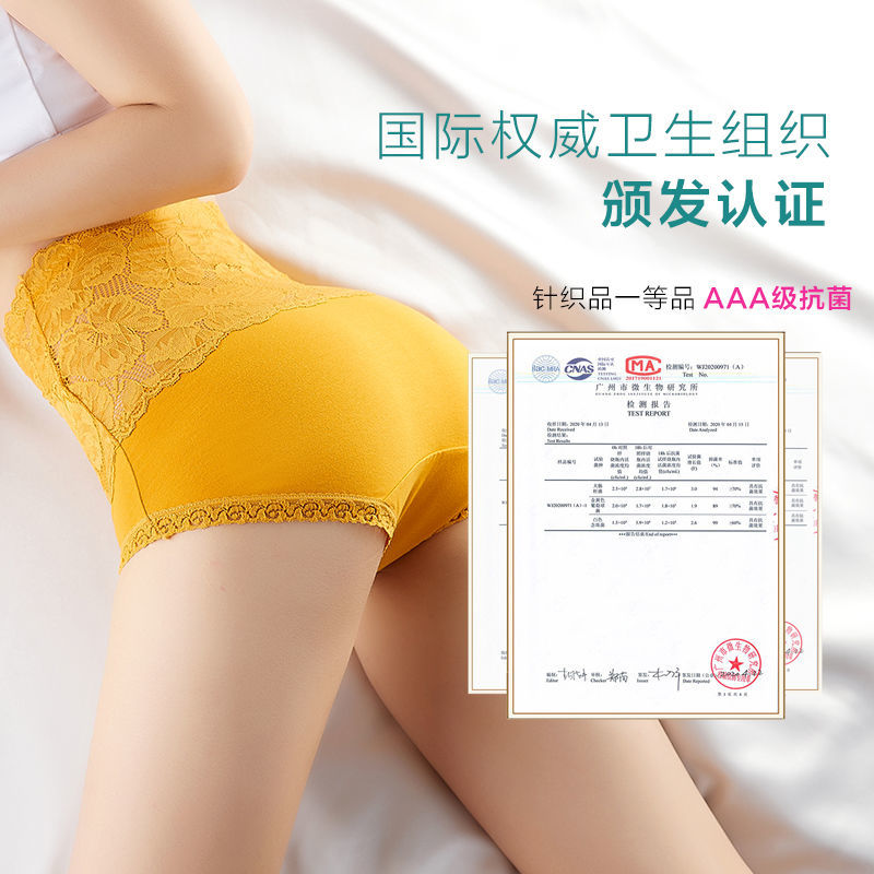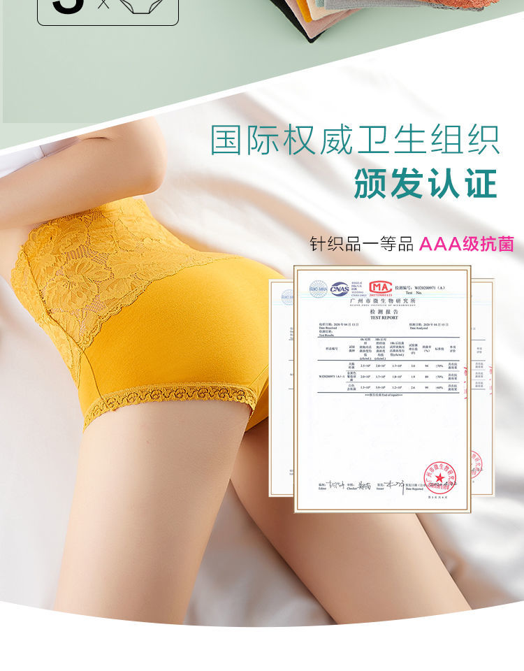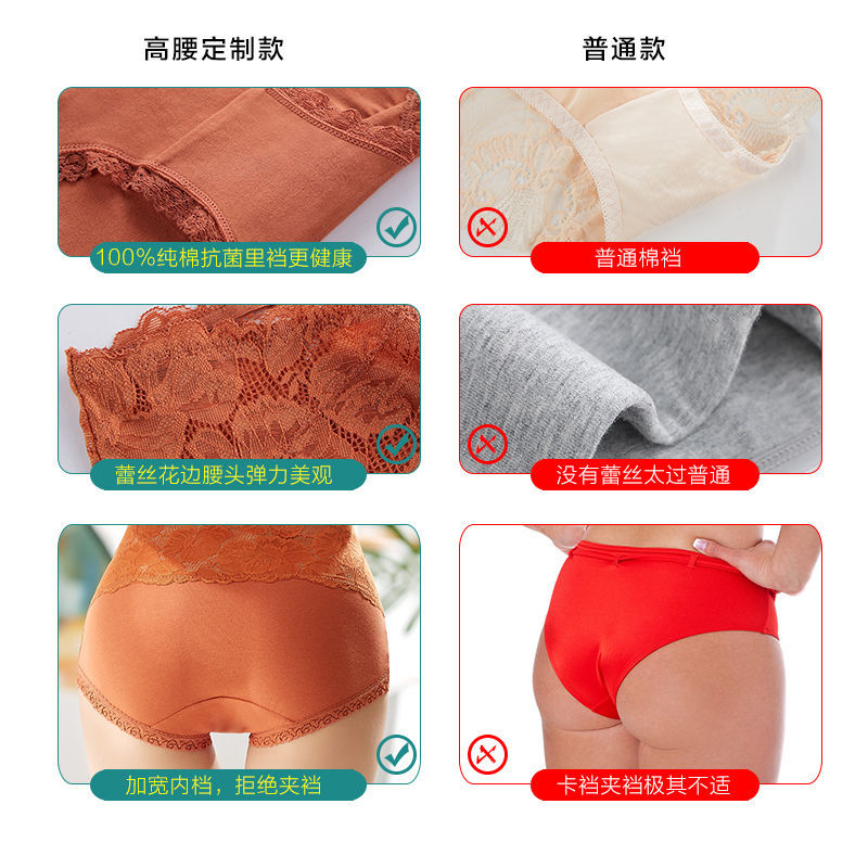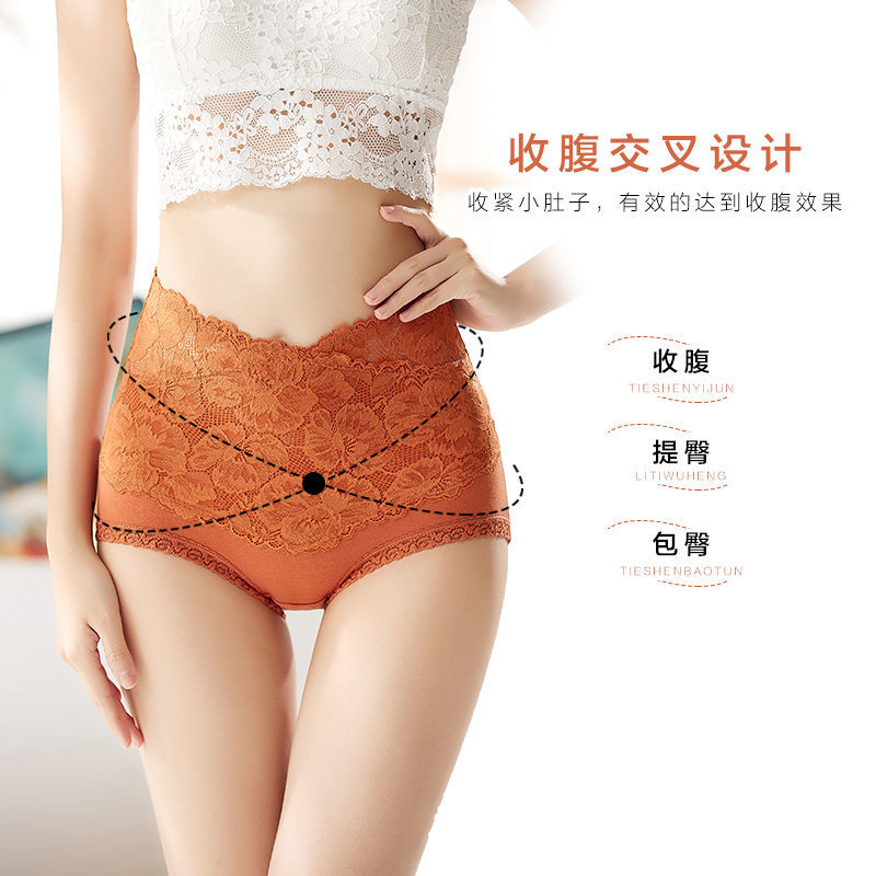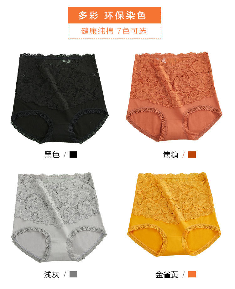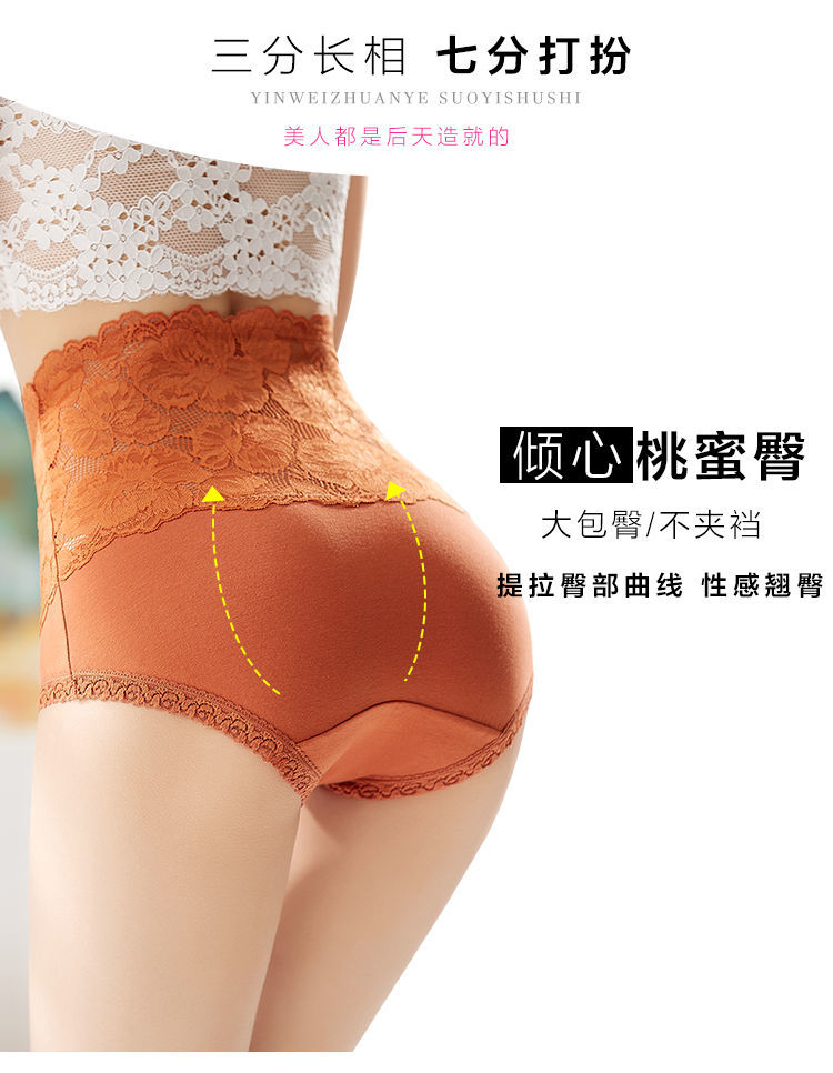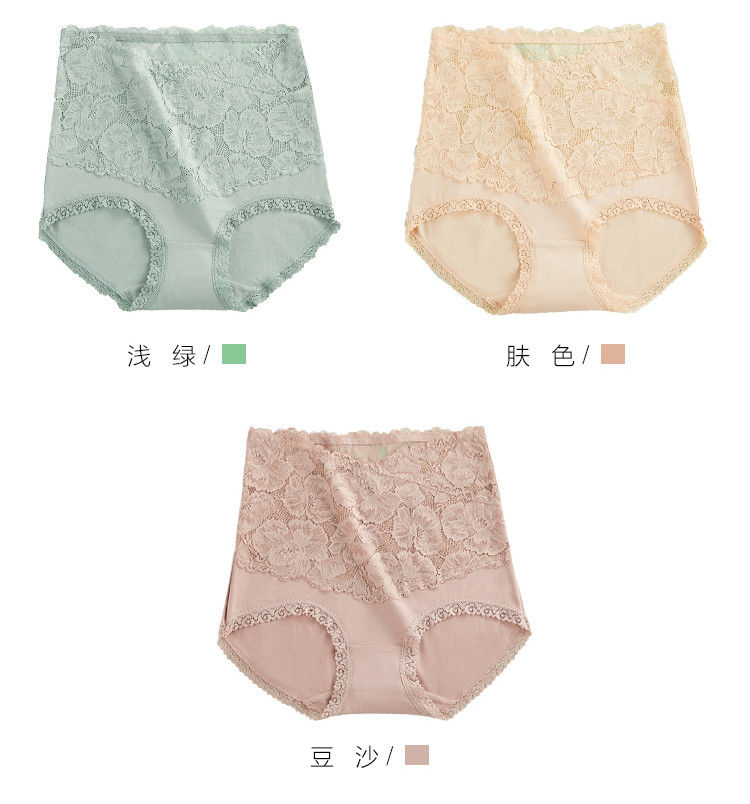 【3条装】高腰内裤女士纯棉收腹提臀小肚子全棉透气裆蕾丝大码三角短裤